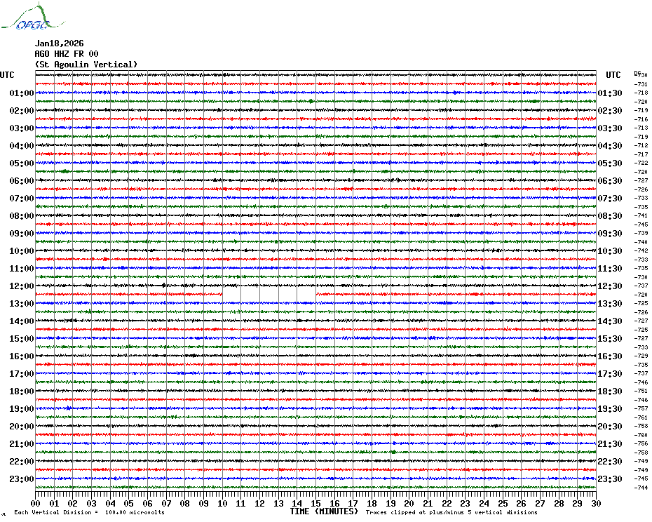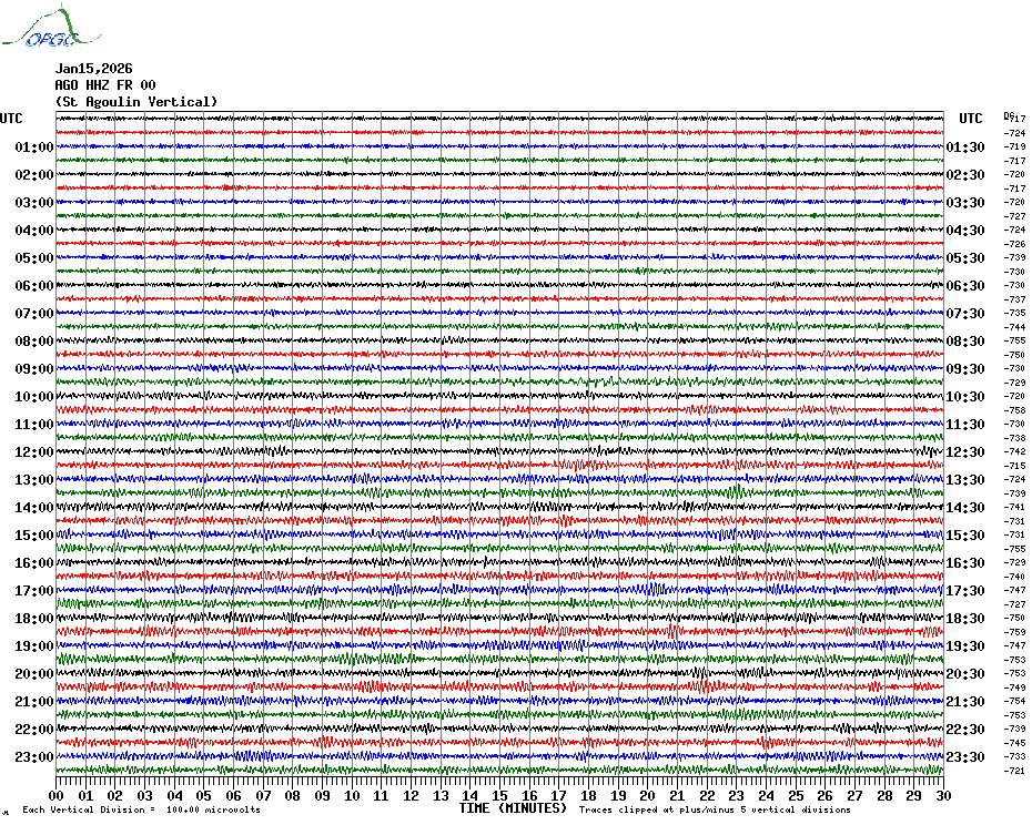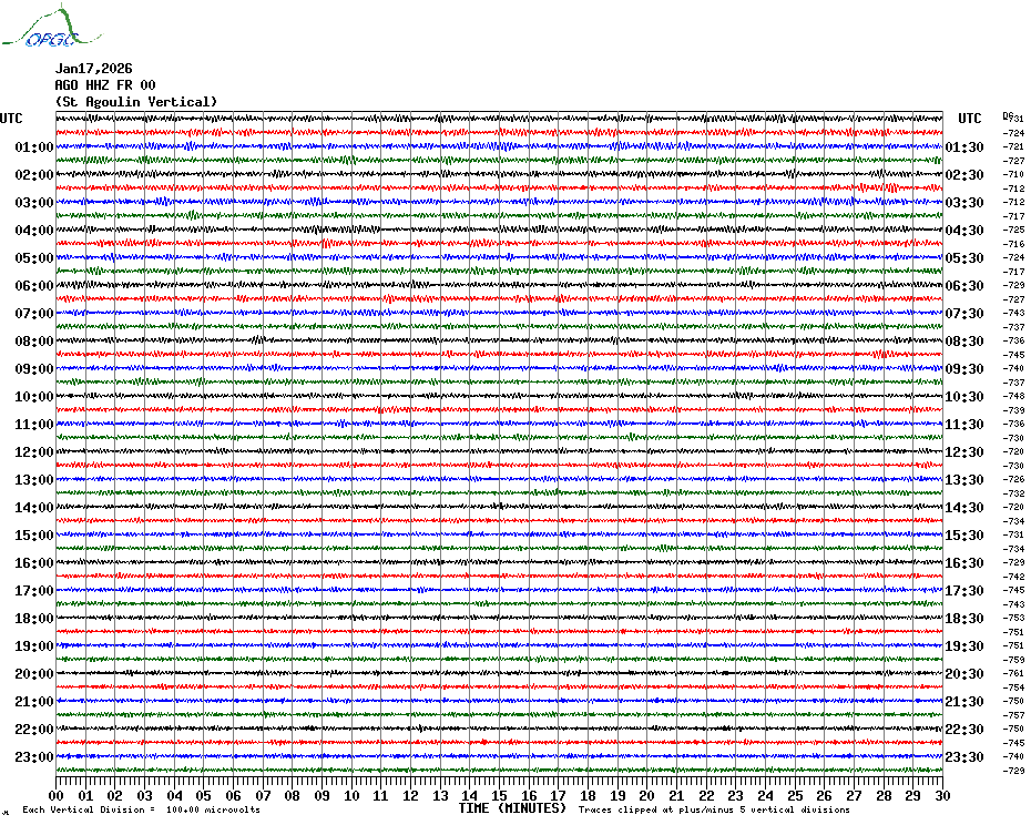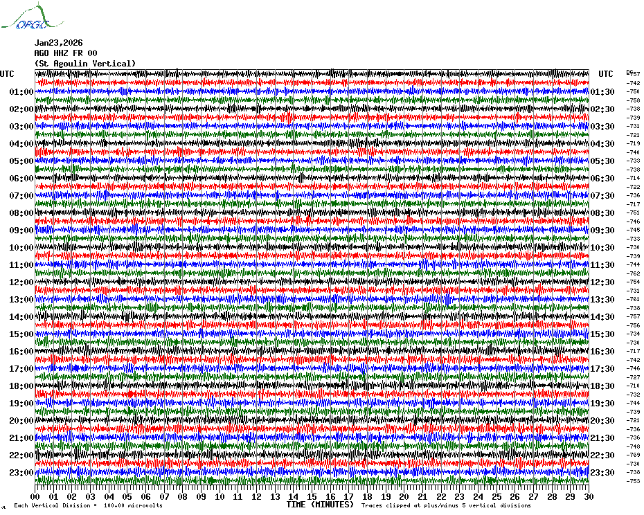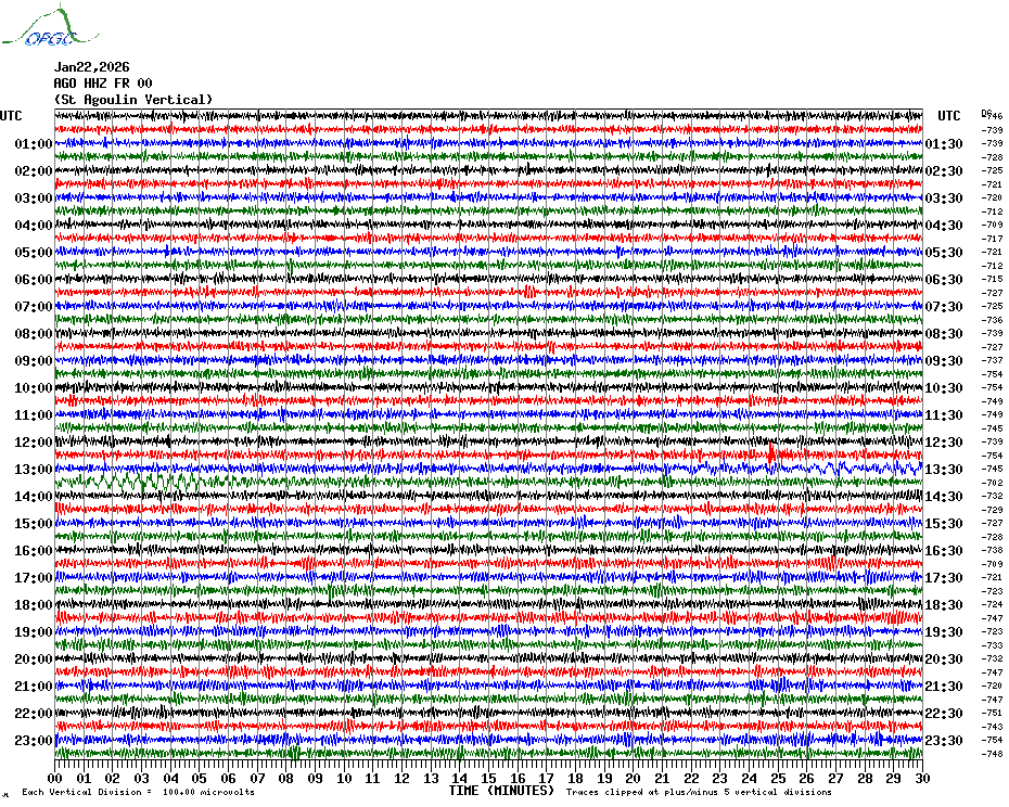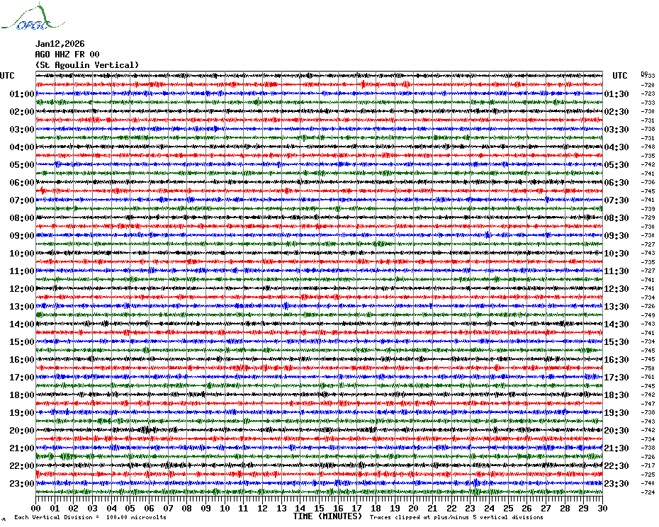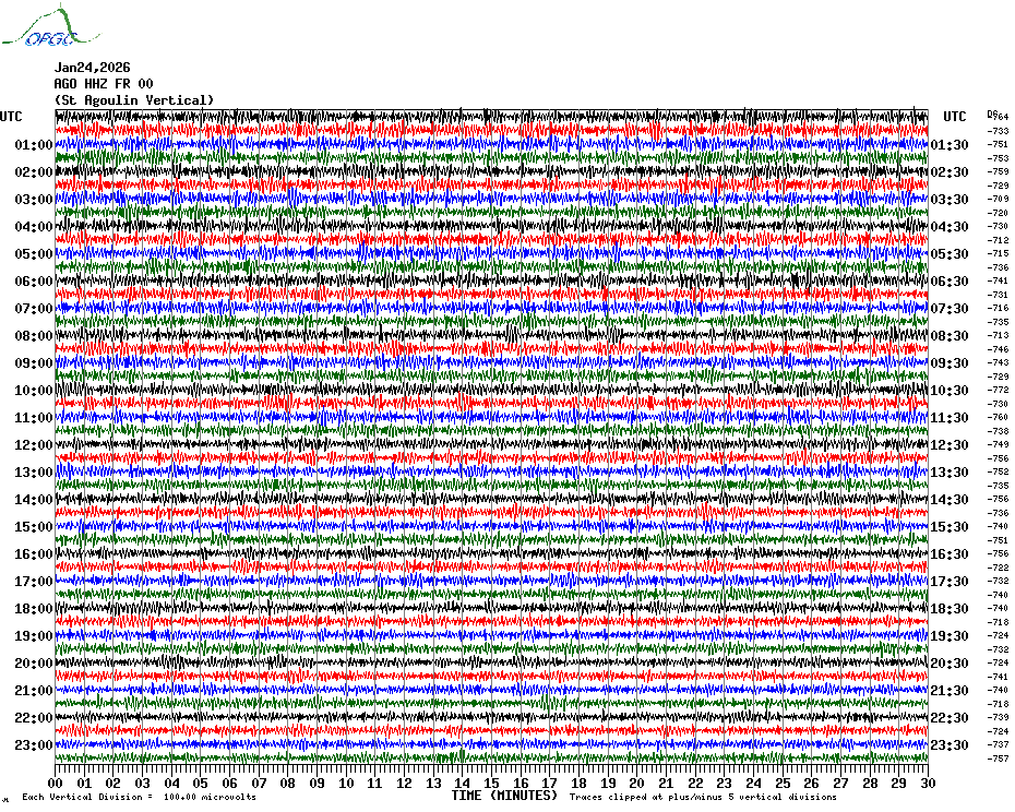 Sismogrammes du Réseau Sismologique Auvergne par fenêtre de 24h