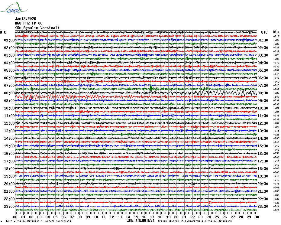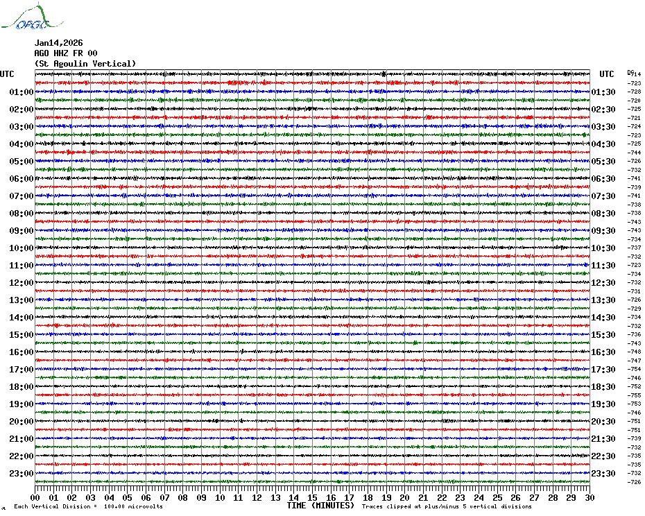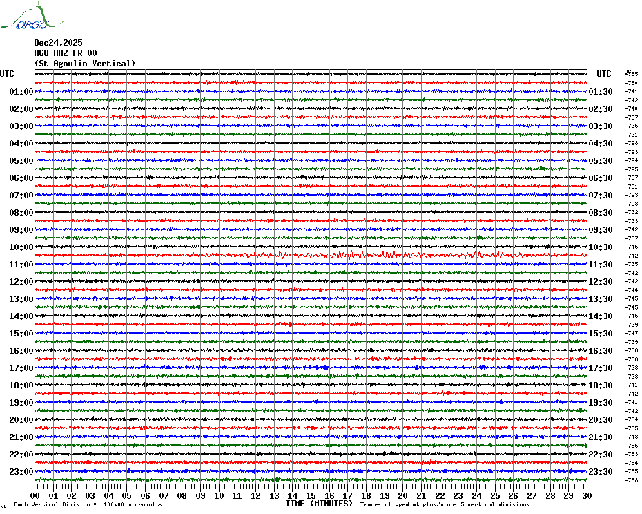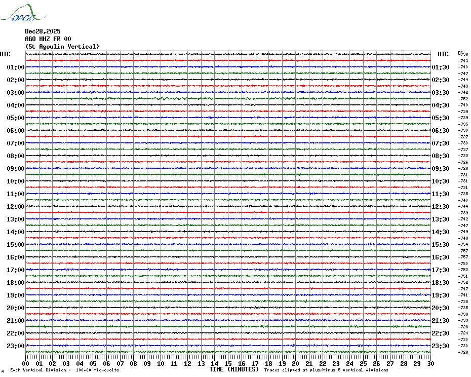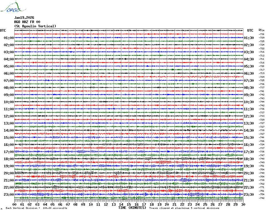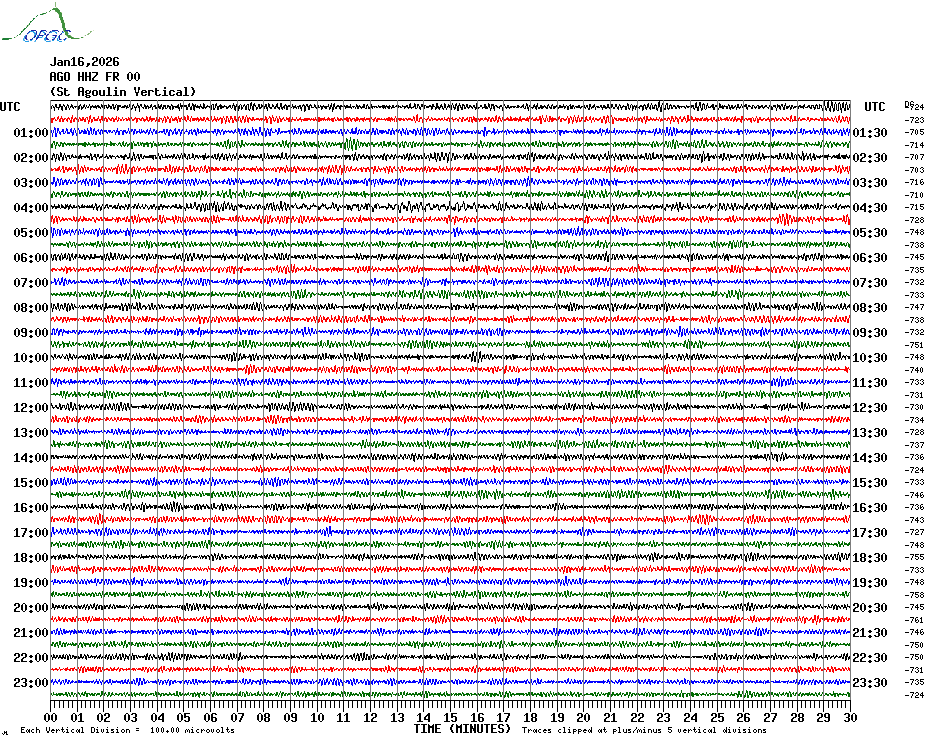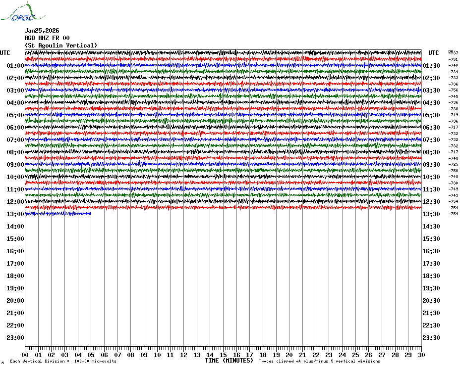 Sismogrammes du Réseau Sismologique Auvergne par fenêtre de 24h