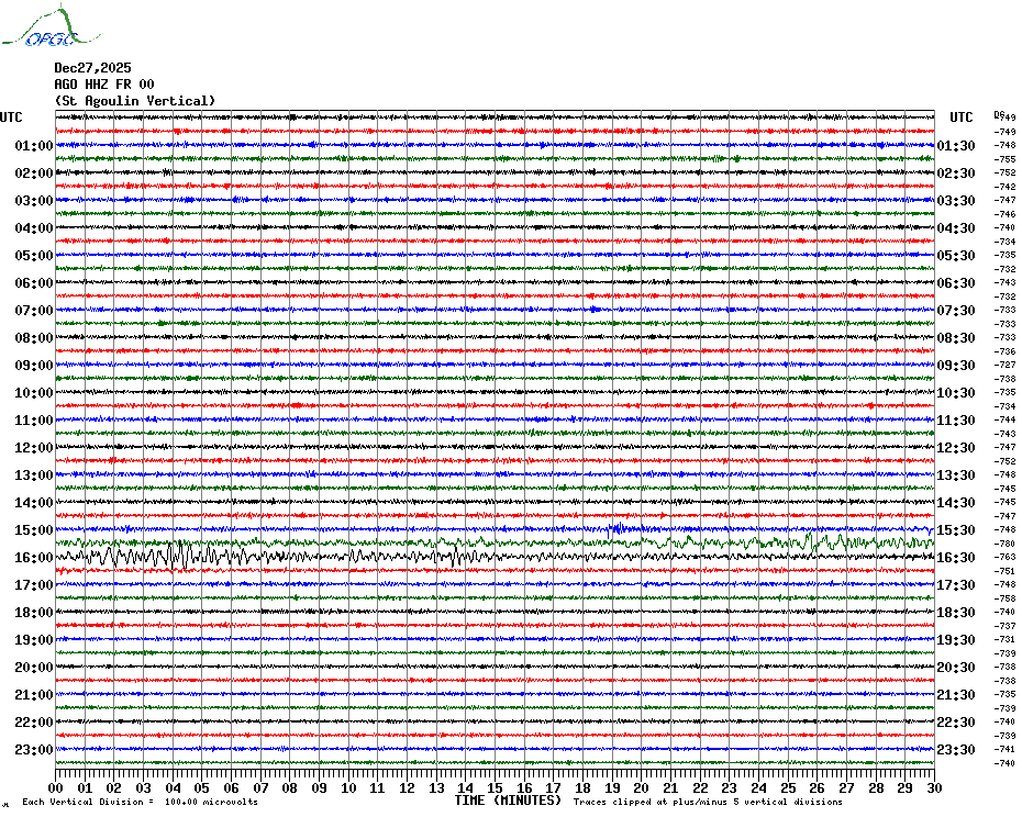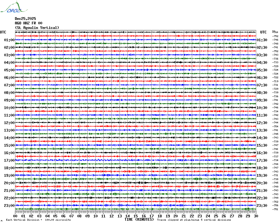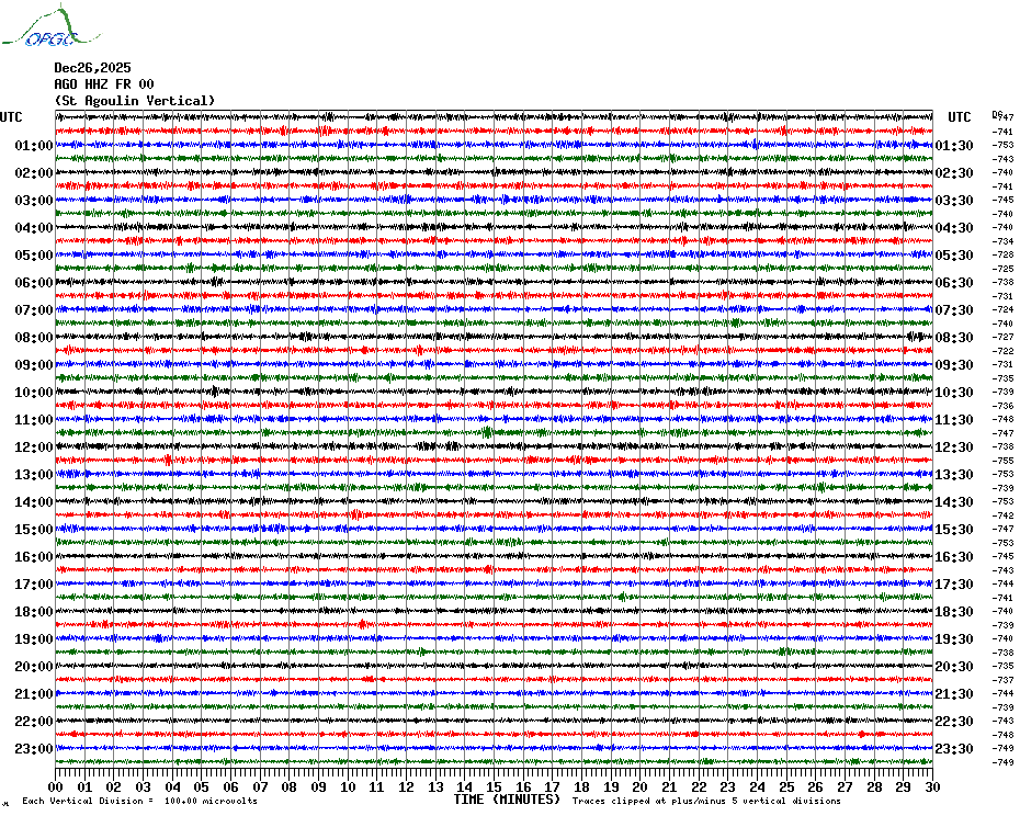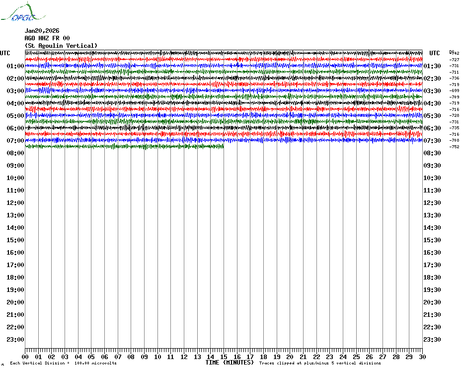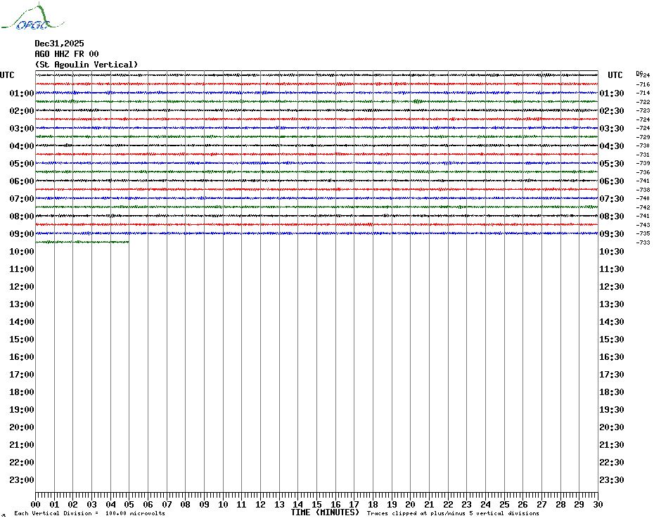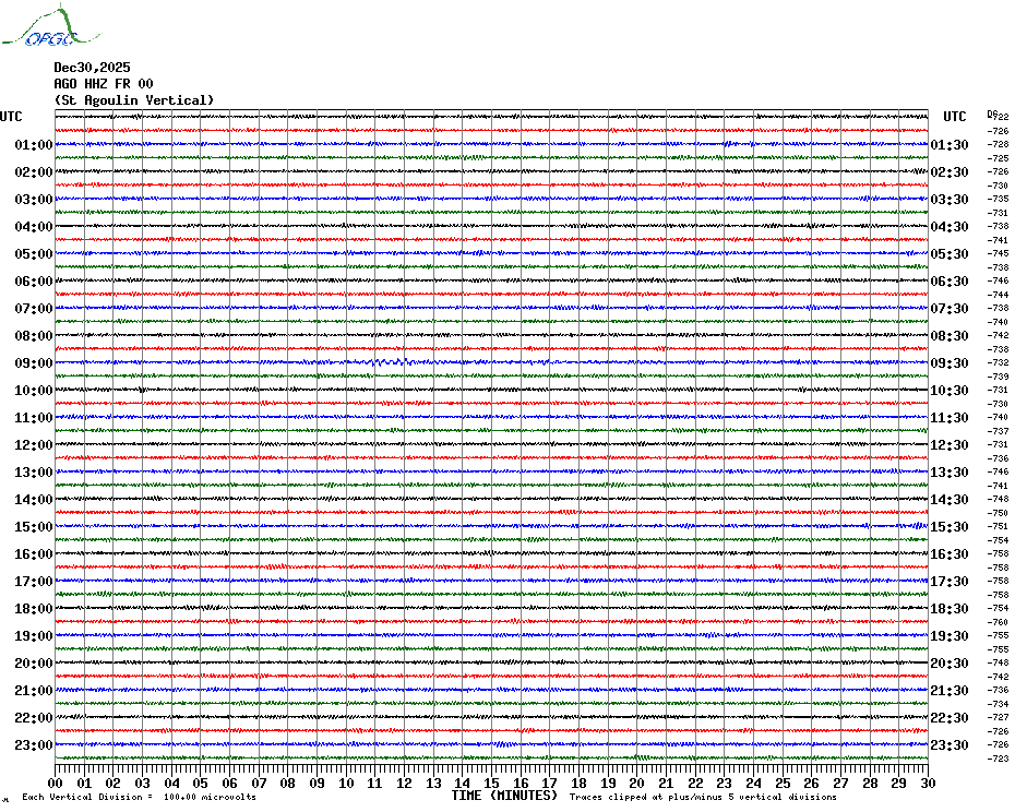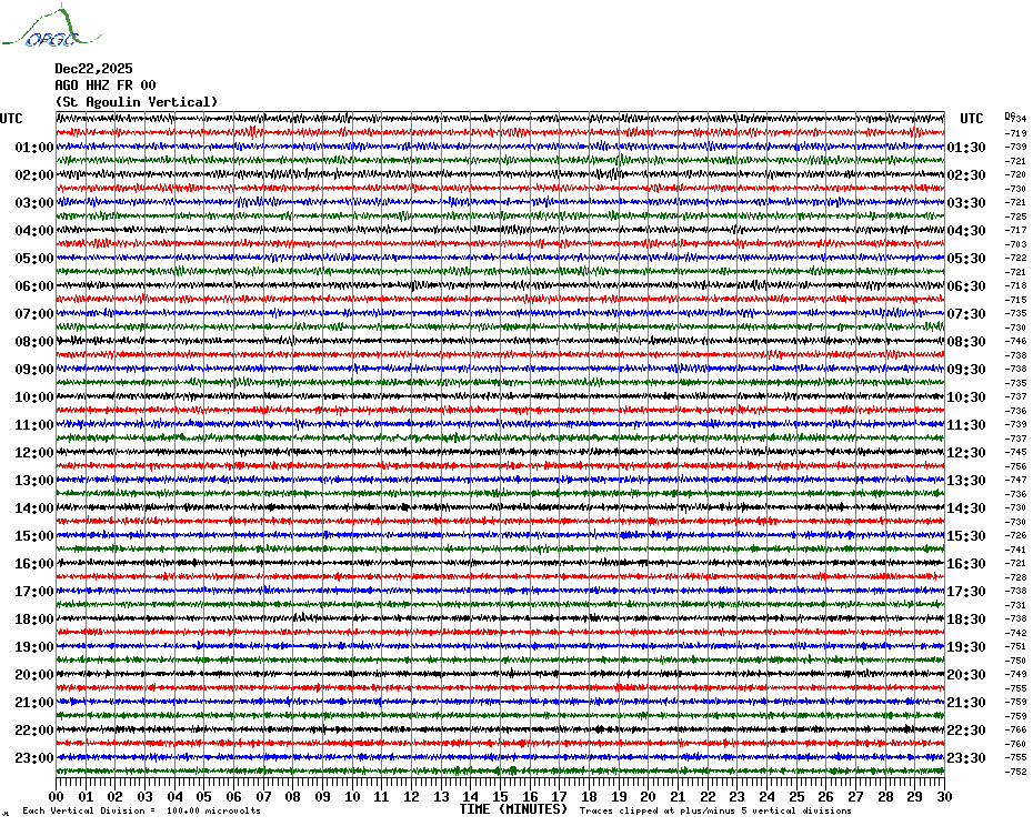 Sismogrammes du Réseau Sismologique Auvergne par fenêtre de 24h