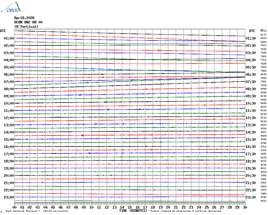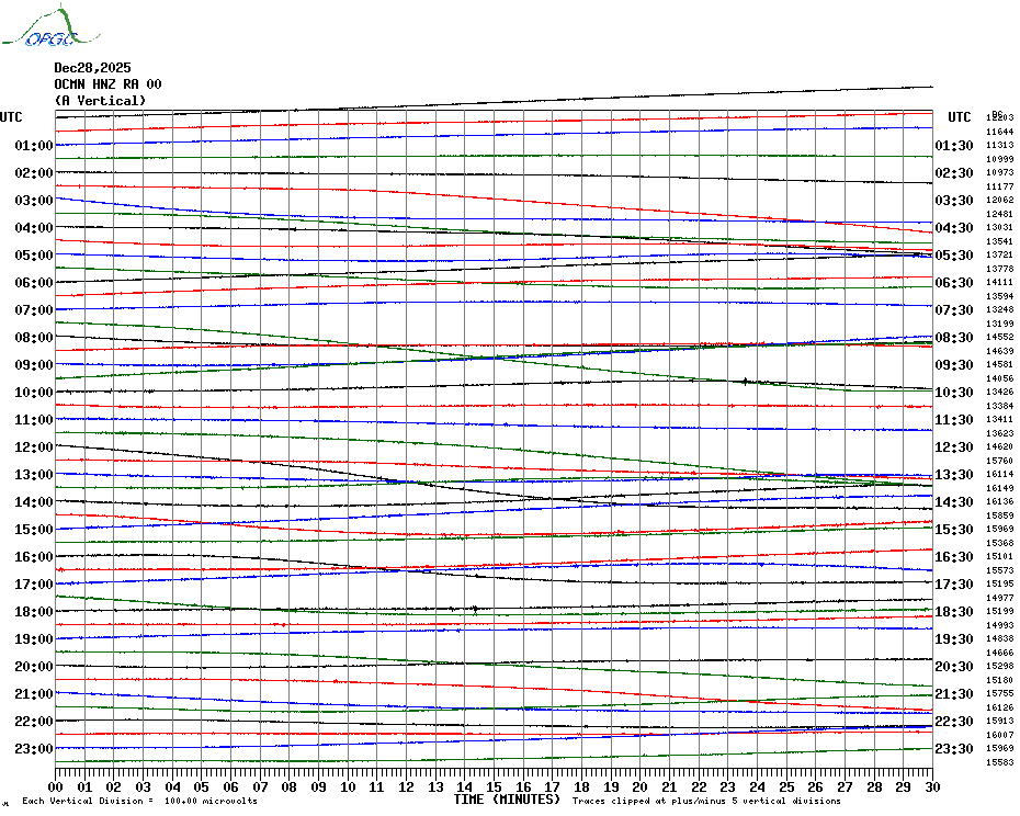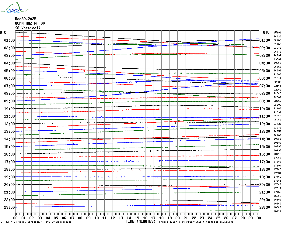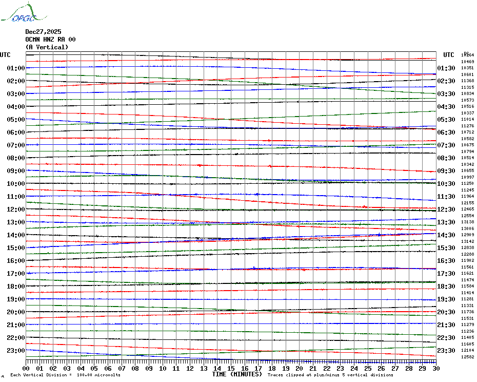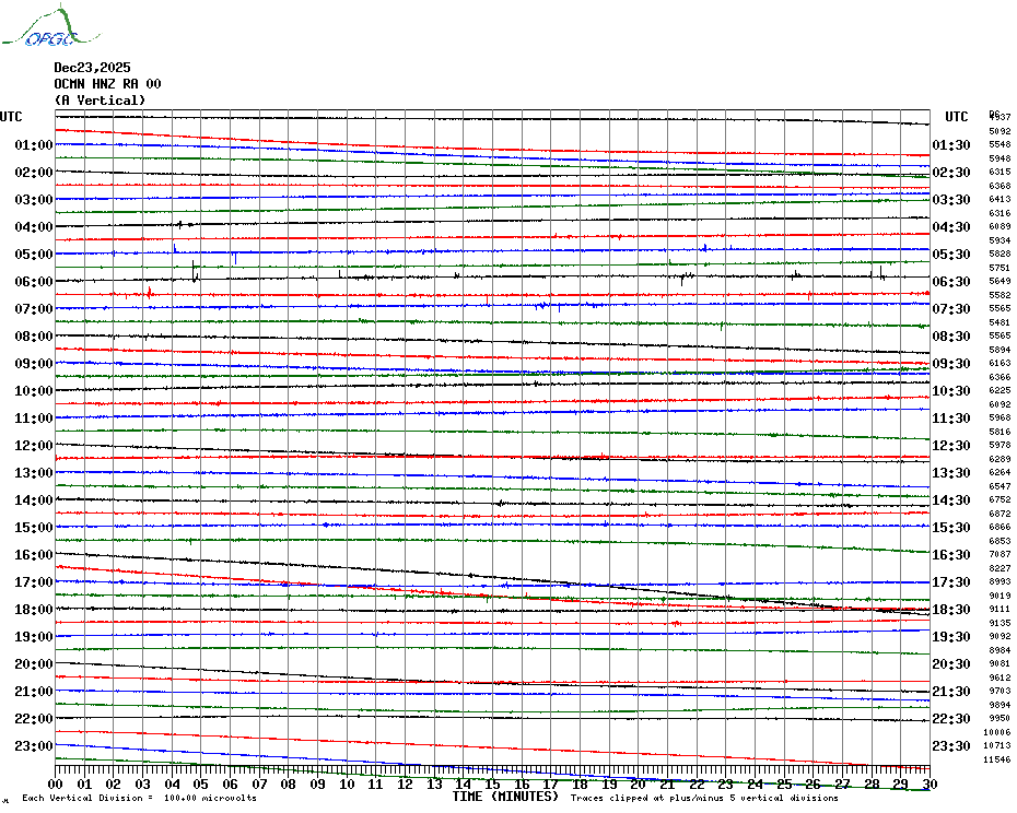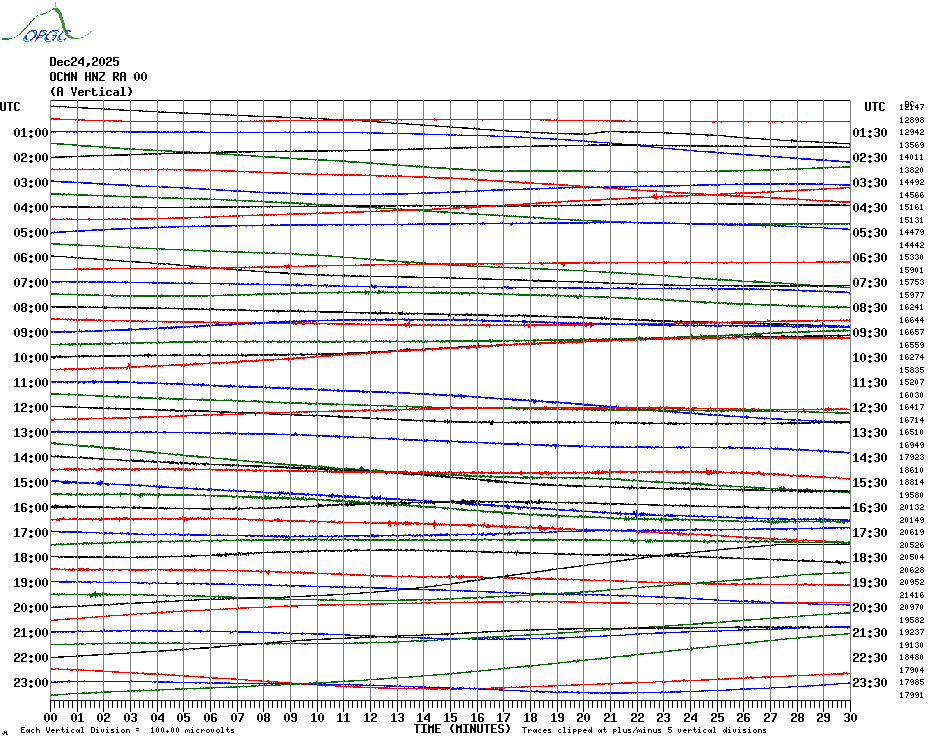 Sismogrammes du Réseau Sismologique Auvergne par fenêtre de 24h