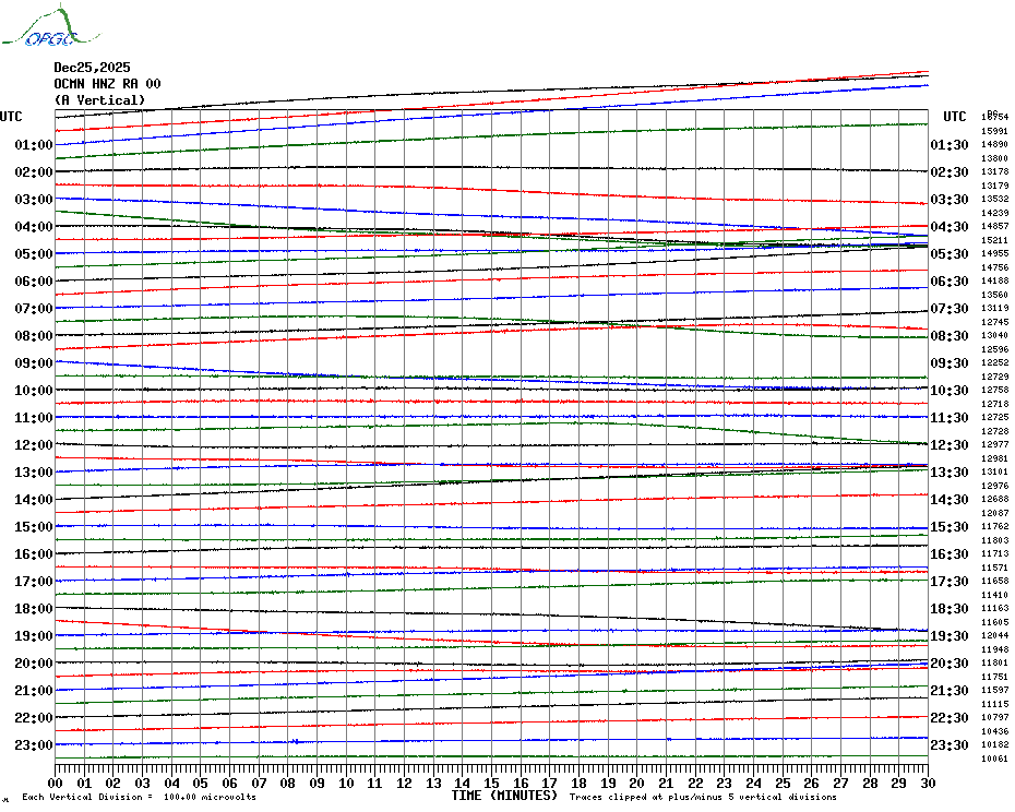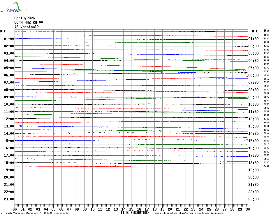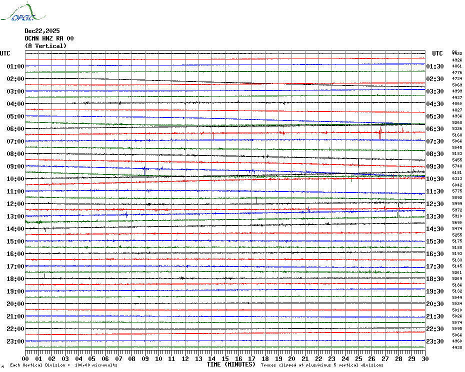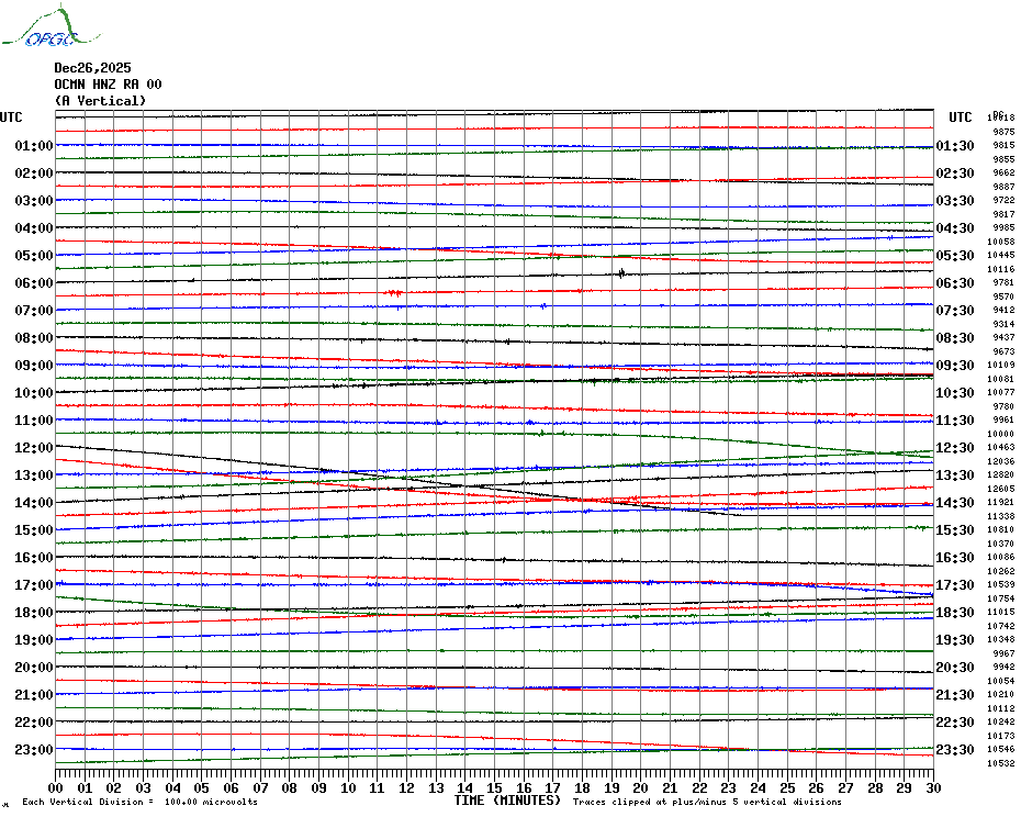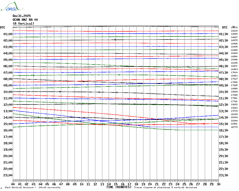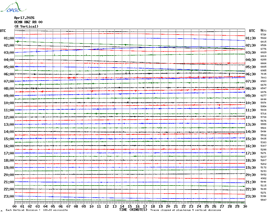 Sismogrammes du Réseau Sismologique Auvergne par fenêtre de 24h