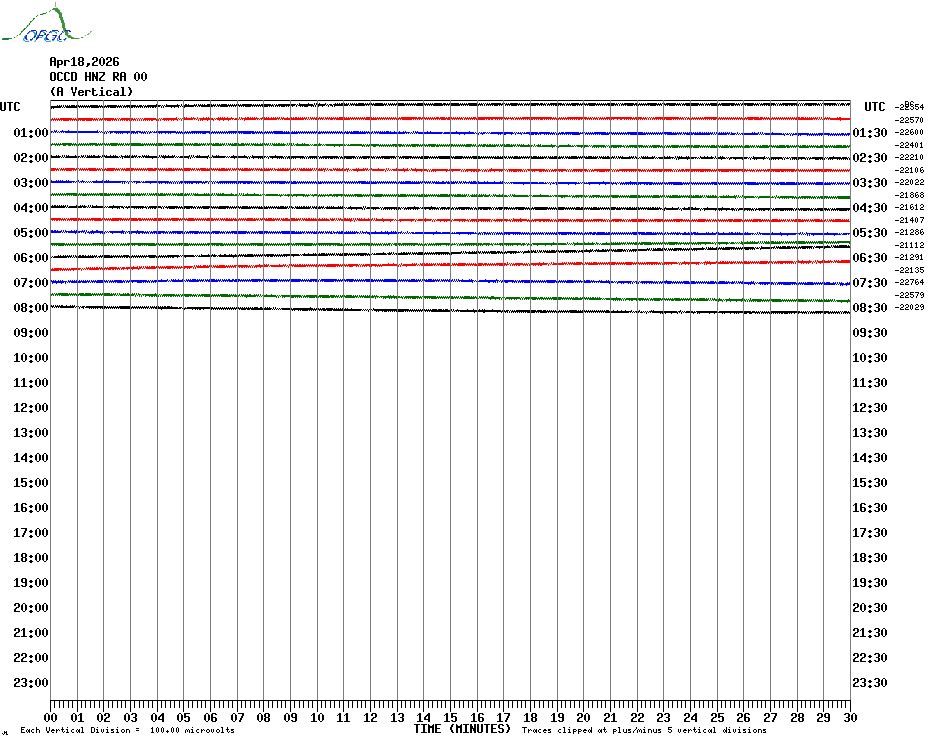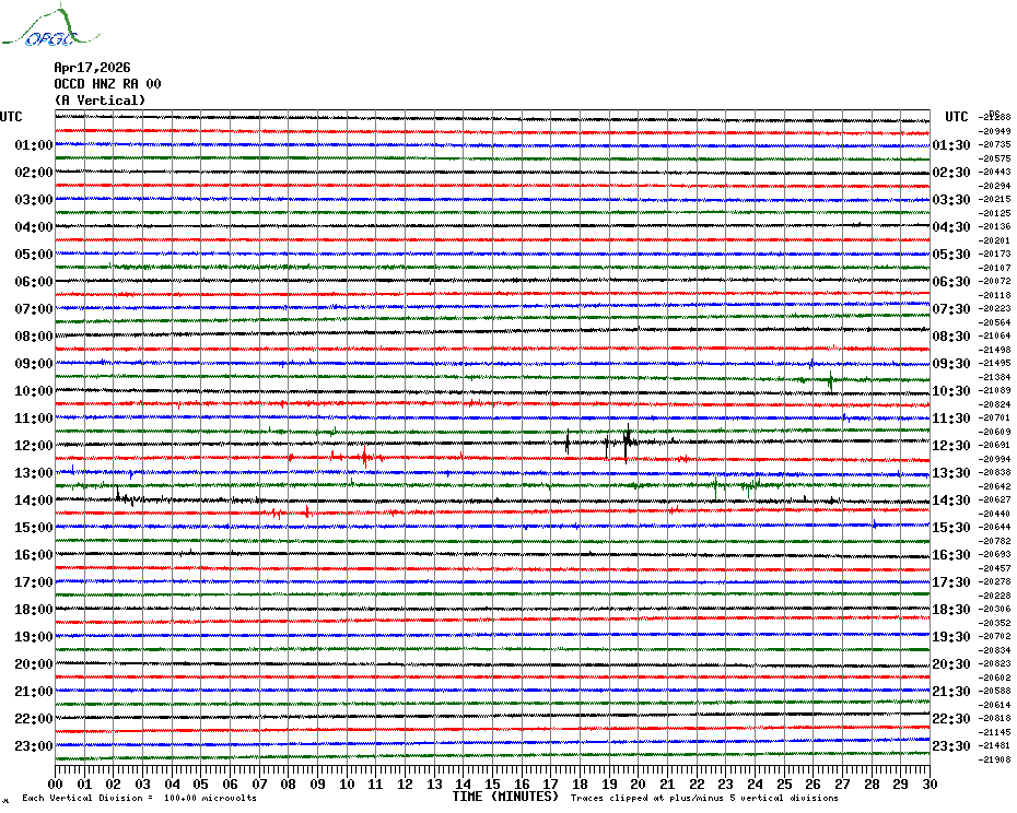 Sismogrammes du Réseau Sismologique Auvergne par fenêtre de 24h