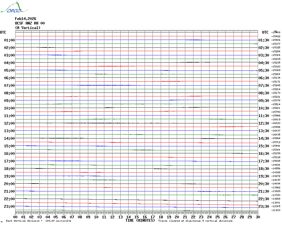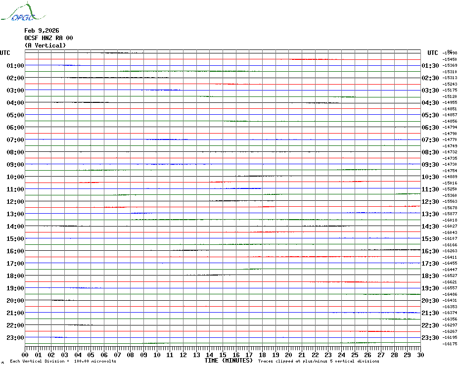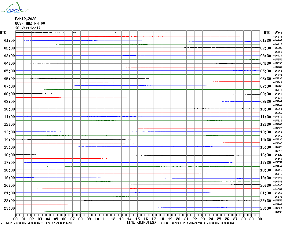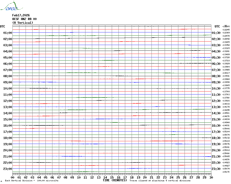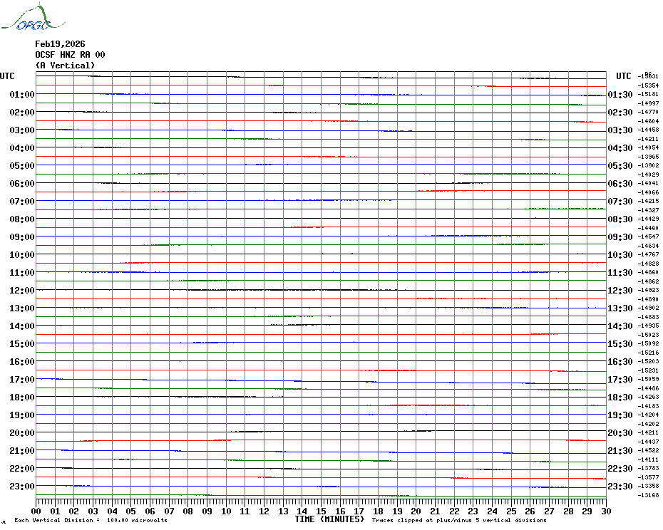 Sismogrammes du Réseau Sismologique Auvergne par fenêtre de 24h