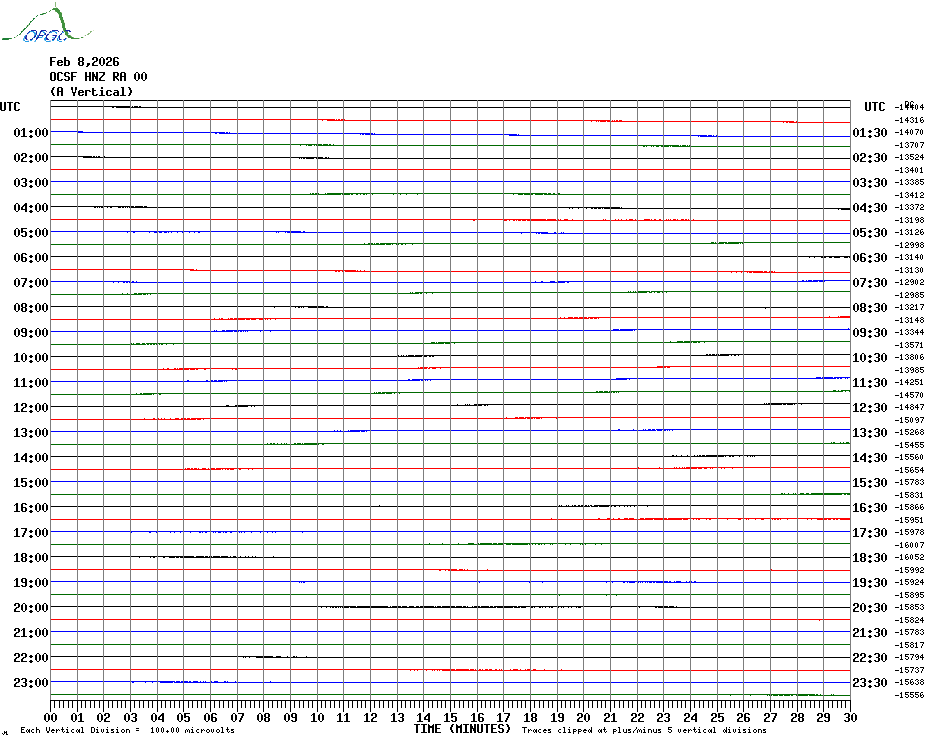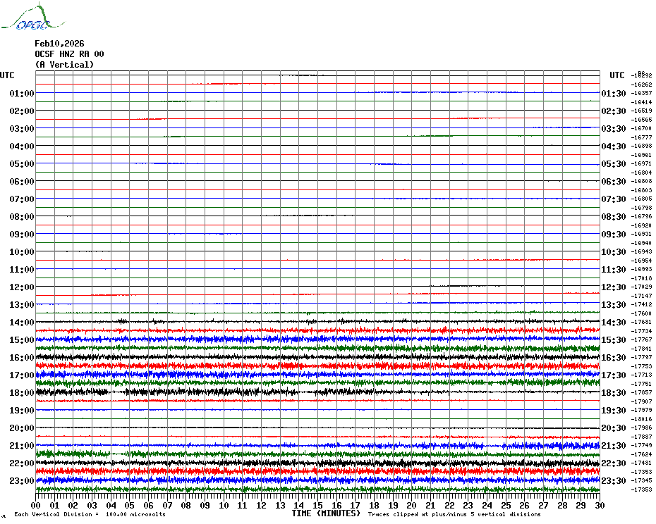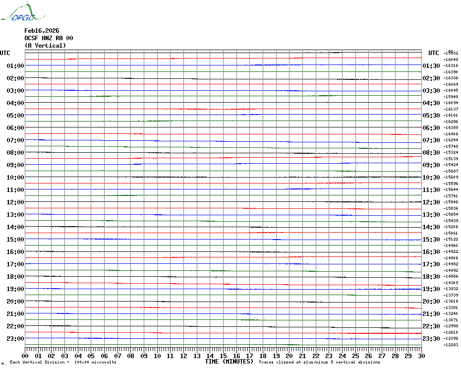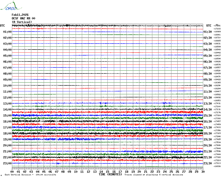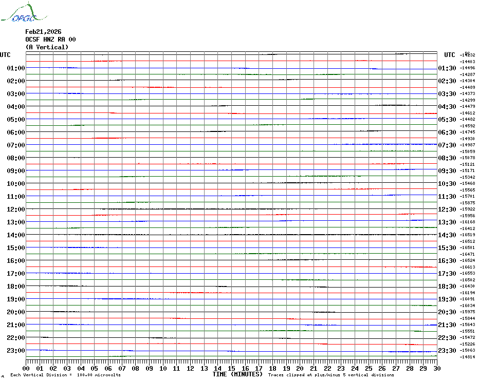 Sismogrammes du Réseau Sismologique Auvergne par fenêtre de 24h
