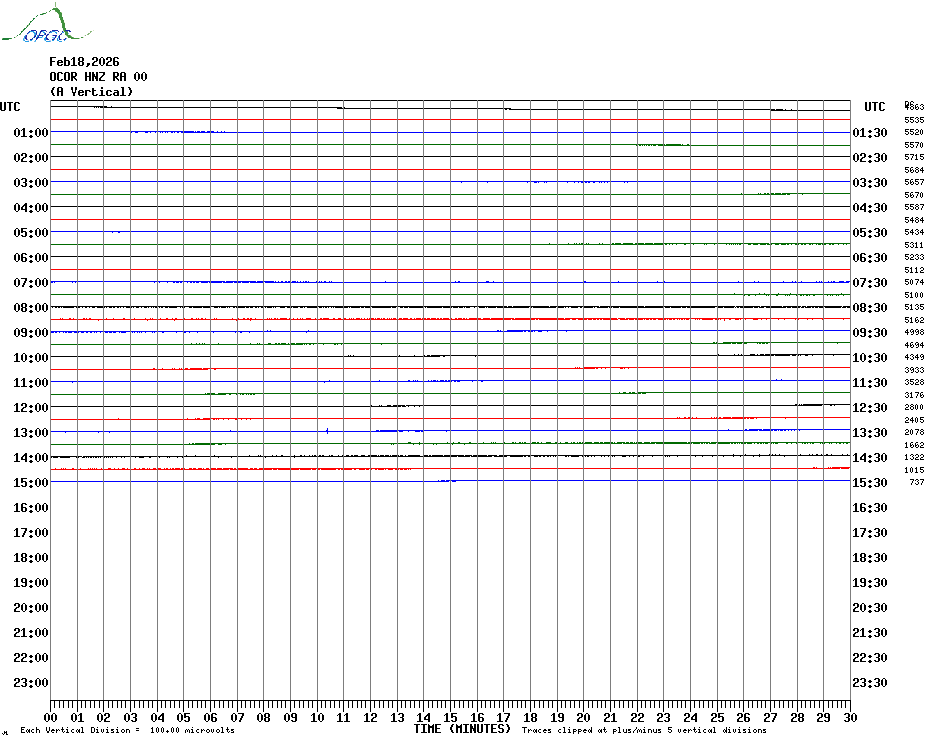 Sismogrammes du Réseau Sismologique Auvergne par fenêtre de 24h