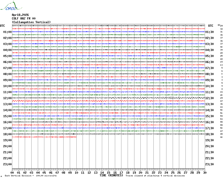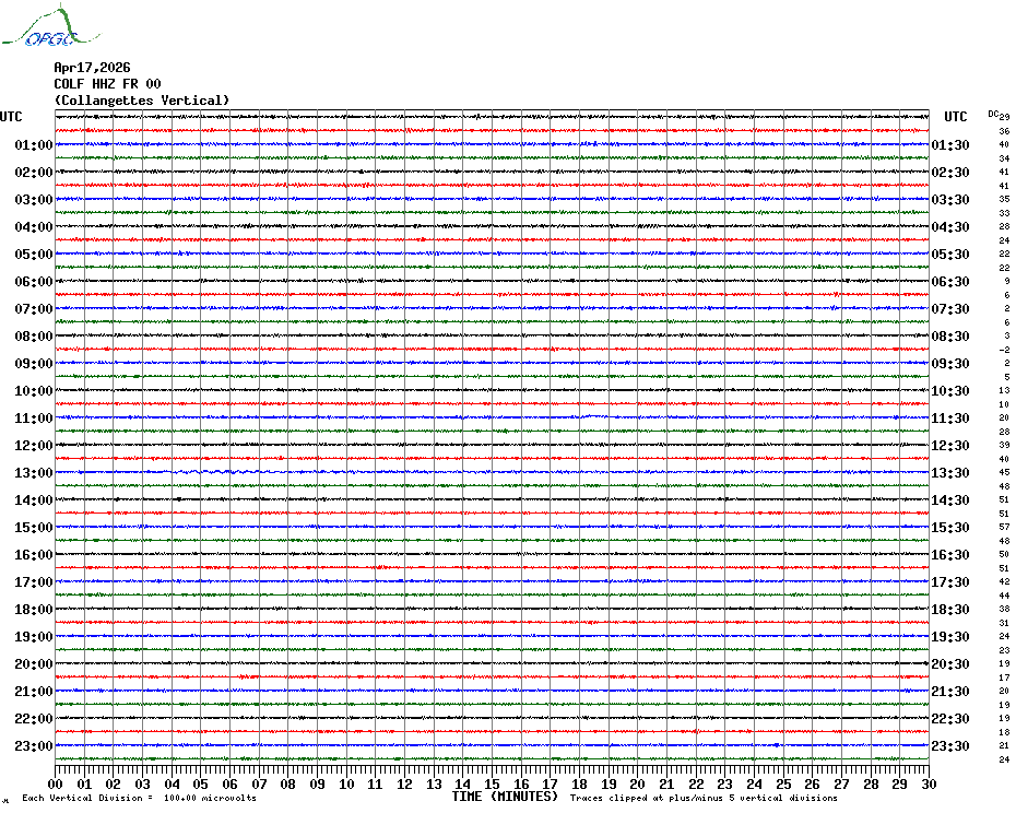 Sismogrammes du Réseau Sismologique Auvergne par fenêtre de 24h