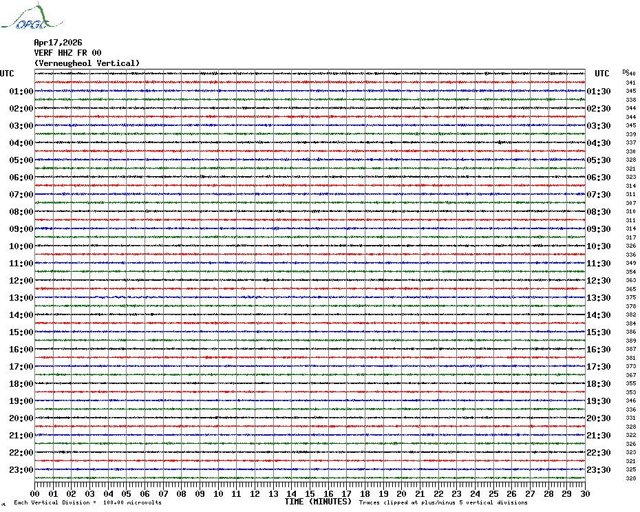 Sismogrammes du Réseau Sismologique Auvergne par fenêtre de 24h