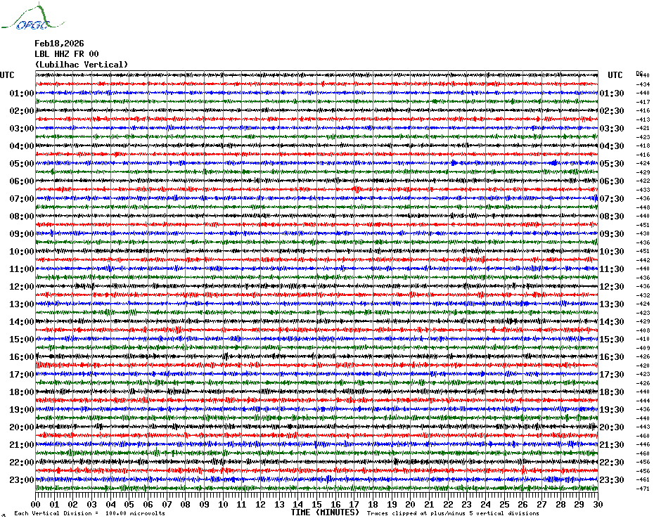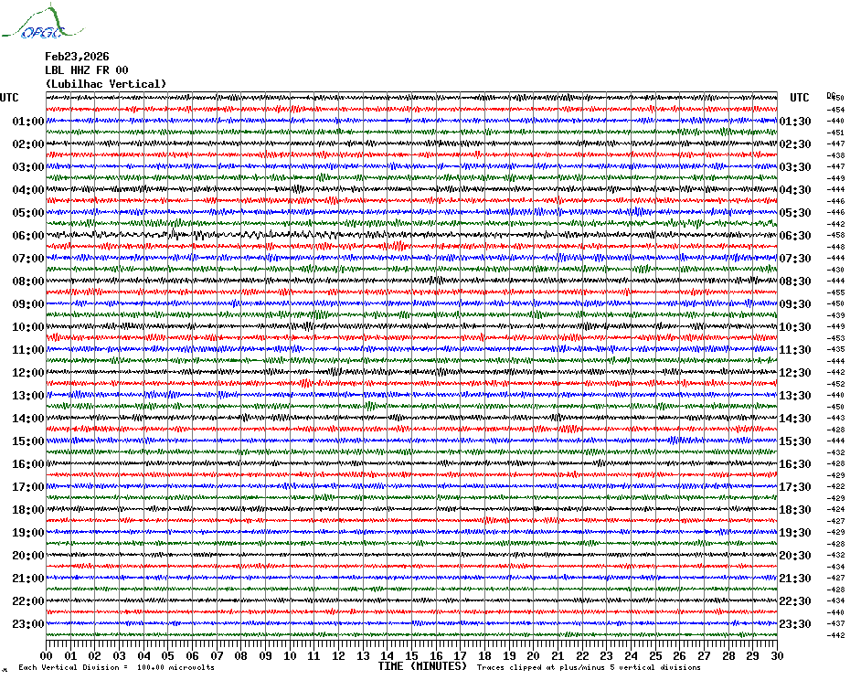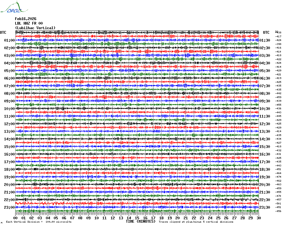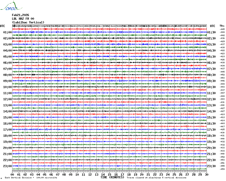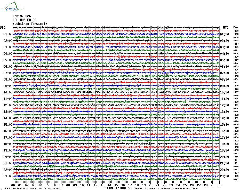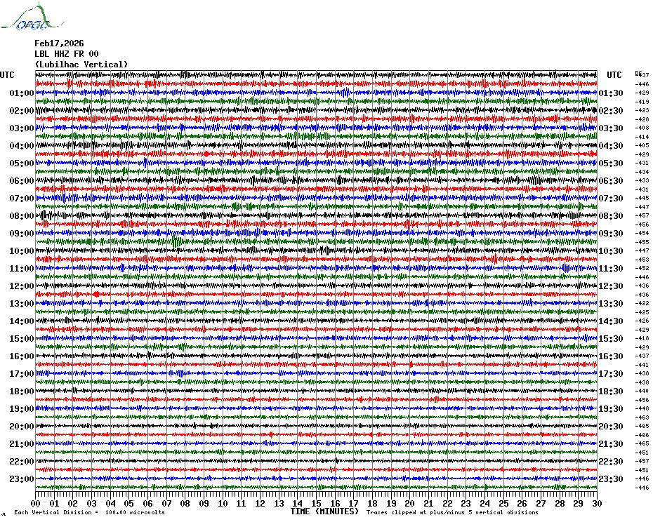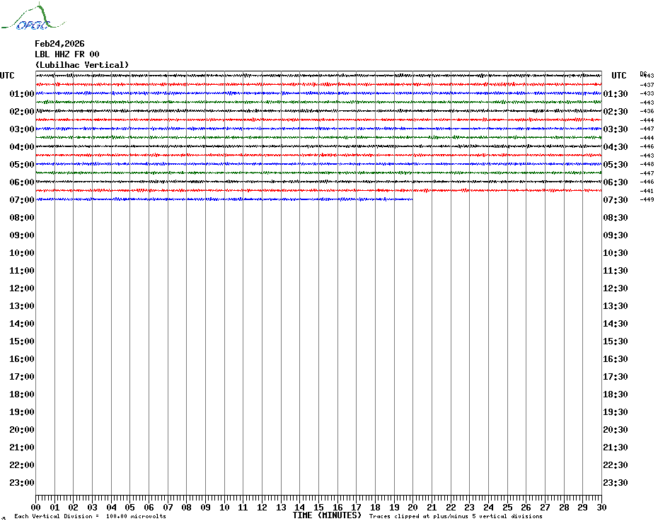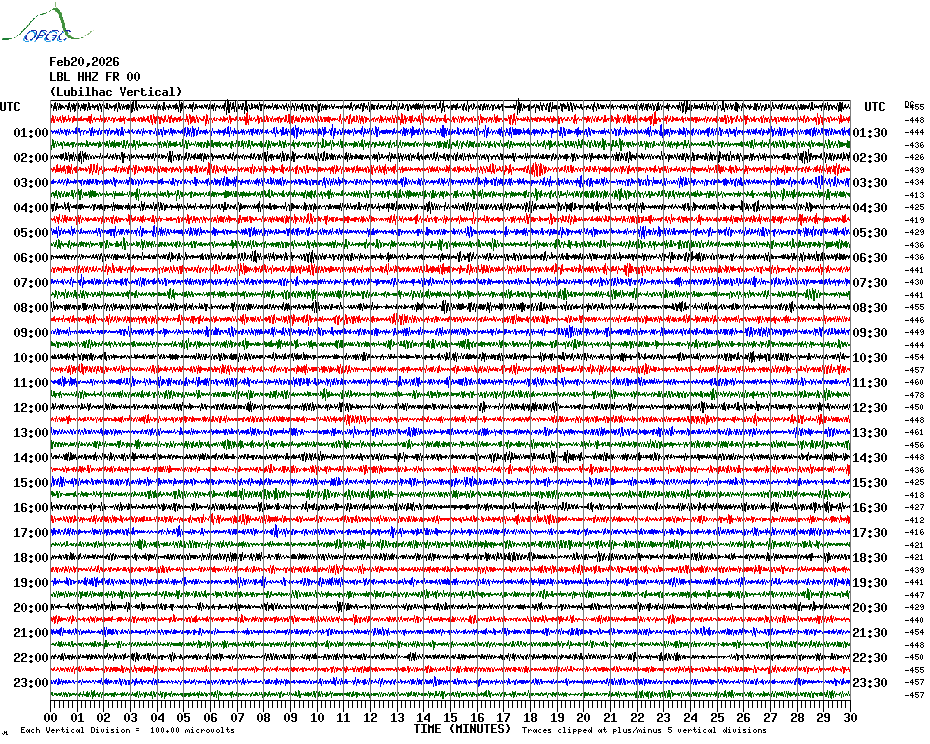Sismogrammes du Réseau Sismologique Auvergne par fenêtre de 24h