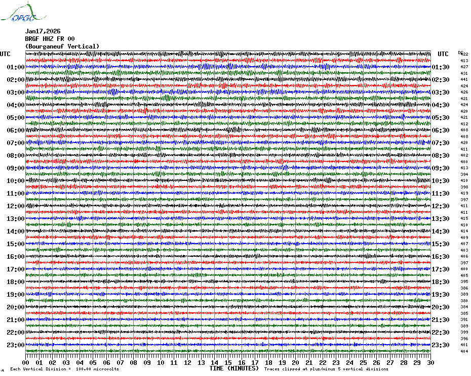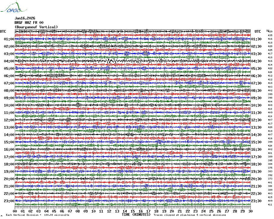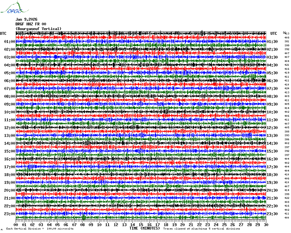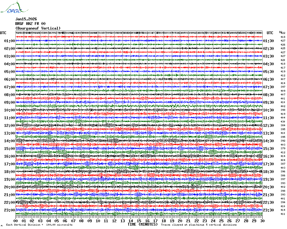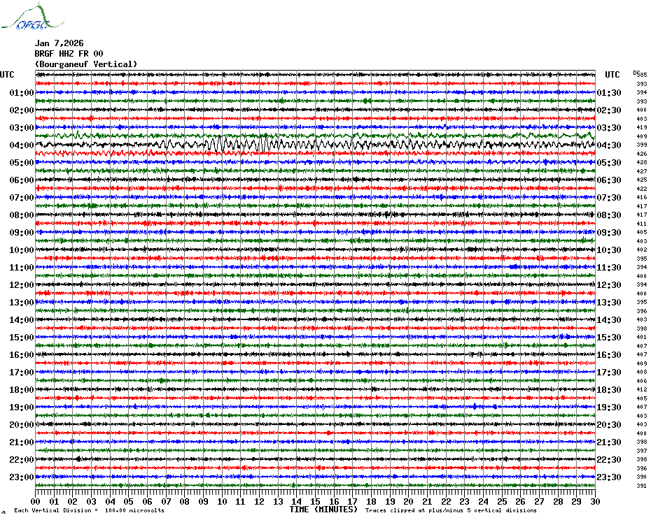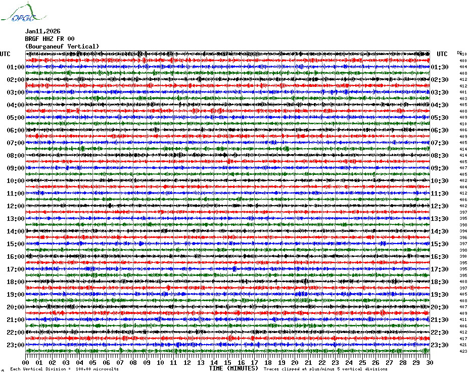 Sismogrammes du Réseau Sismologique Auvergne par fenêtre de 24h