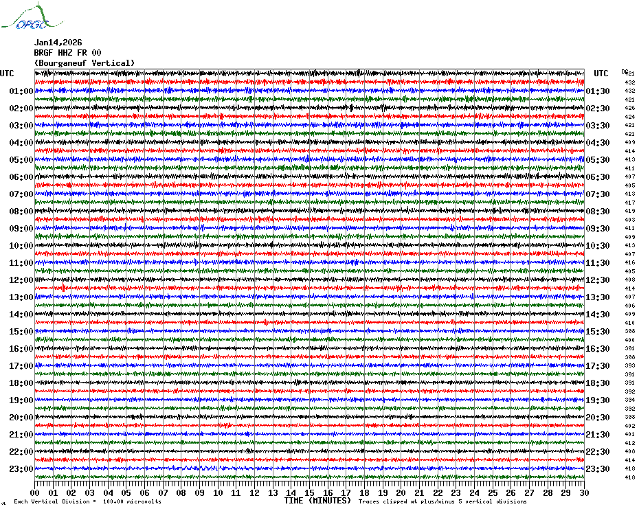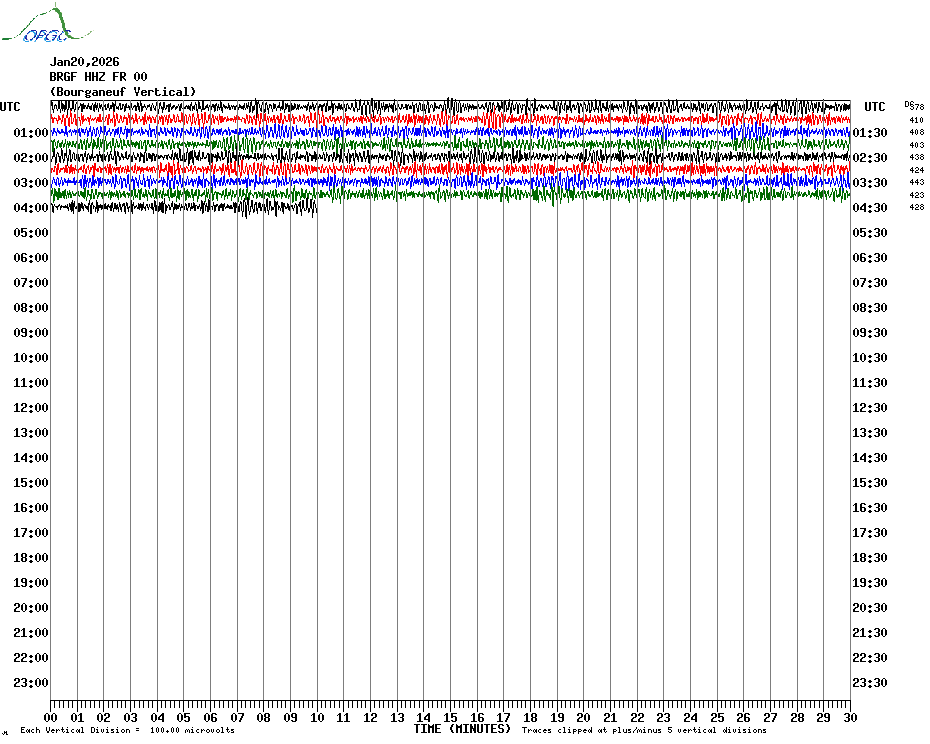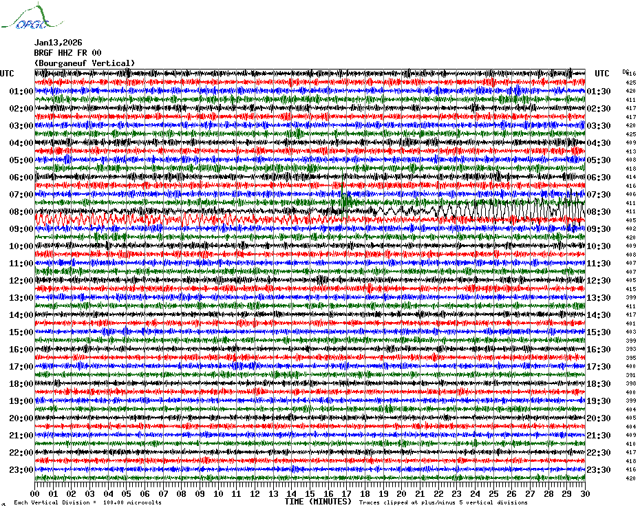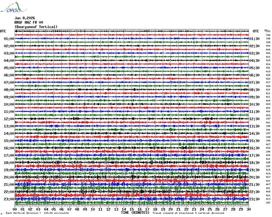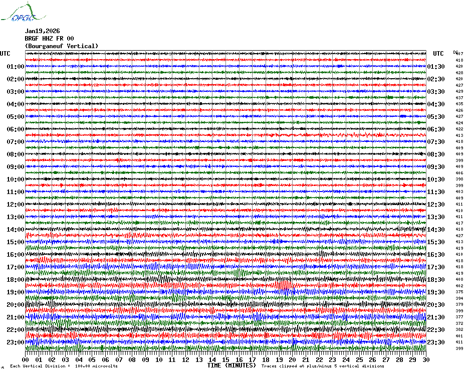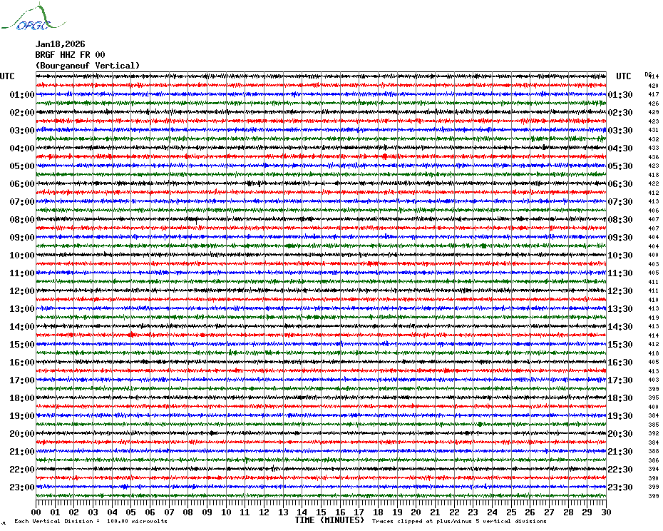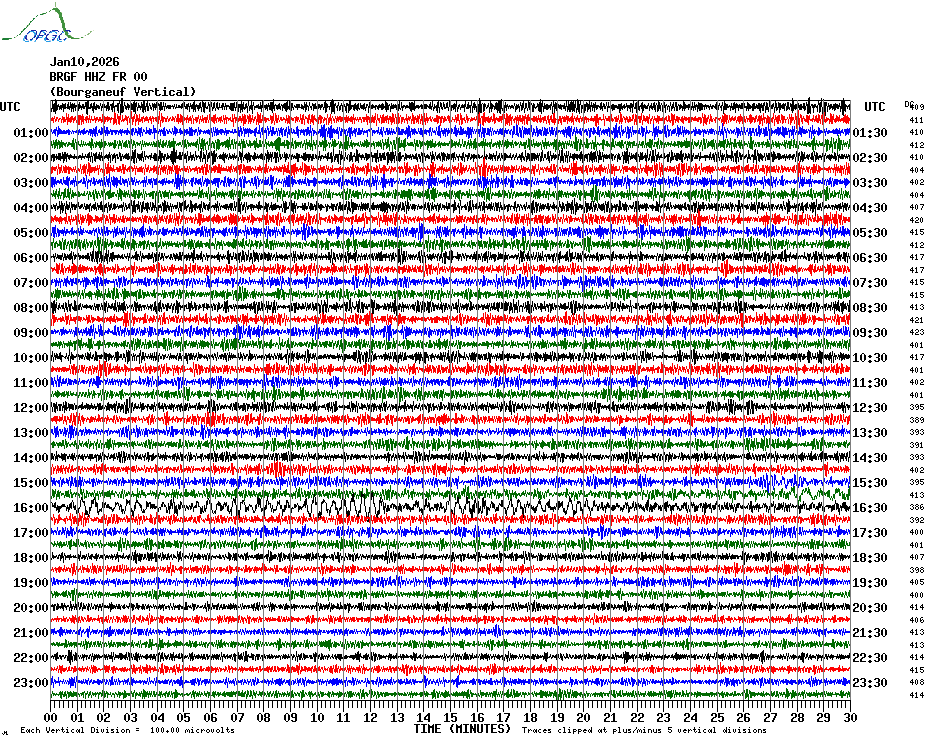 Sismogrammes du Réseau Sismologique Auvergne par fenêtre de 24h