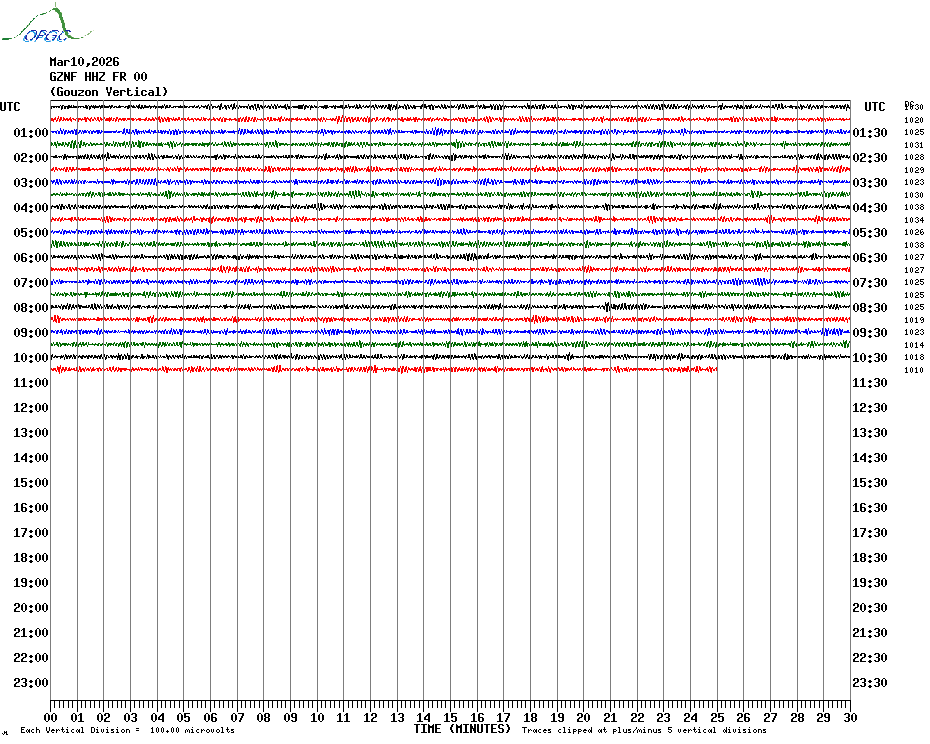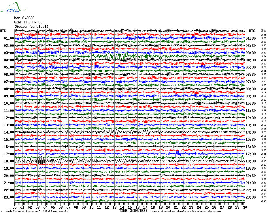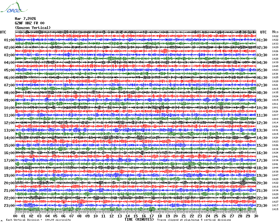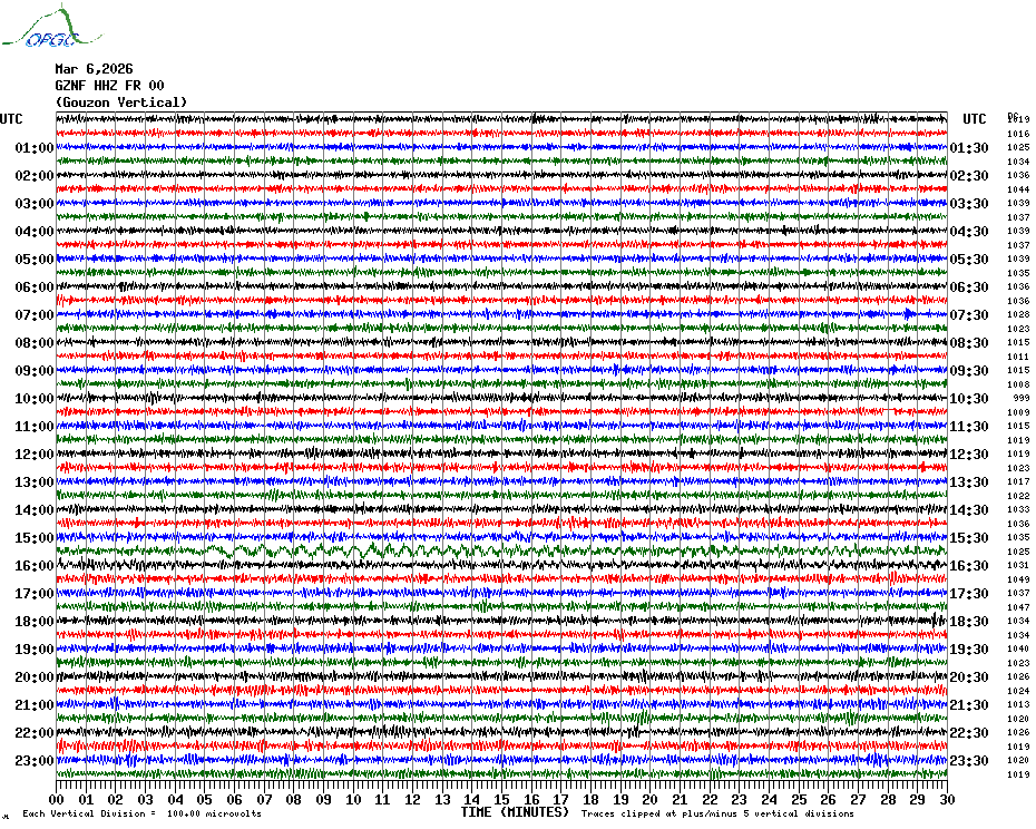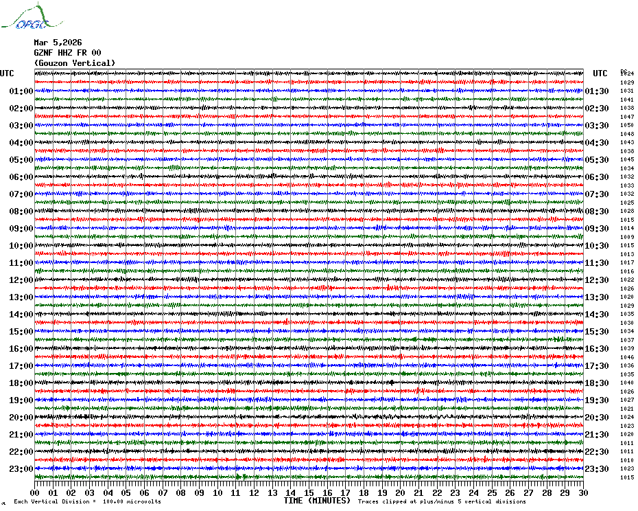 Sismogrammes du Réseau Sismologique Auvergne par fenêtre de 24h