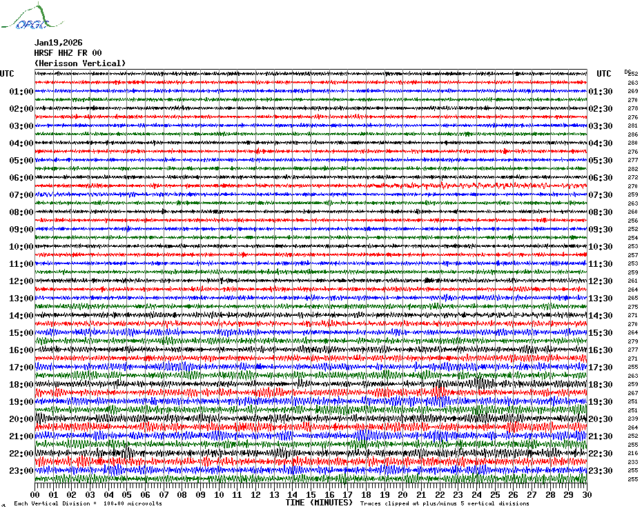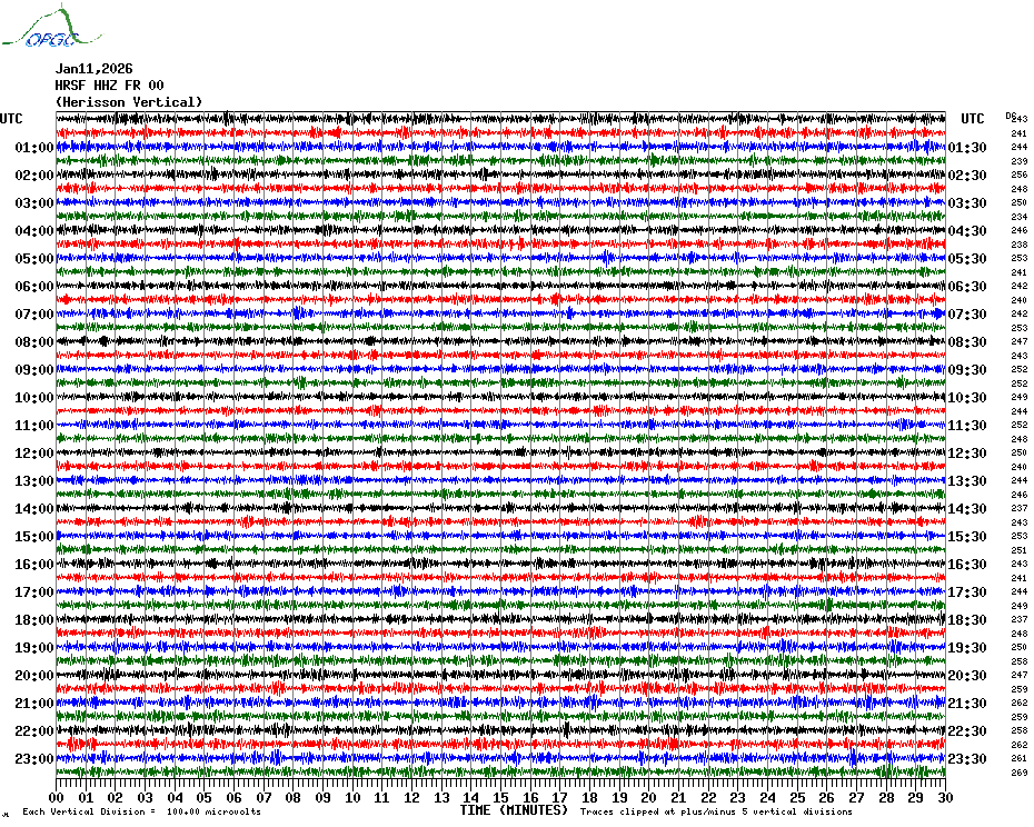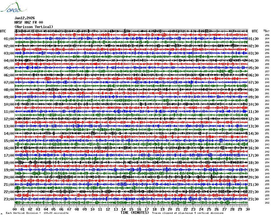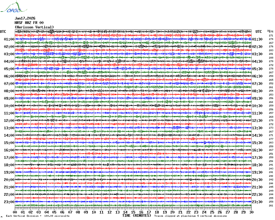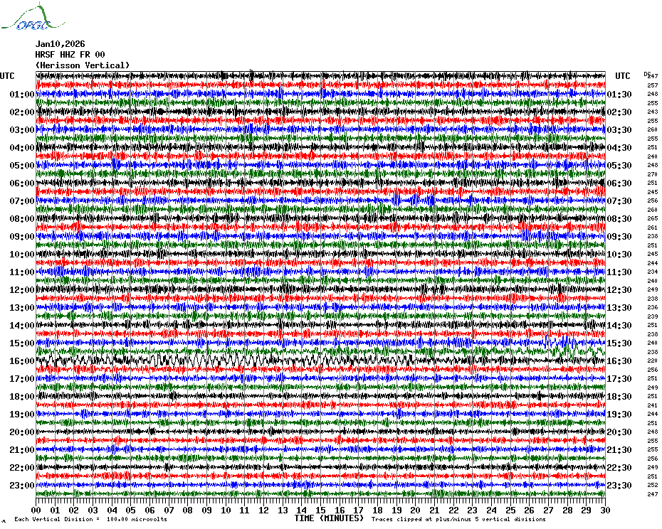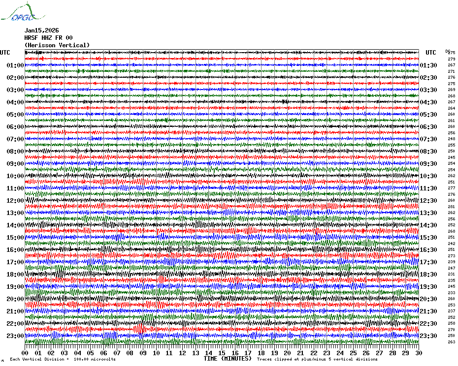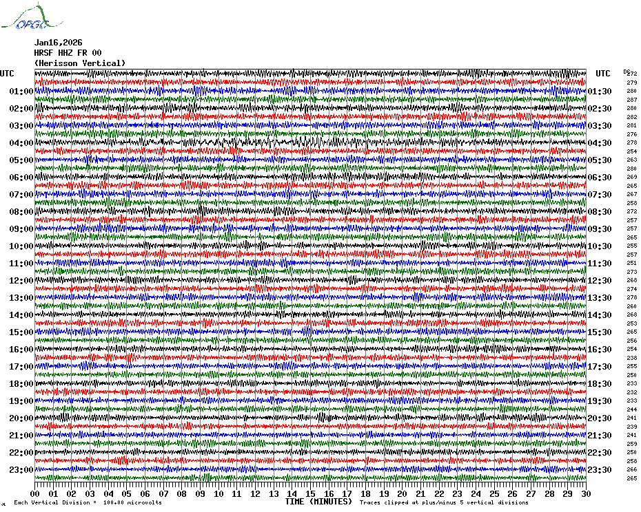 Sismogrammes du Réseau Sismologique Auvergne par fenêtre de 24h