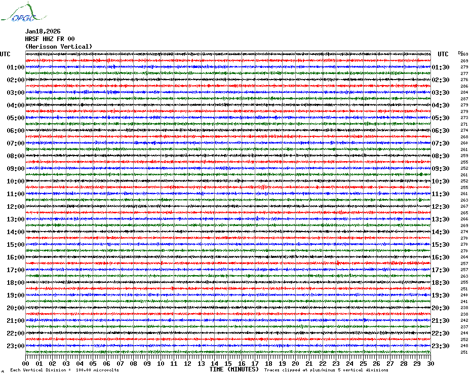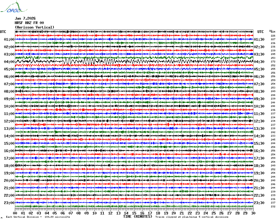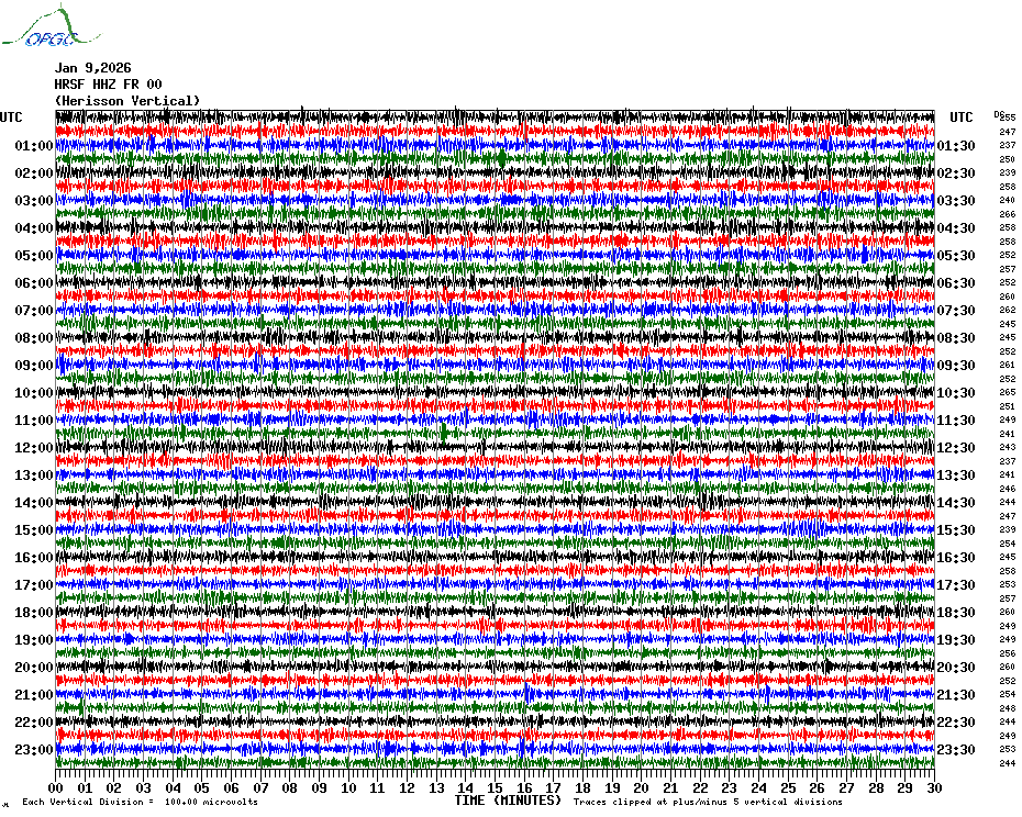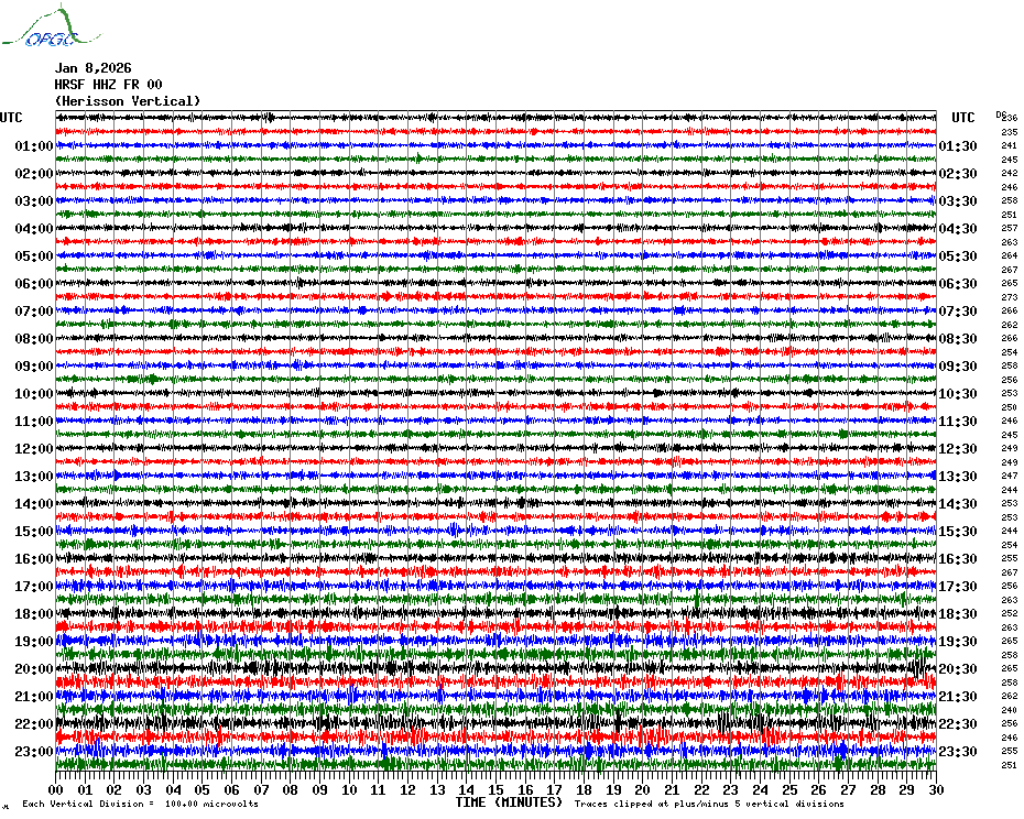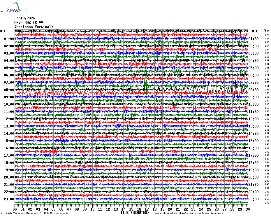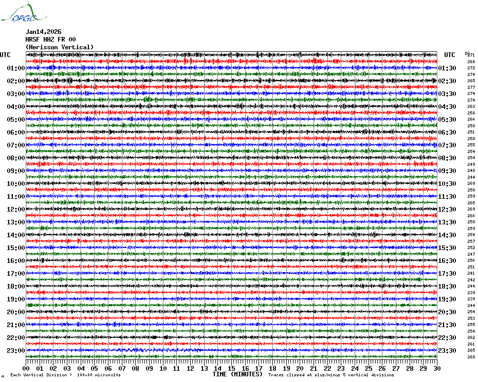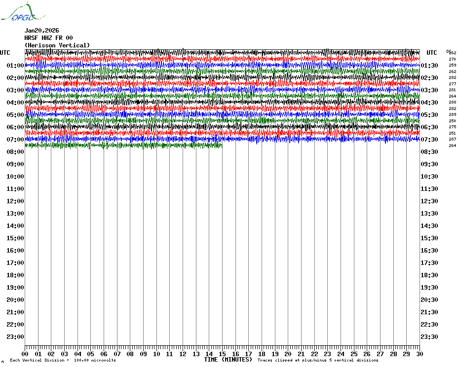 Sismogrammes du Réseau Sismologique Auvergne par fenêtre de 24h
