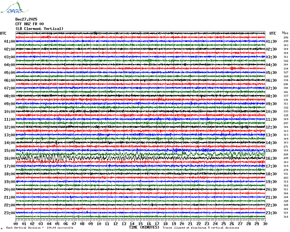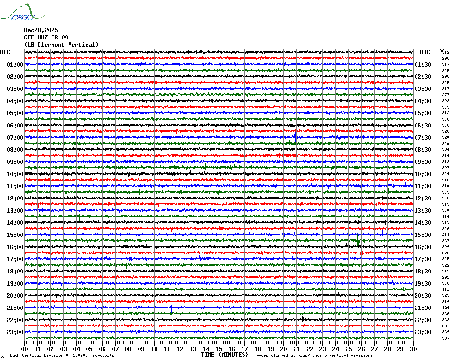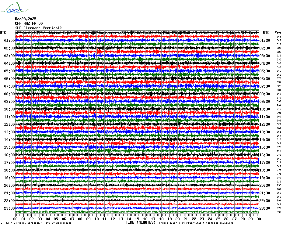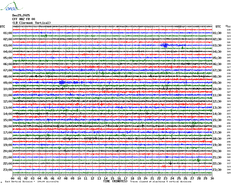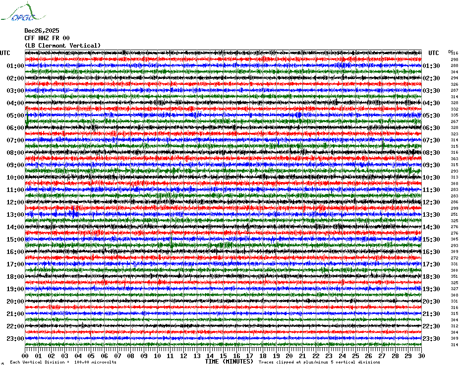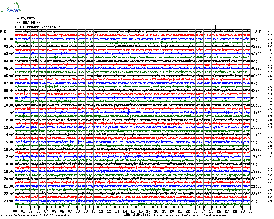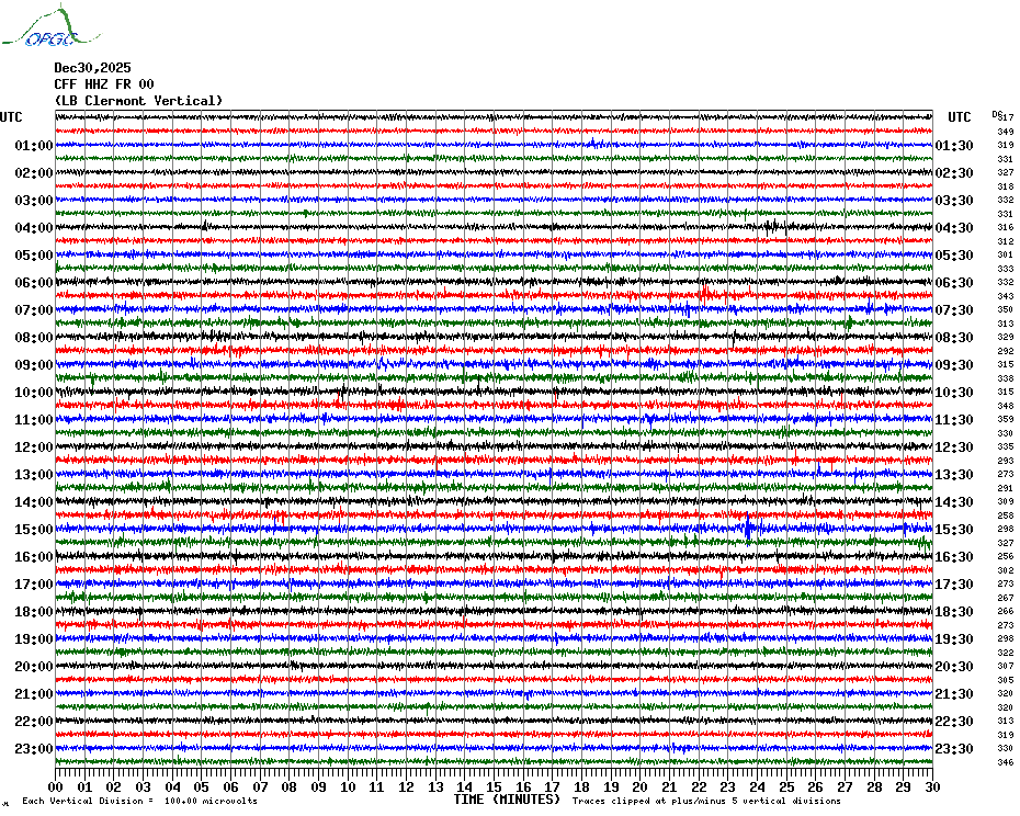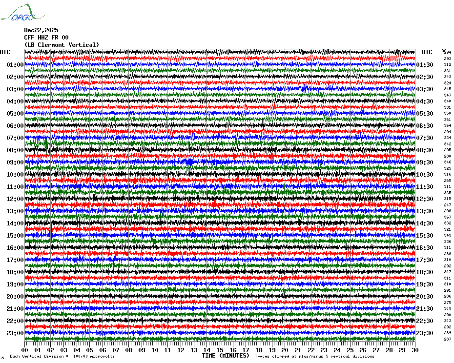 Sismogrammes du Réseau Sismologique Auvergne par fenêtre de 24h