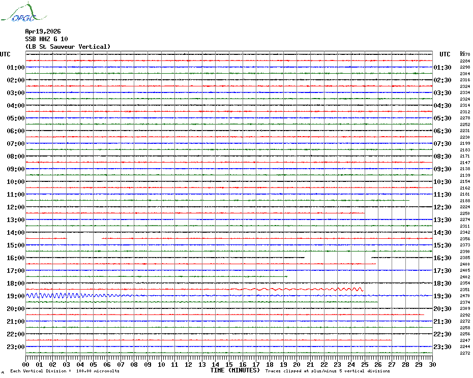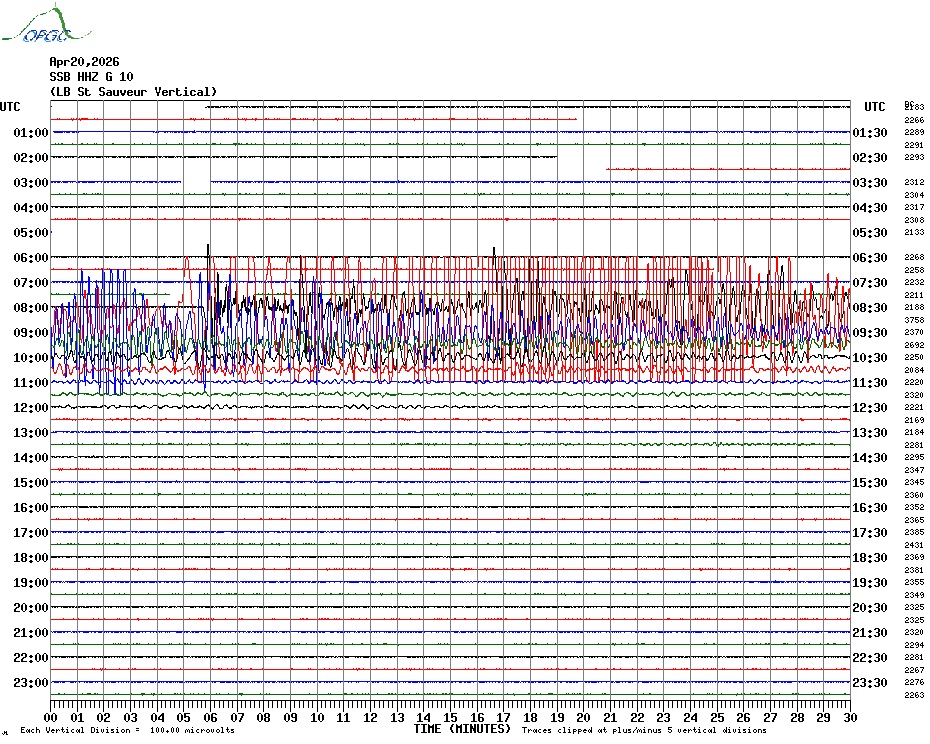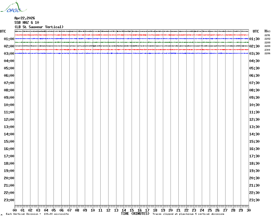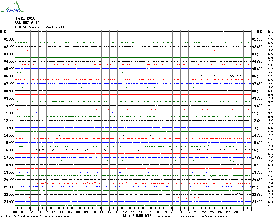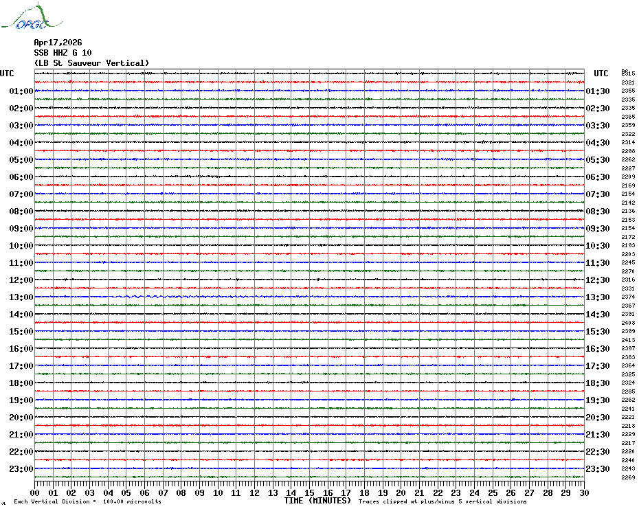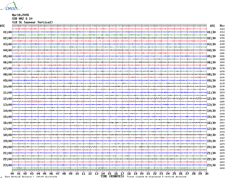 Sismogrammes du Réseau Sismologique Auvergne par fenêtre de 24h