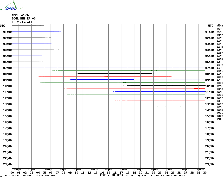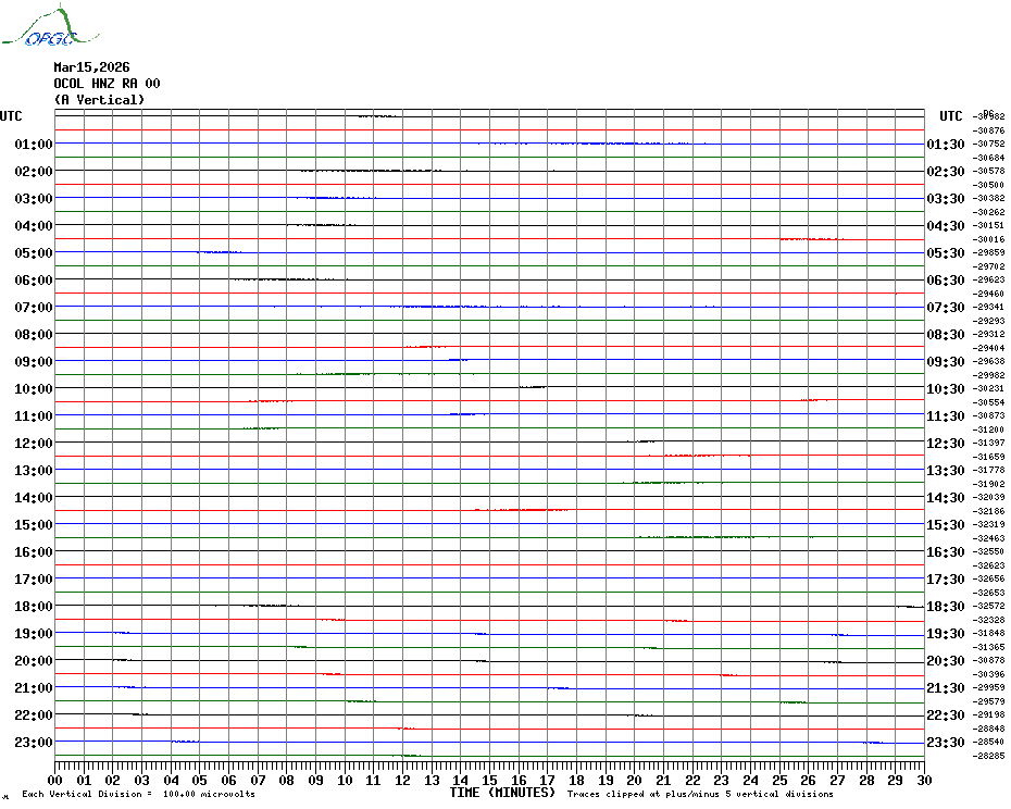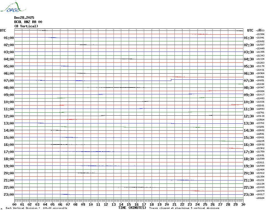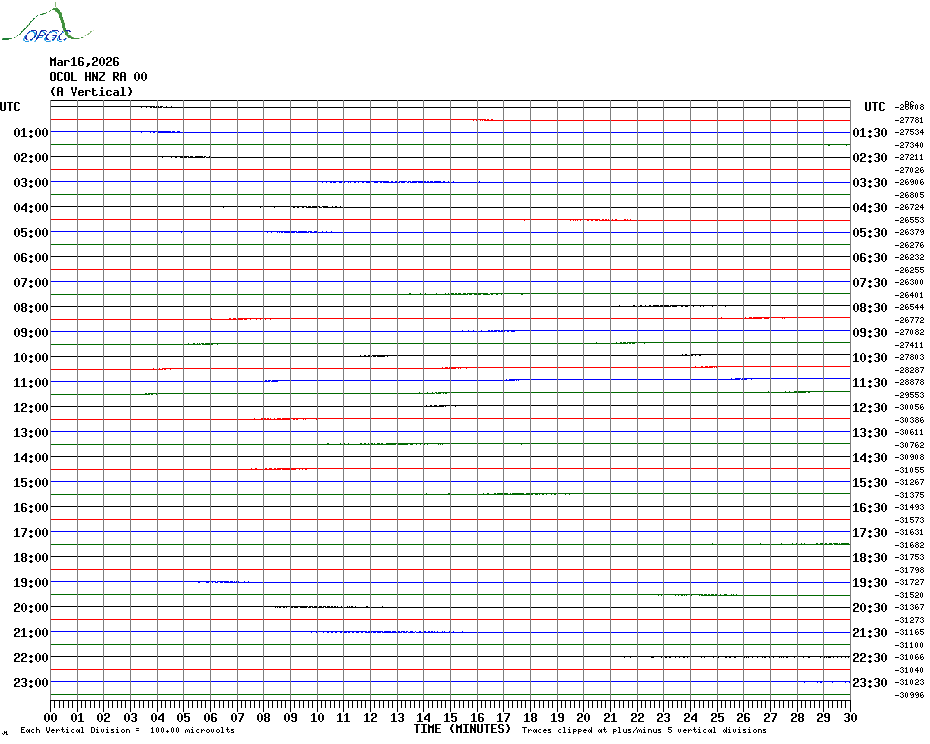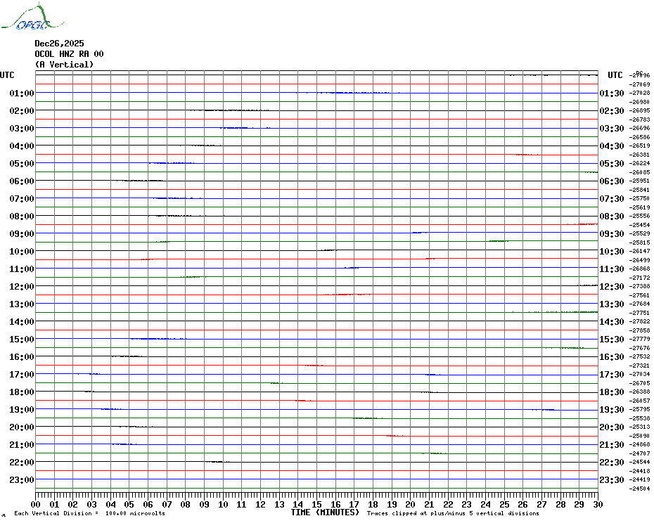 Sismogrammes du Réseau Sismologique Auvergne par fenêtre de 24h