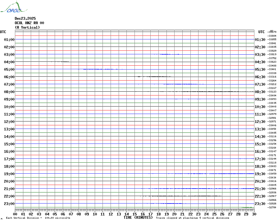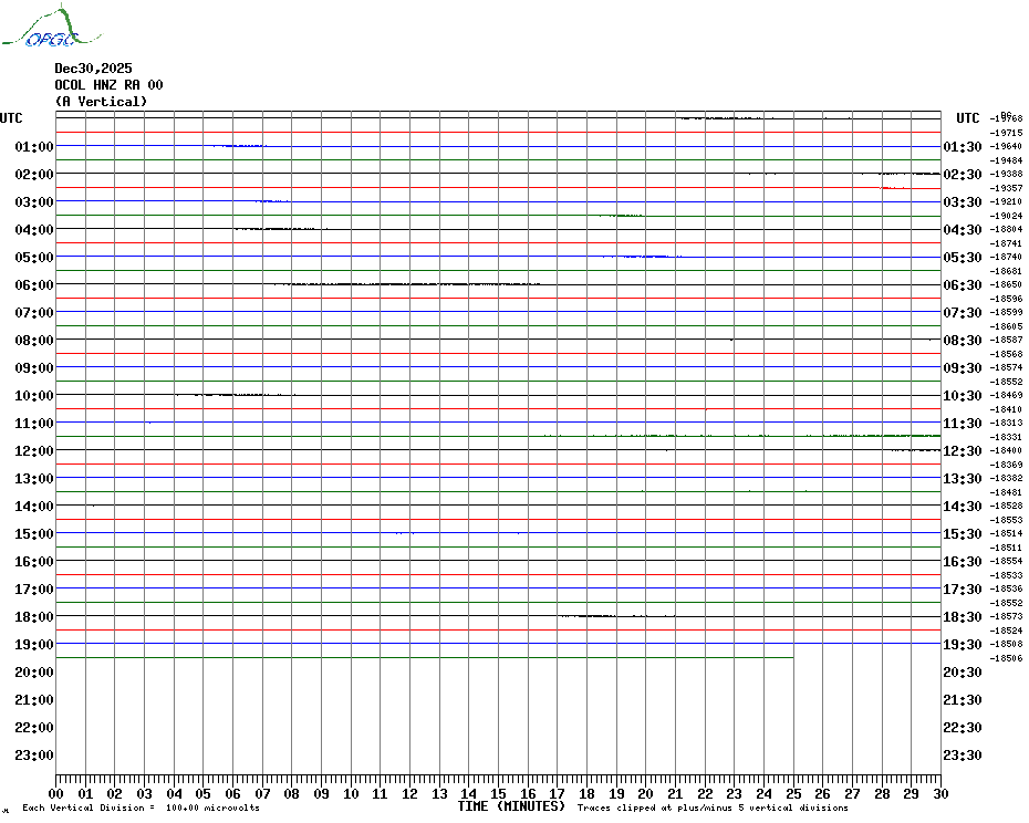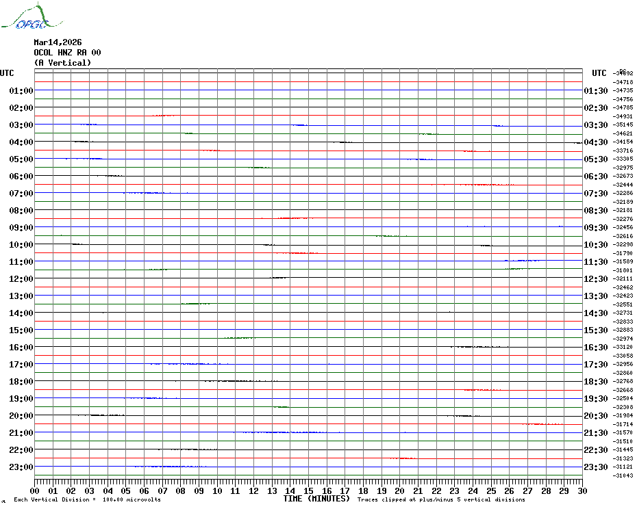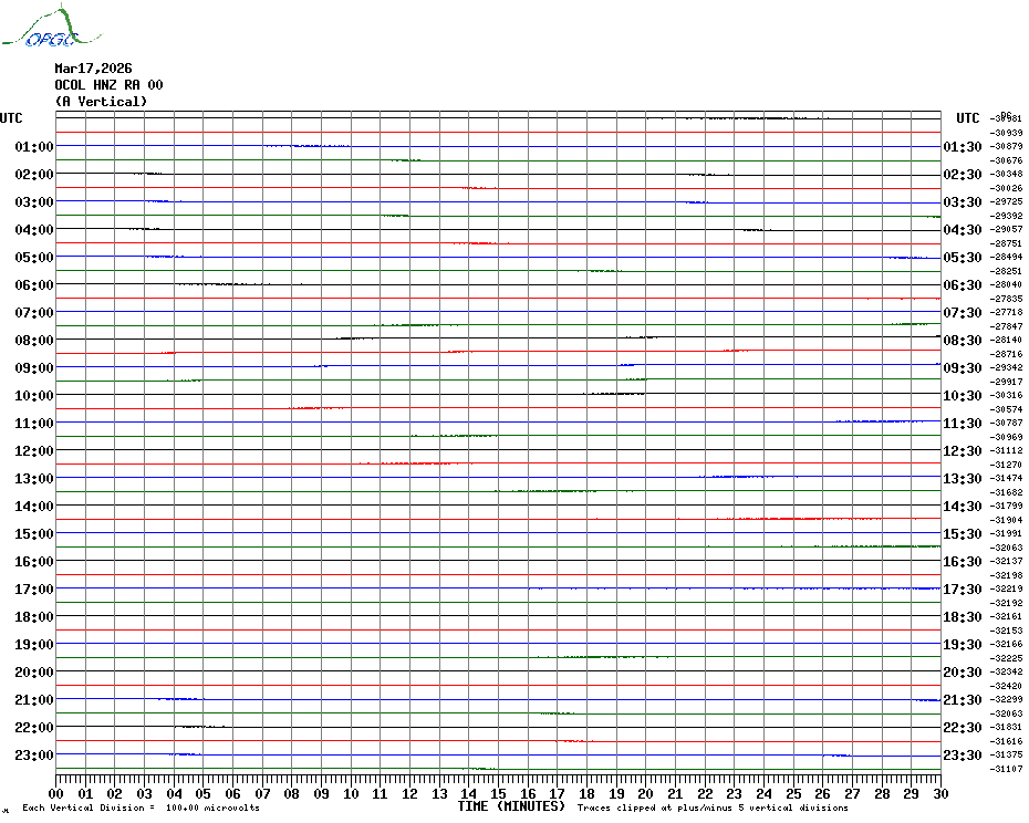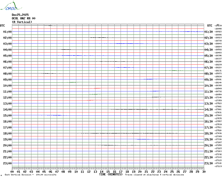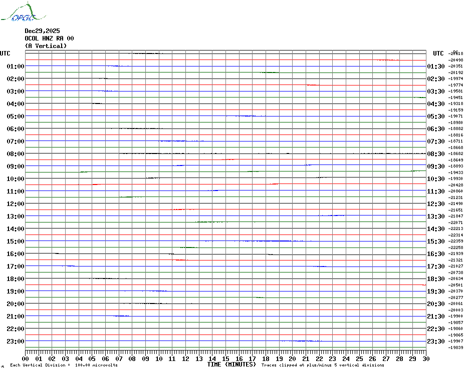 Sismogrammes du Réseau Sismologique Auvergne par fenêtre de 24h