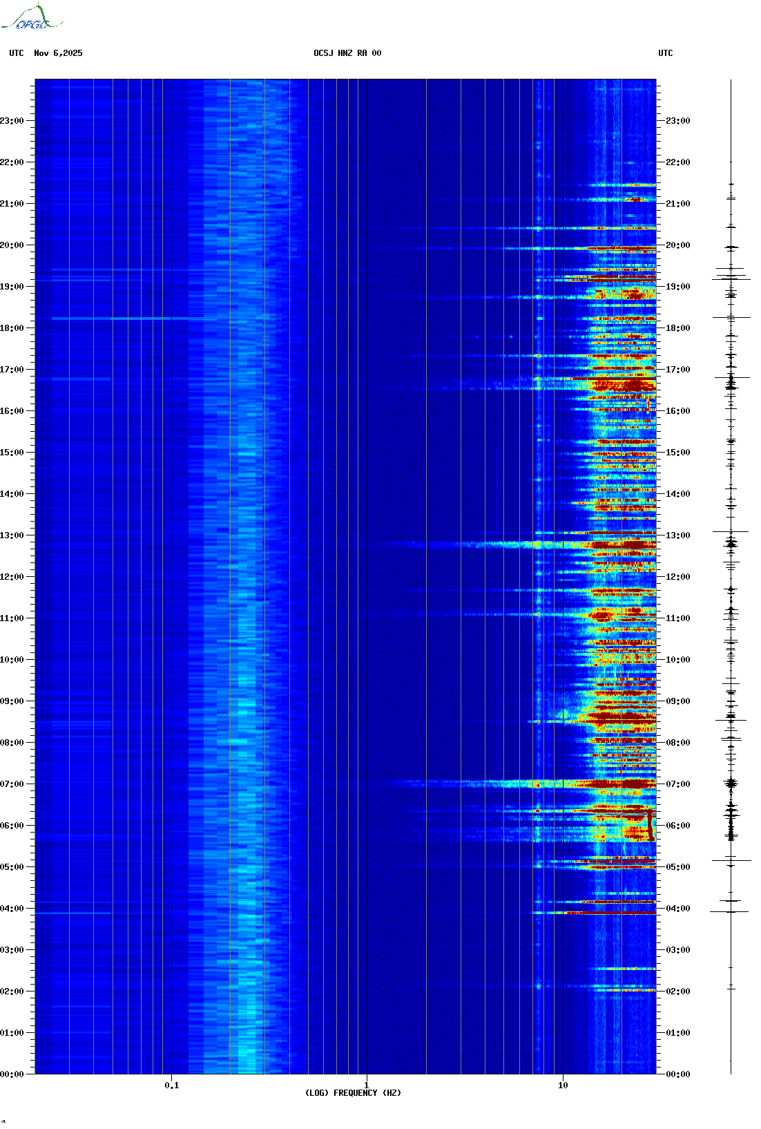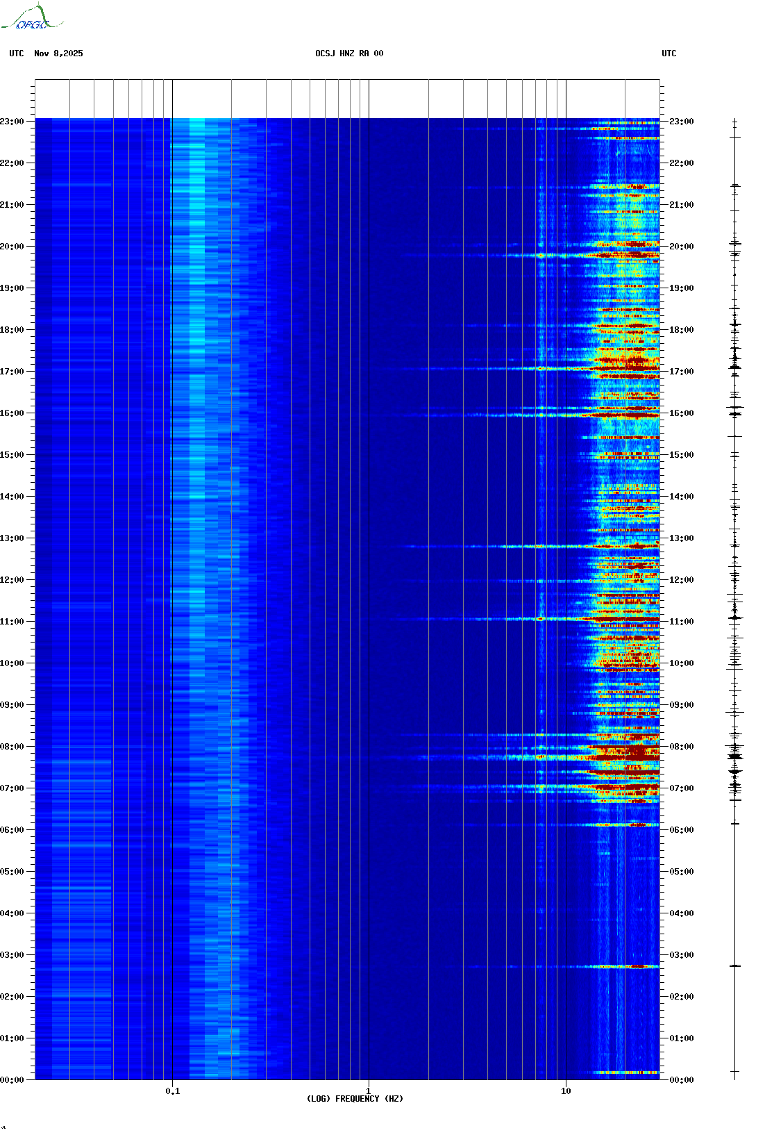 Spectrogrammes du Réseau Sismologique Auvergne-Charentes