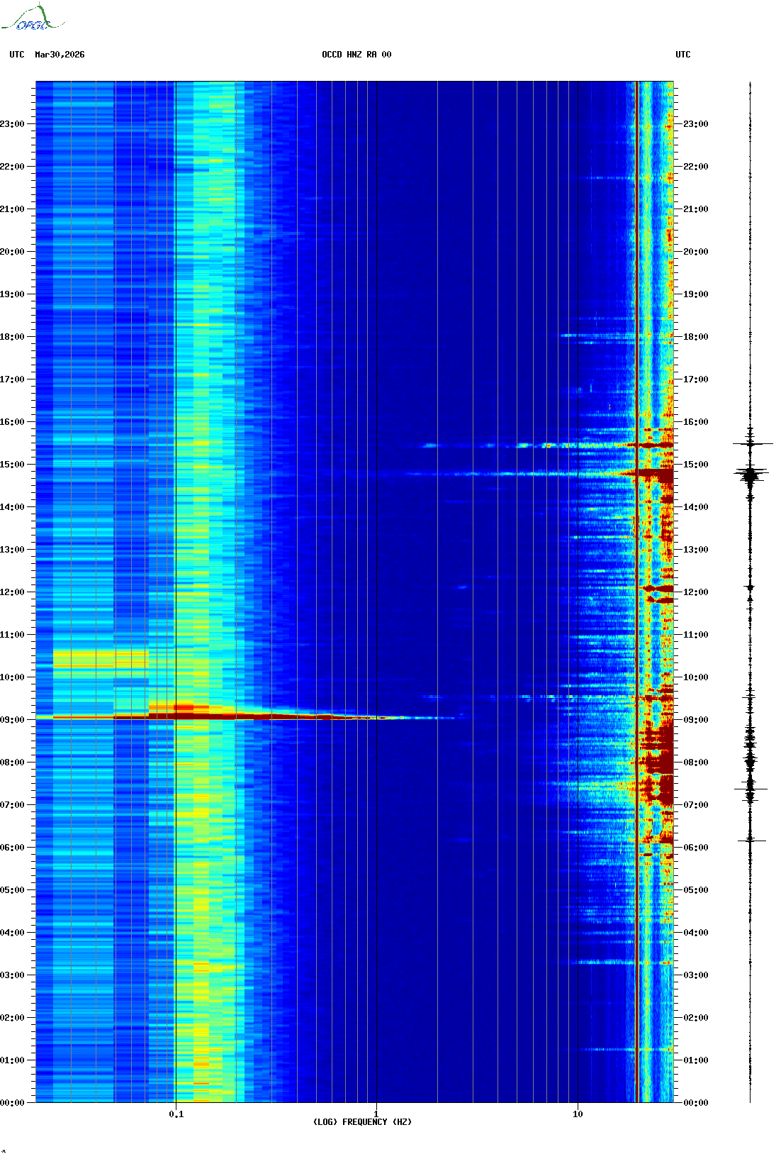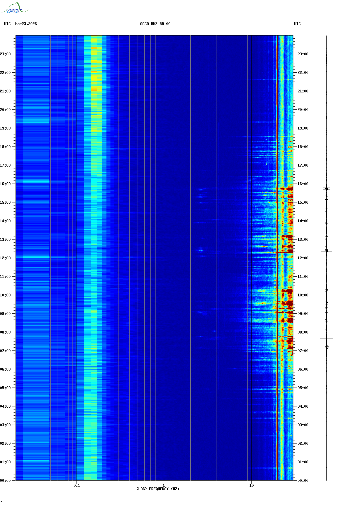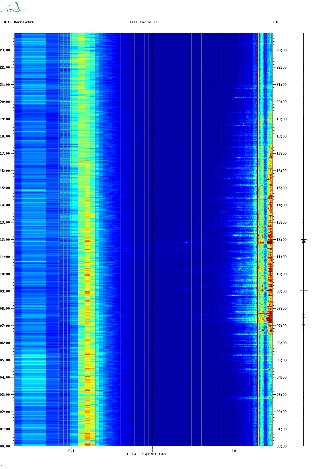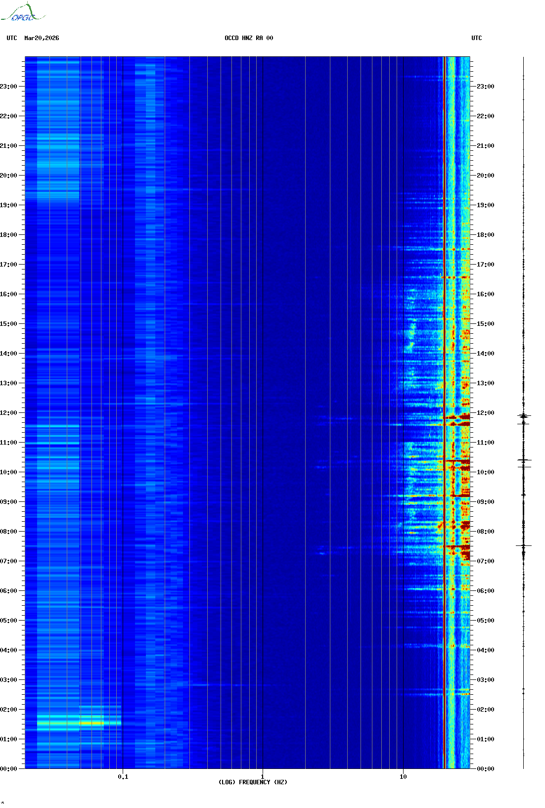 Spectrogrammes du Réseau Sismologique Auvergne-Charentes