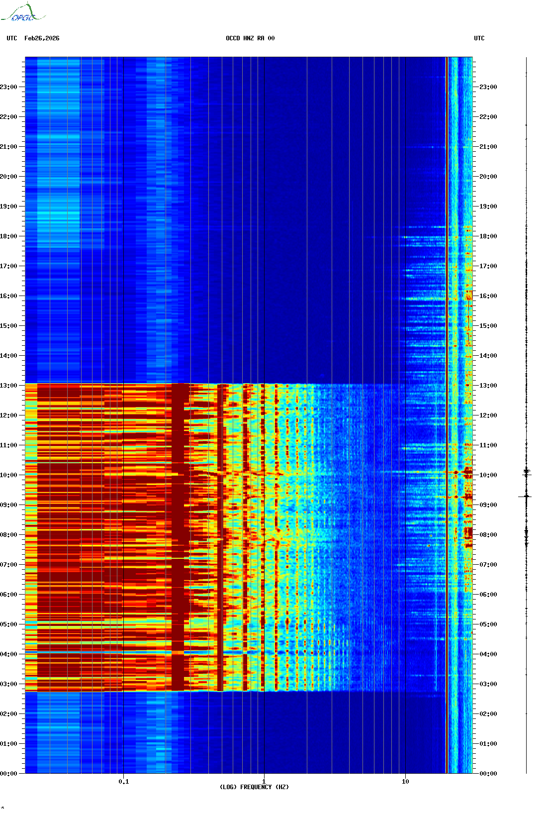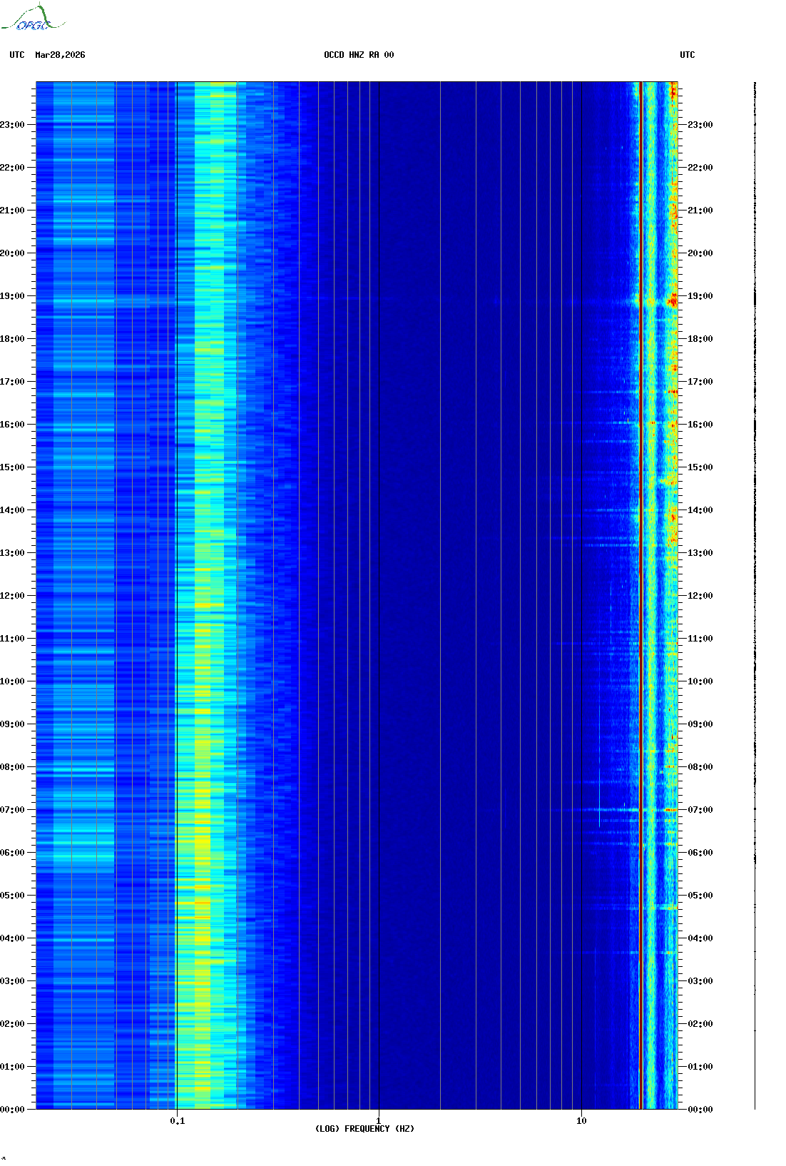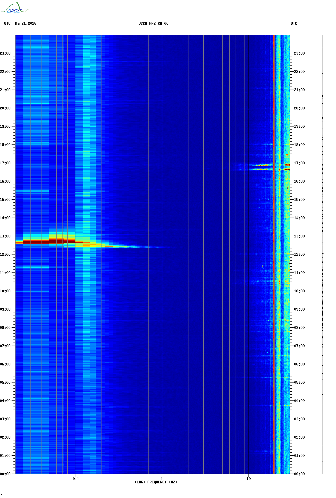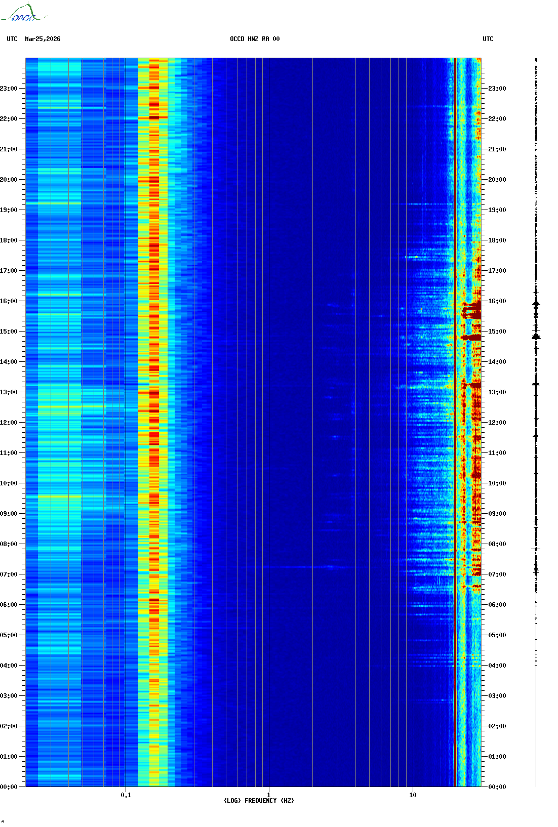Spectrogrammes du Réseau Sismologique Auvergne-Charentes