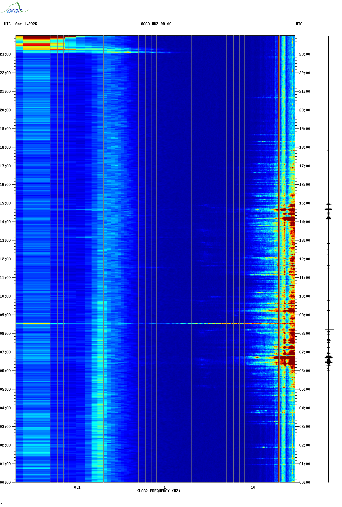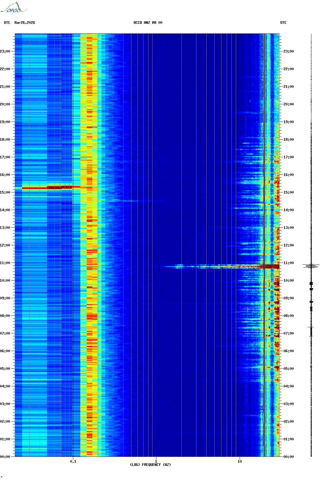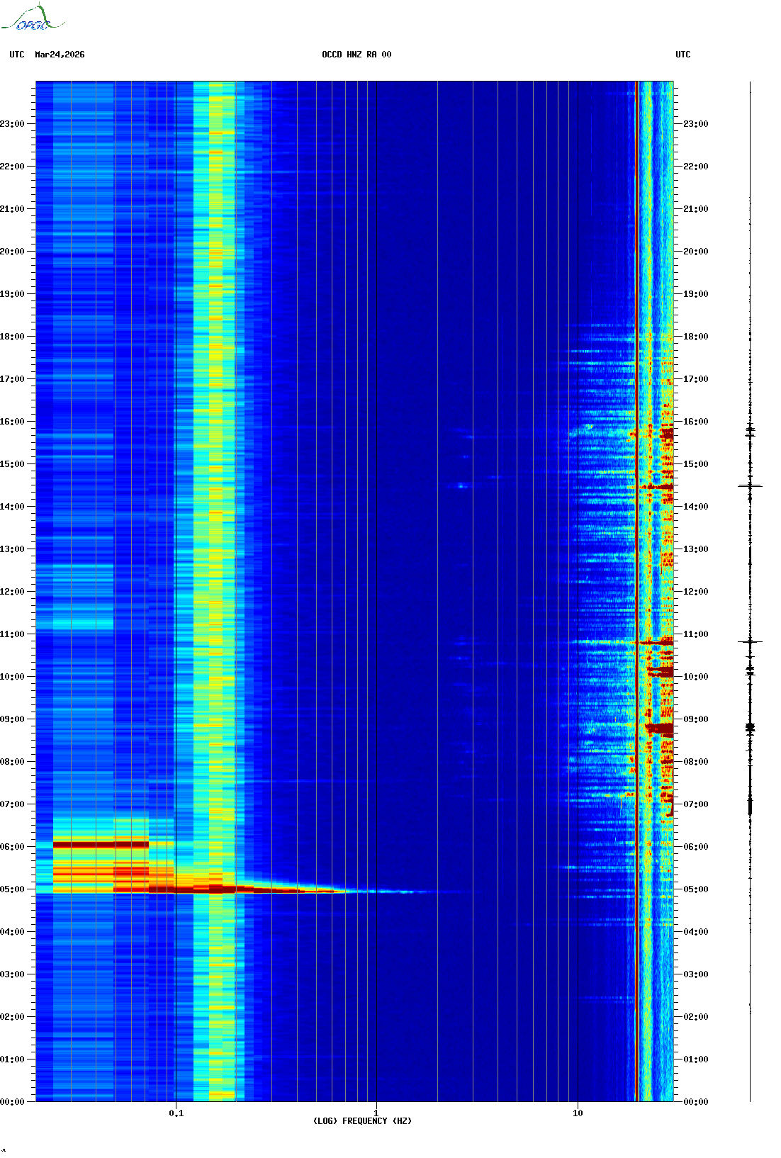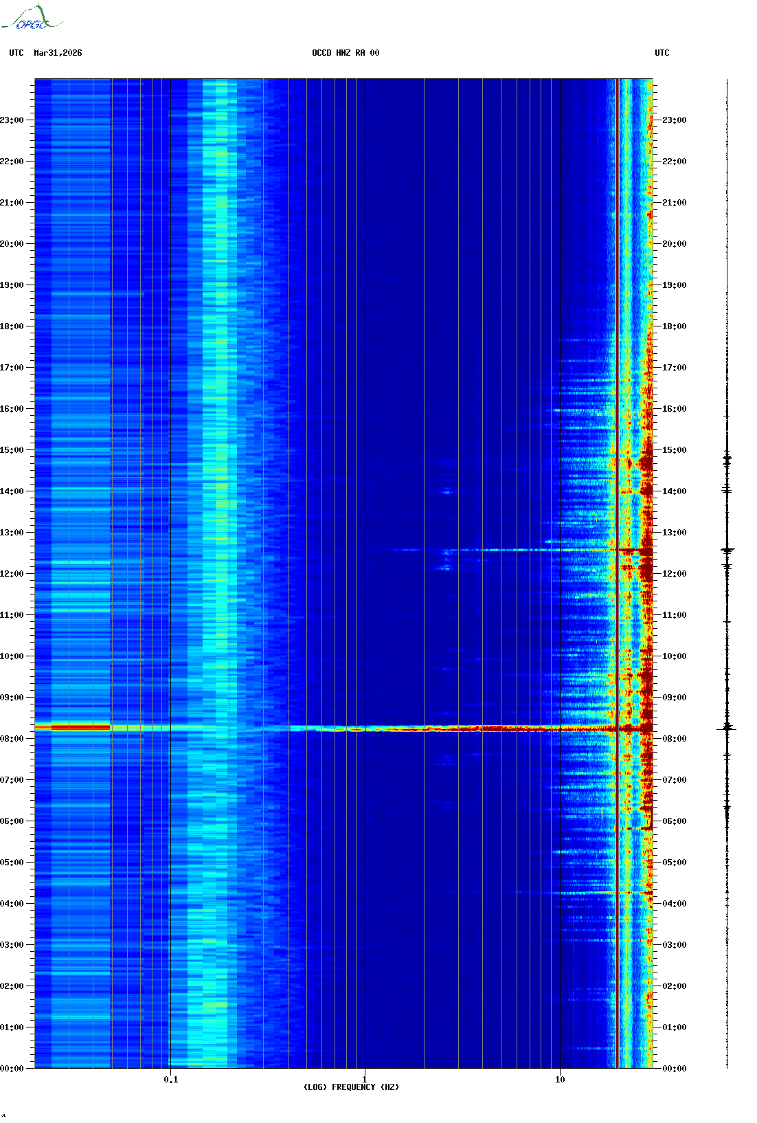 Spectrogrammes du Réseau Sismologique Auvergne-Charentes