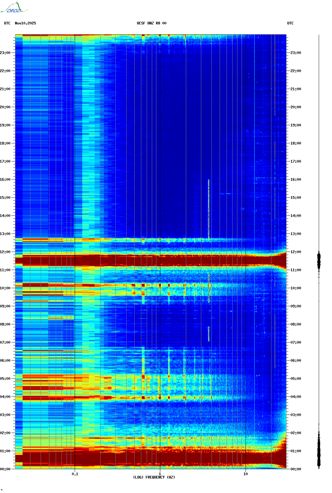 Spectrogrammes du Réseau Sismologique Auvergne-Charentes