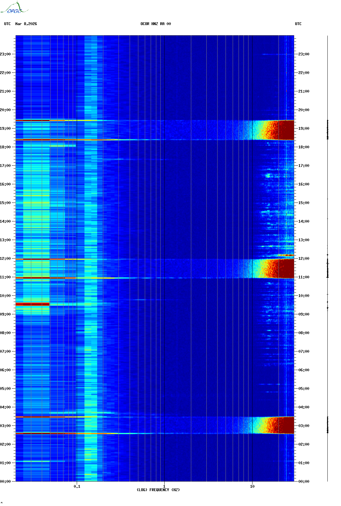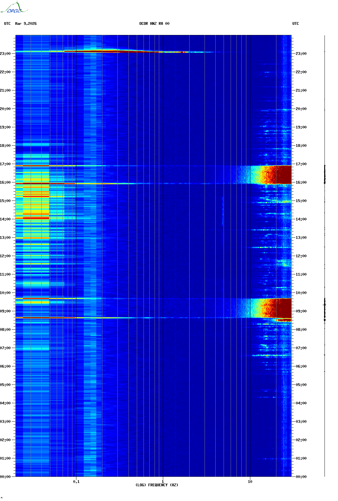 Spectrogrammes du Réseau Sismologique Auvergne-Charentes