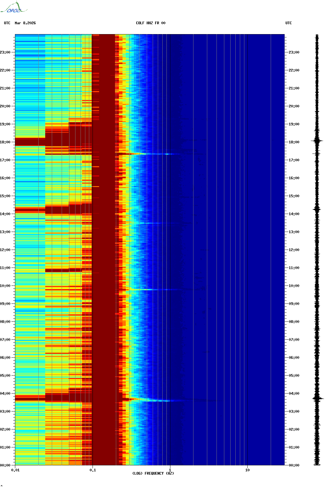 Spectrogrammes du Réseau Sismologique Auvergne-Charentes