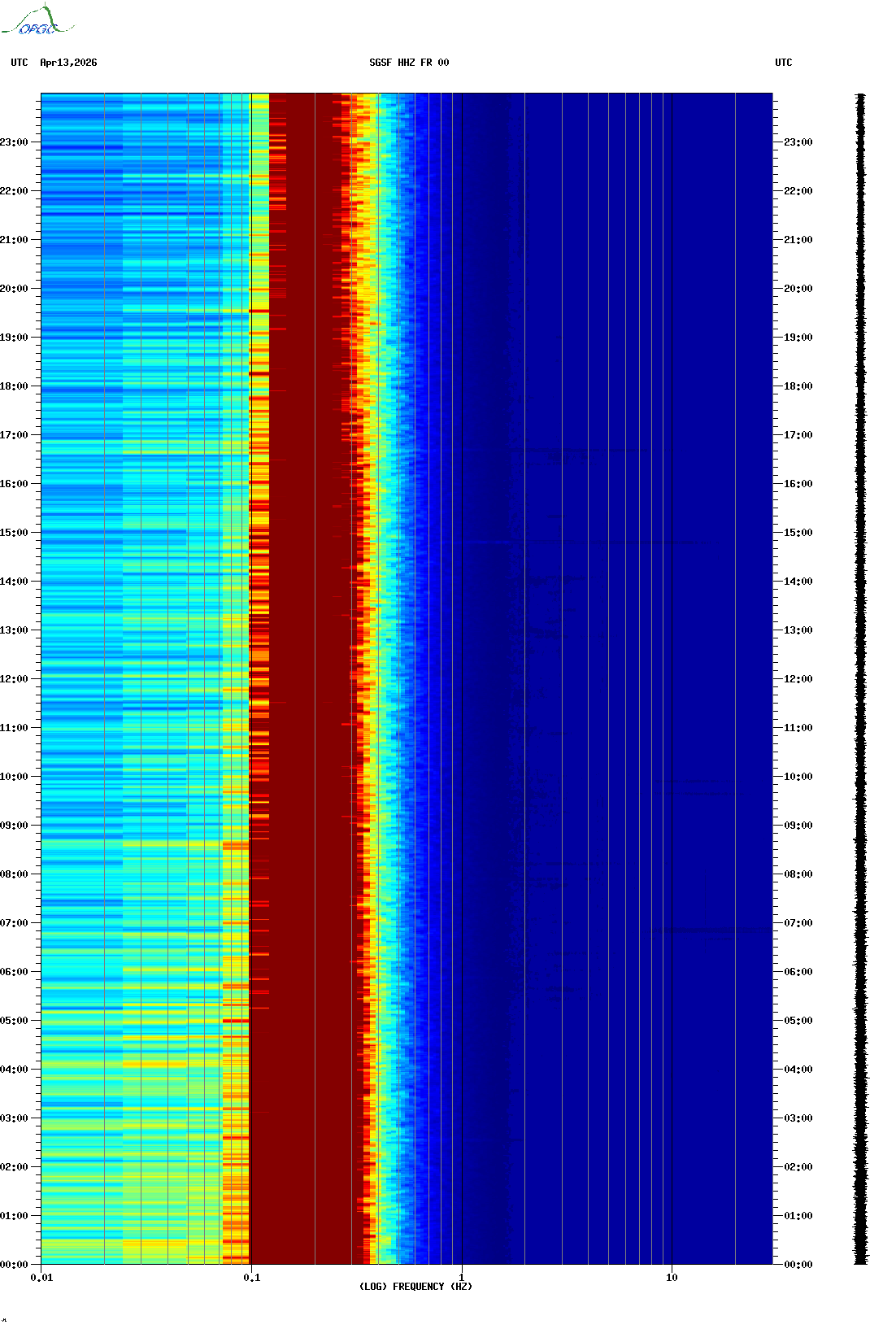 Spectrogrammes du Réseau Sismologique Auvergne-Charentes