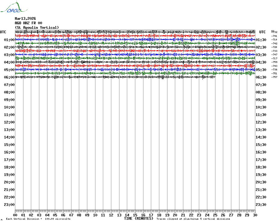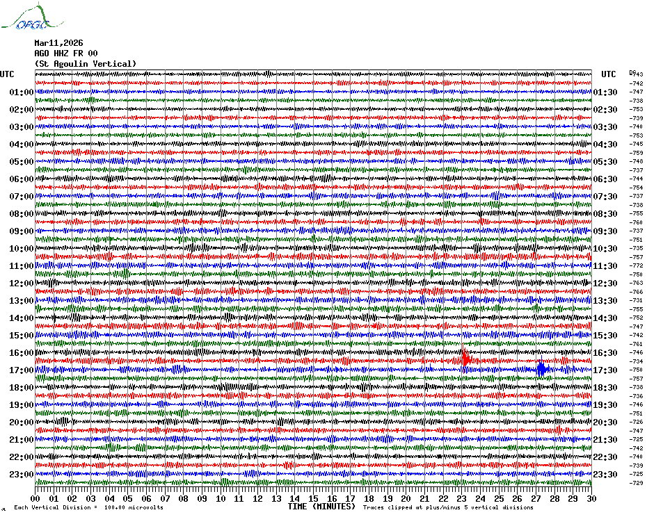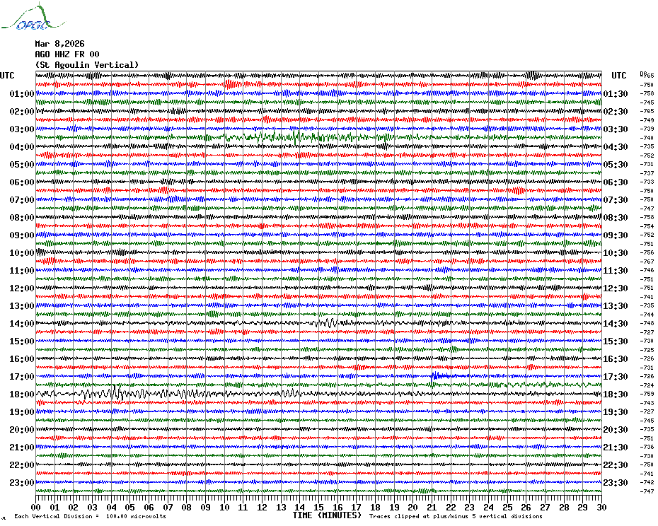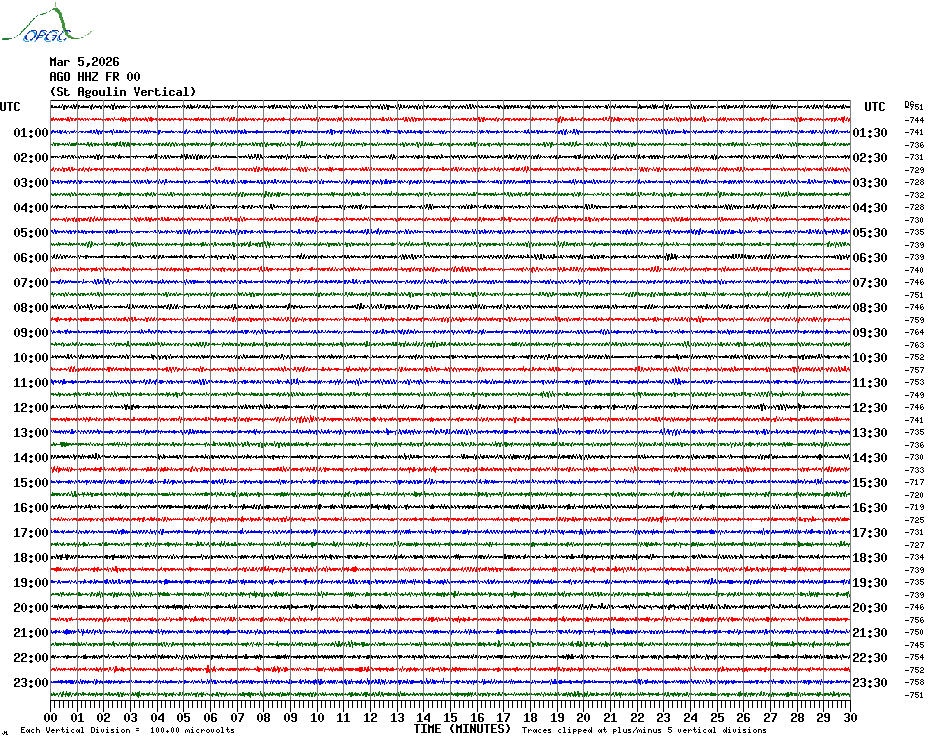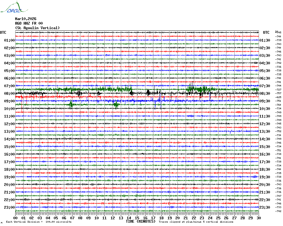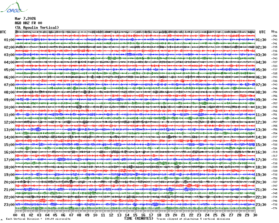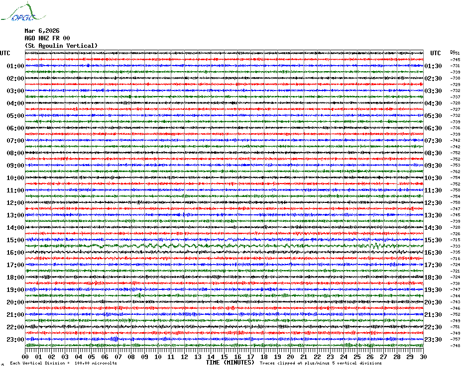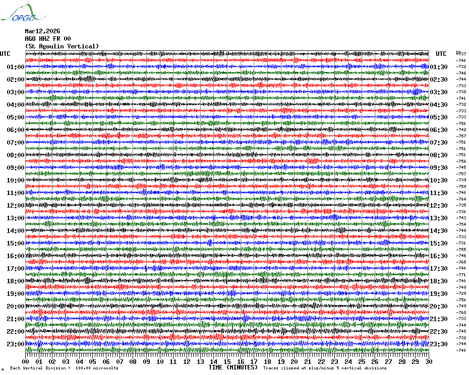 Sismogrammes du Réseau Sismologique Auvergne par fenêtre de 24h