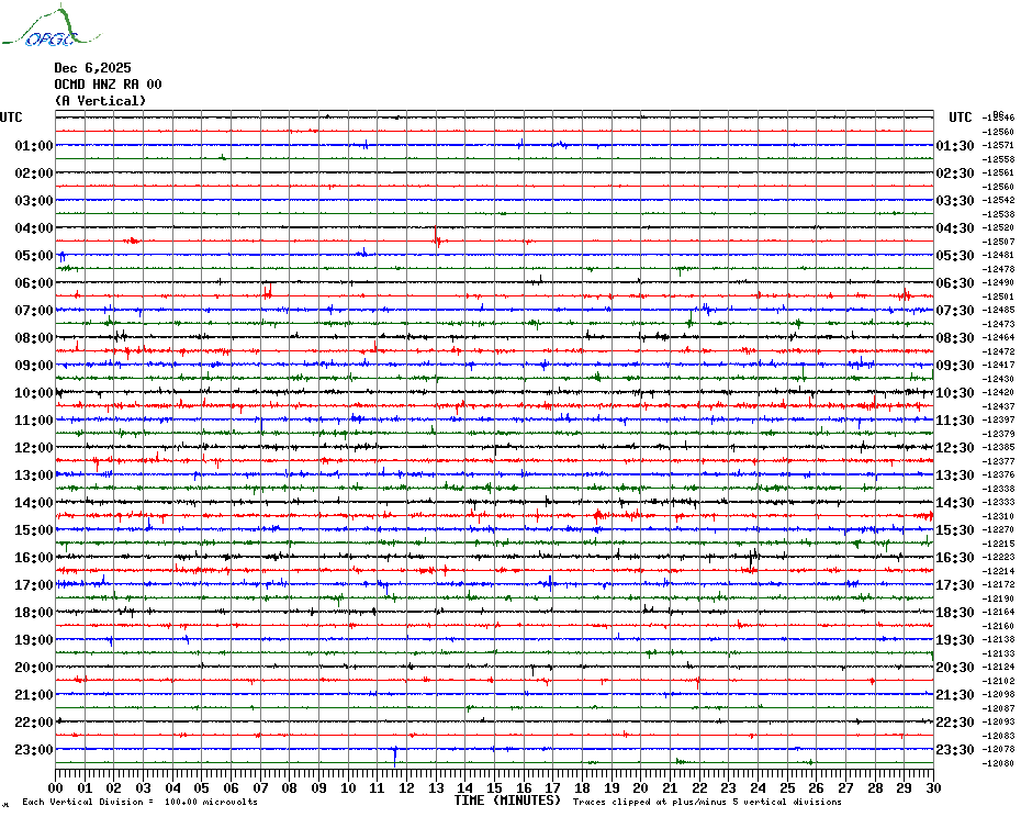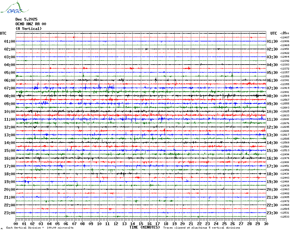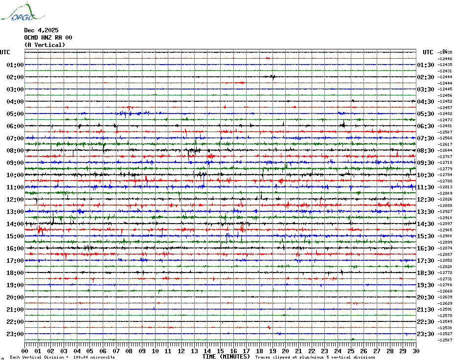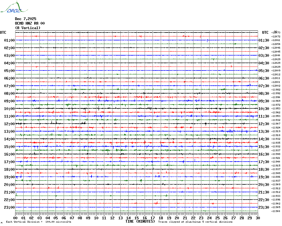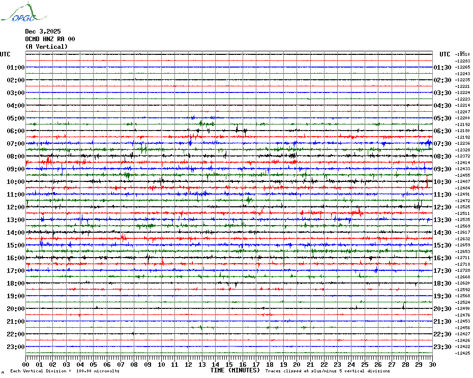 Sismogrammes du Réseau Sismologique Auvergne par fenêtre de 24h