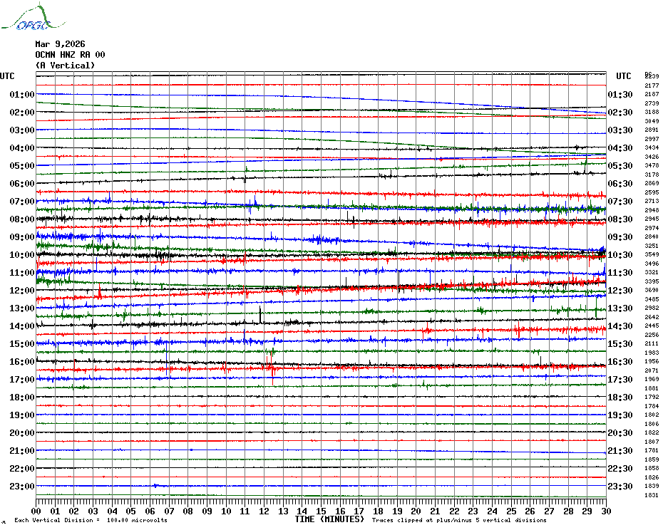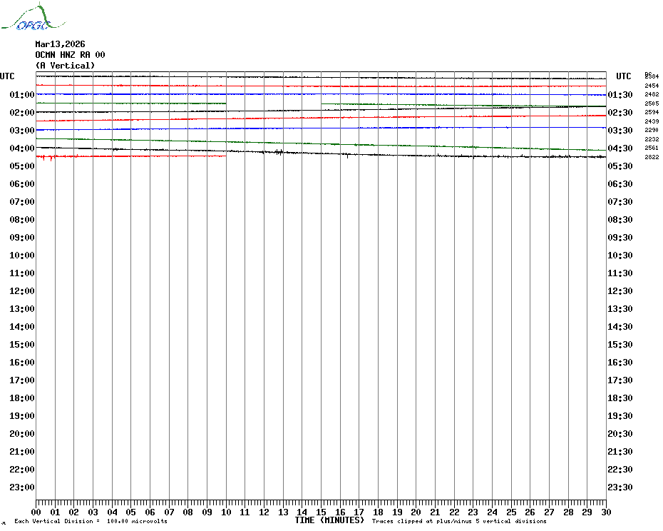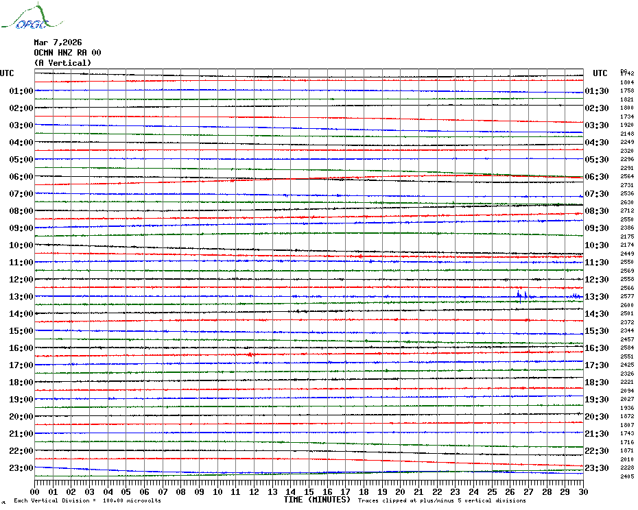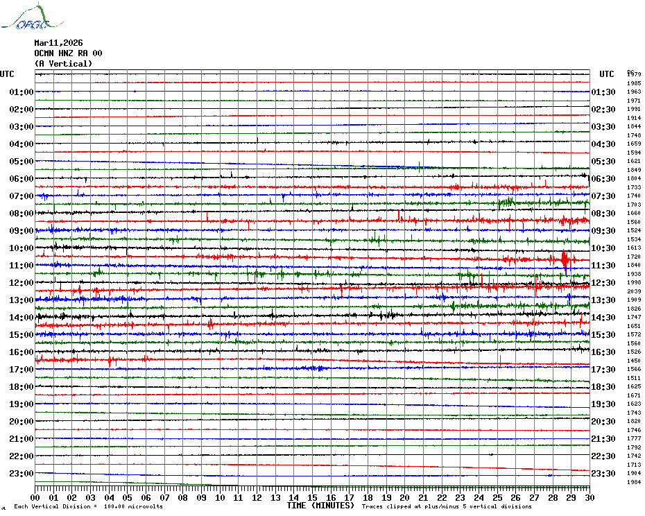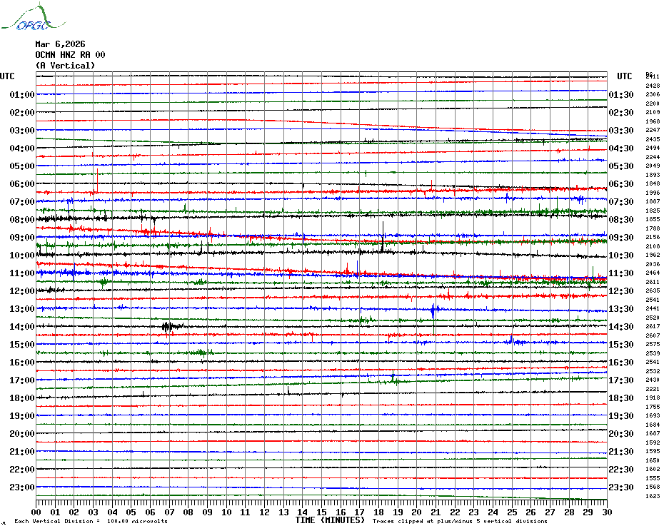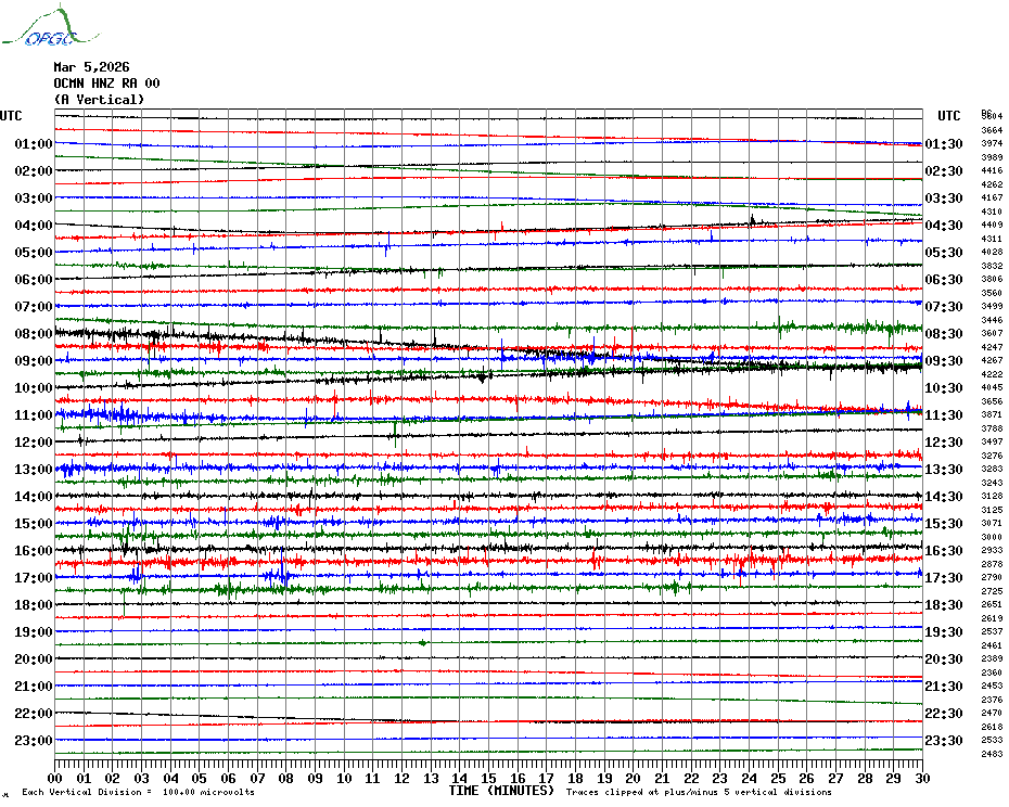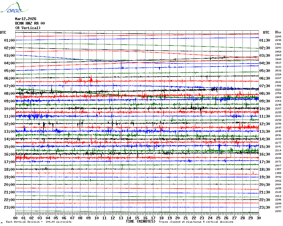 Sismogrammes du Réseau Sismologique Auvergne par fenêtre de 24h