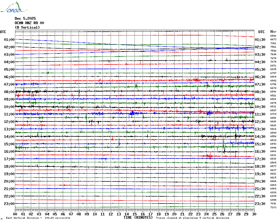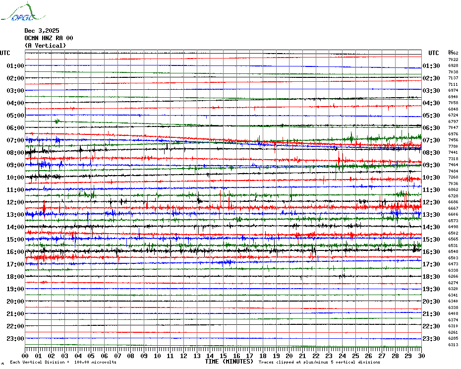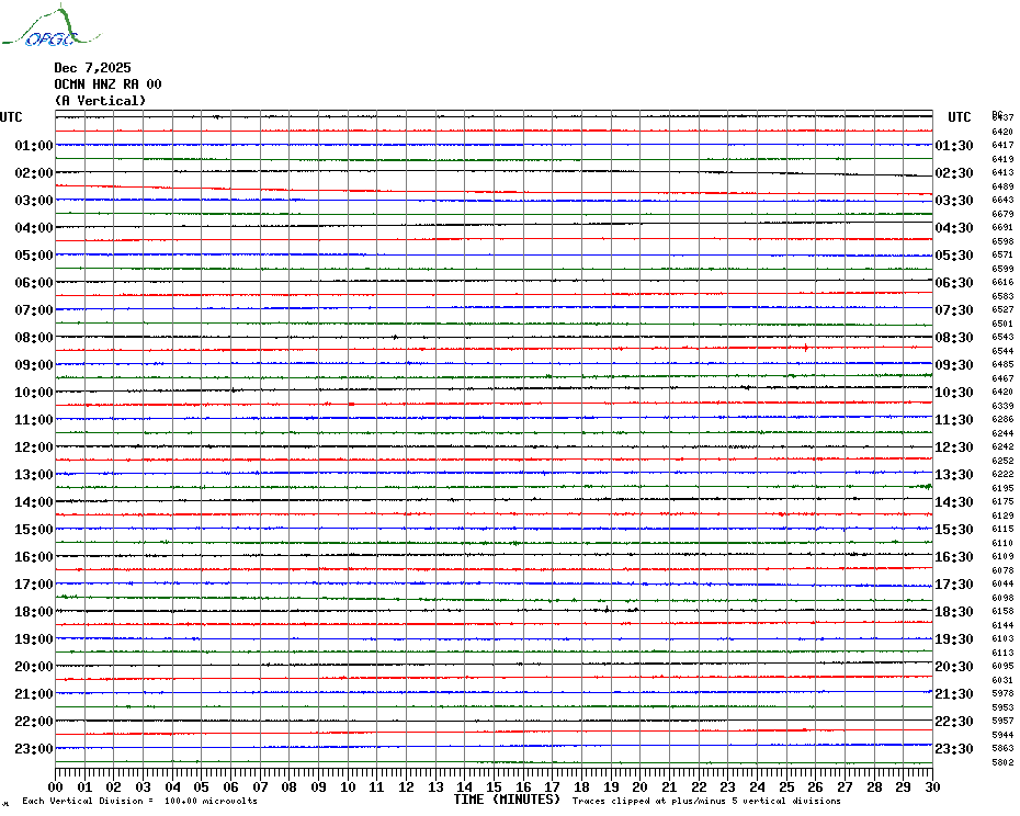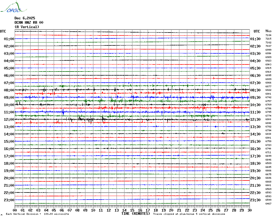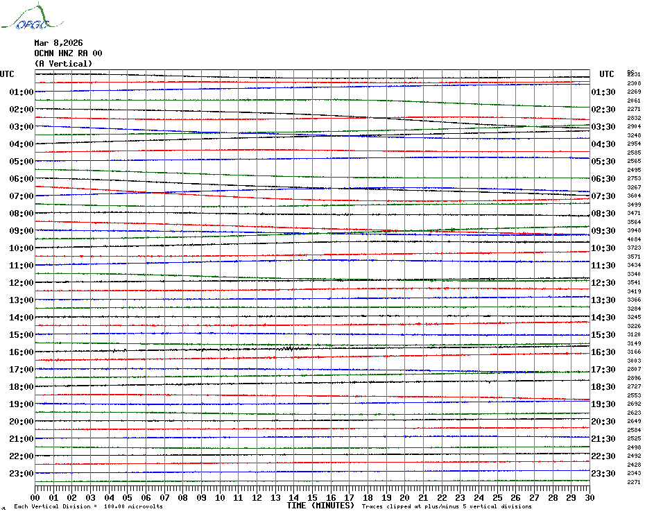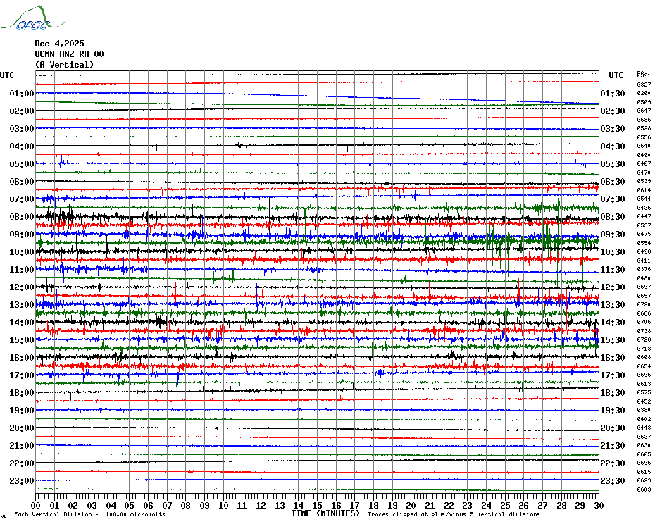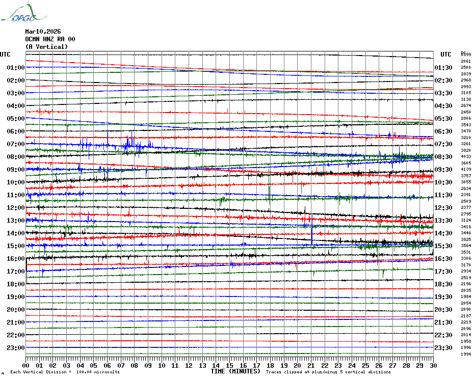 Sismogrammes du Réseau Sismologique Auvergne par fenêtre de 24h