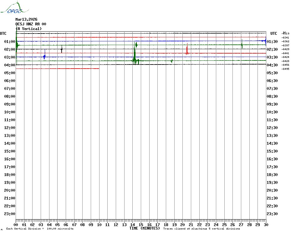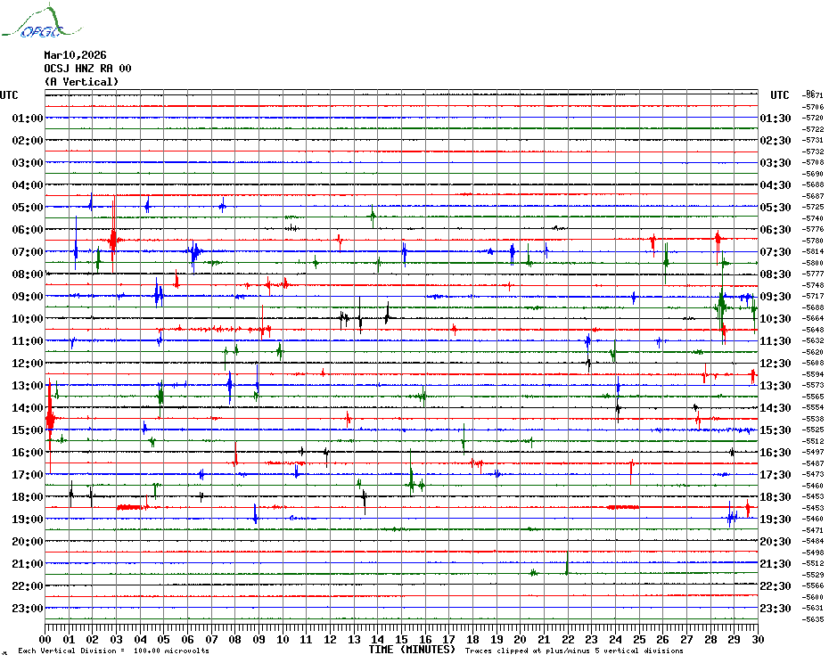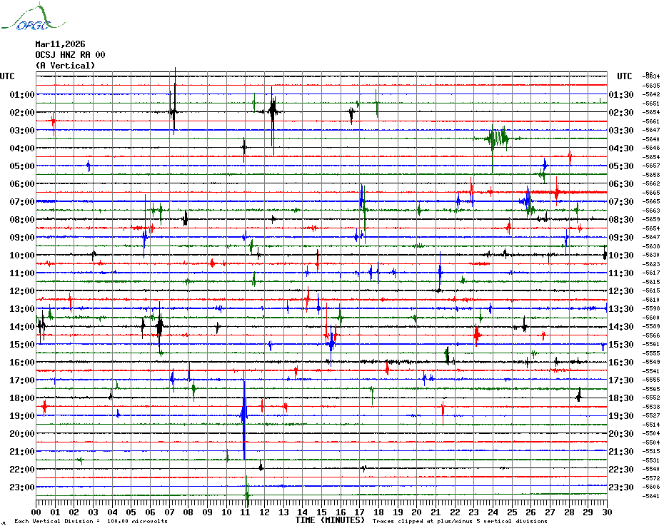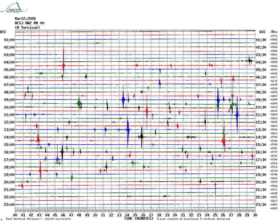Sismogrammes du Réseau Sismologique Auvergne par fenêtre de 24h