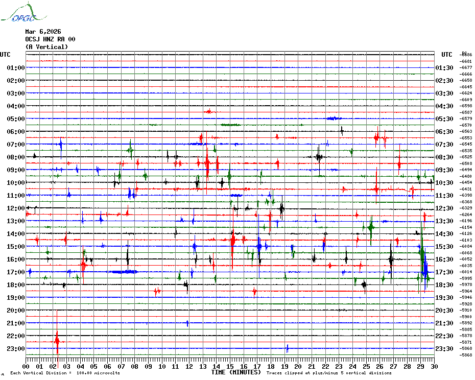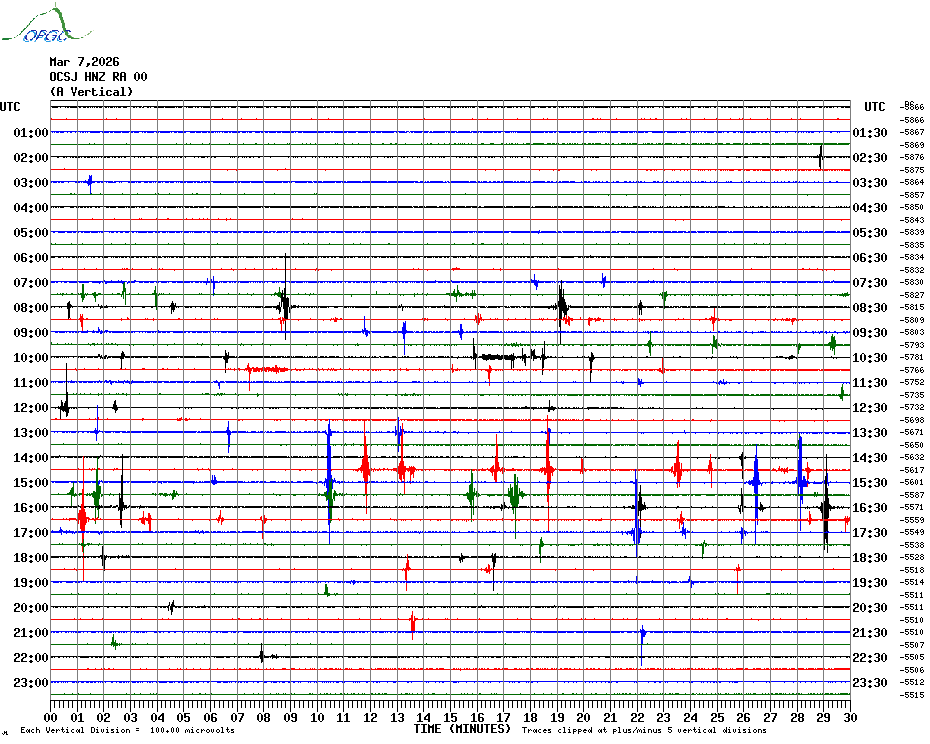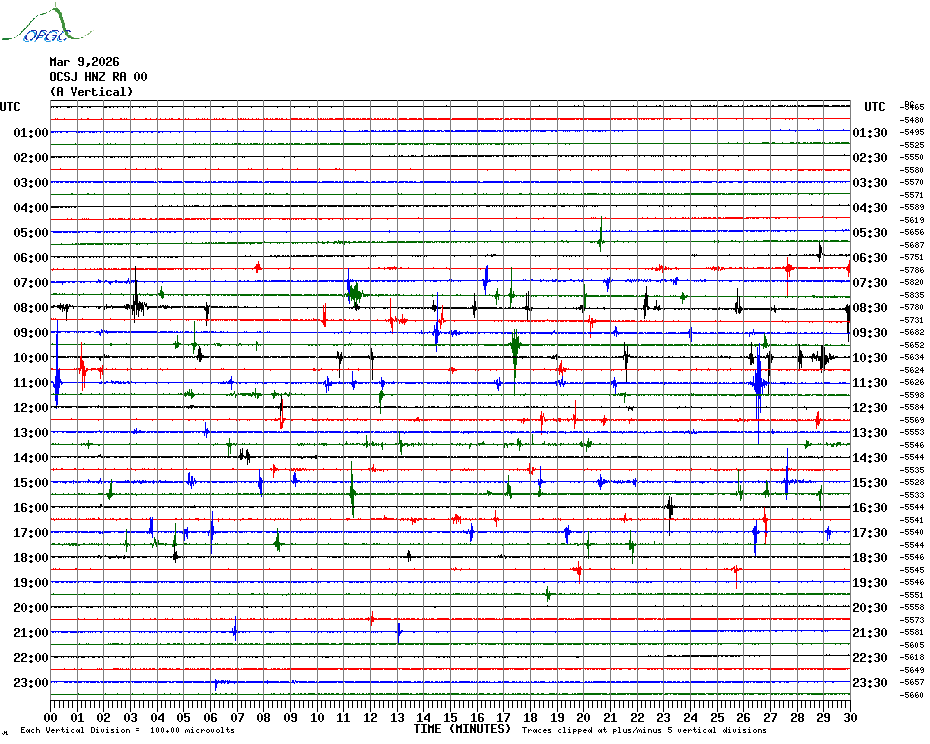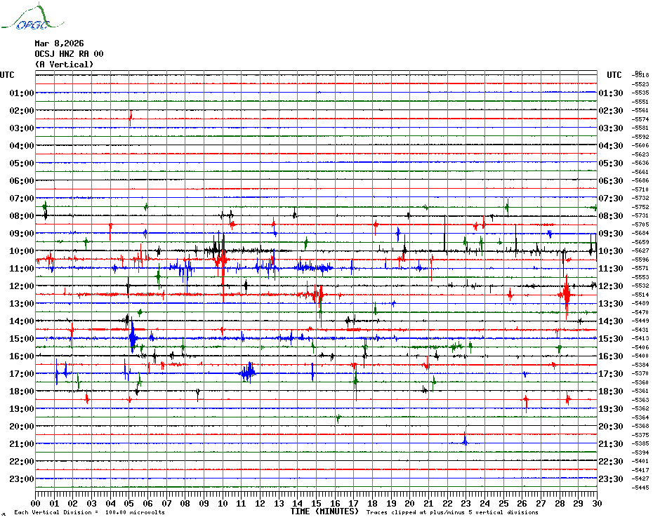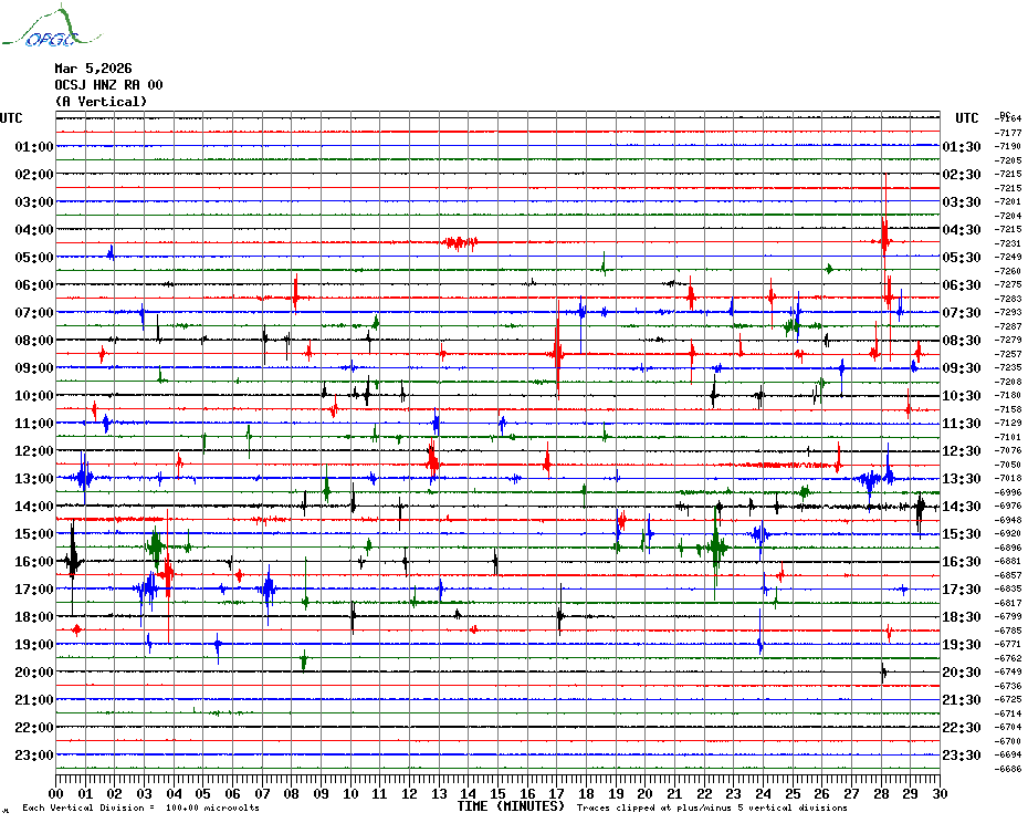 Sismogrammes du Réseau Sismologique Auvergne par fenêtre de 24h