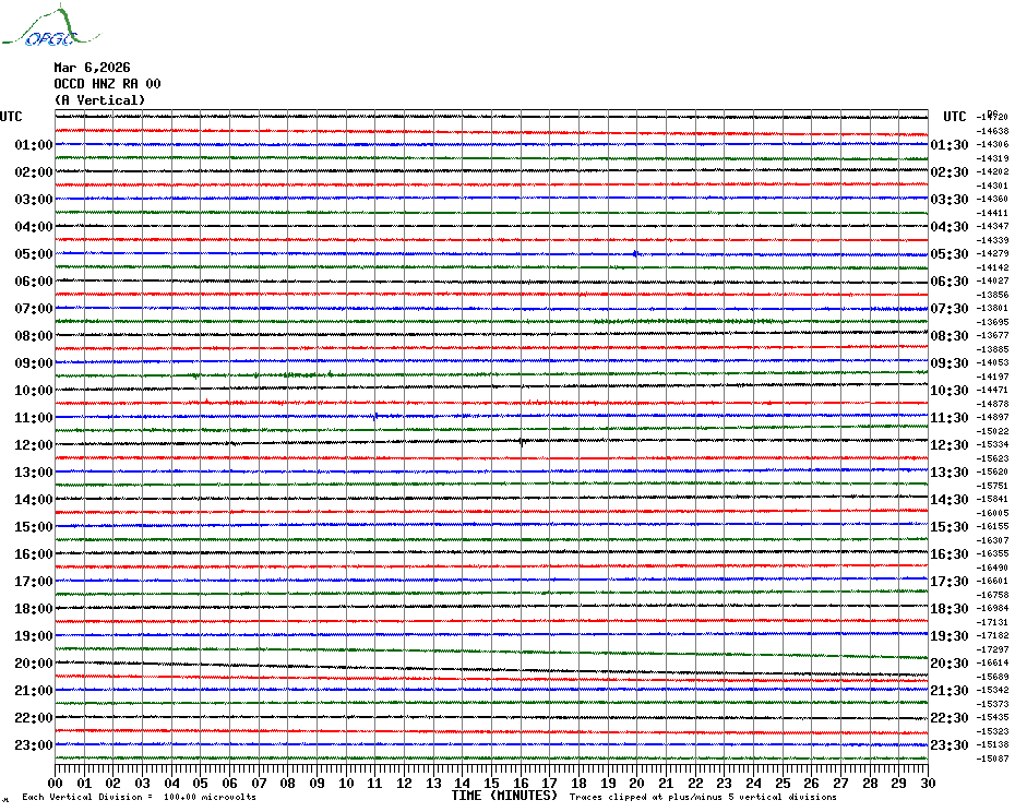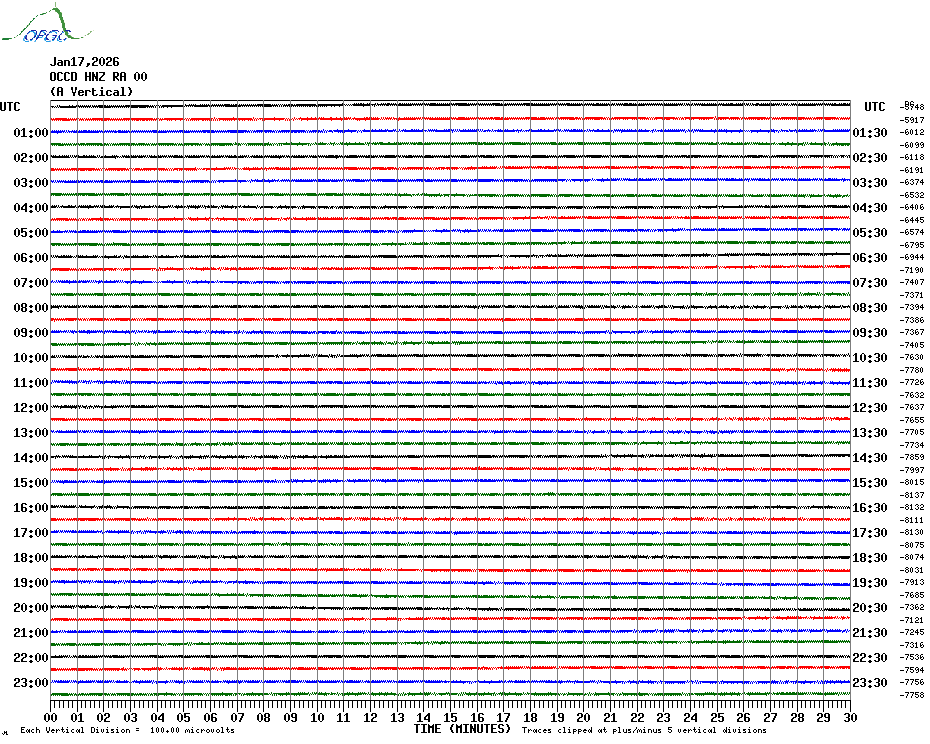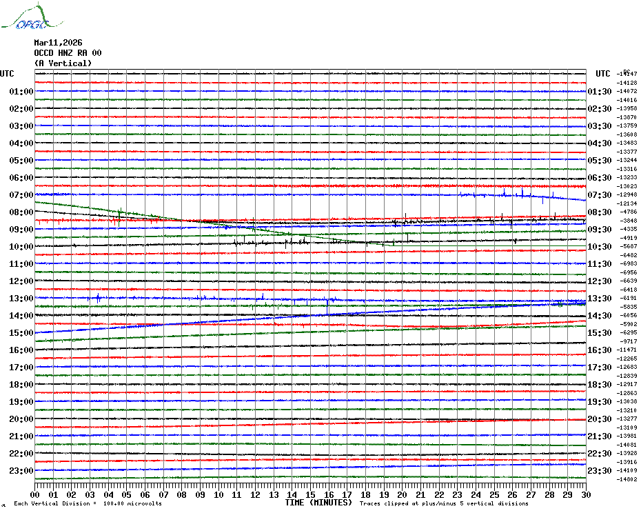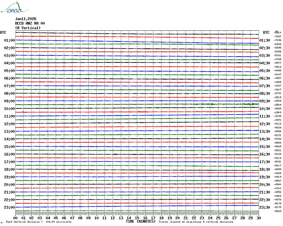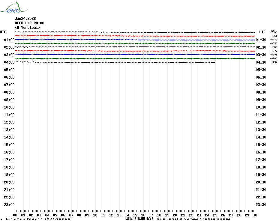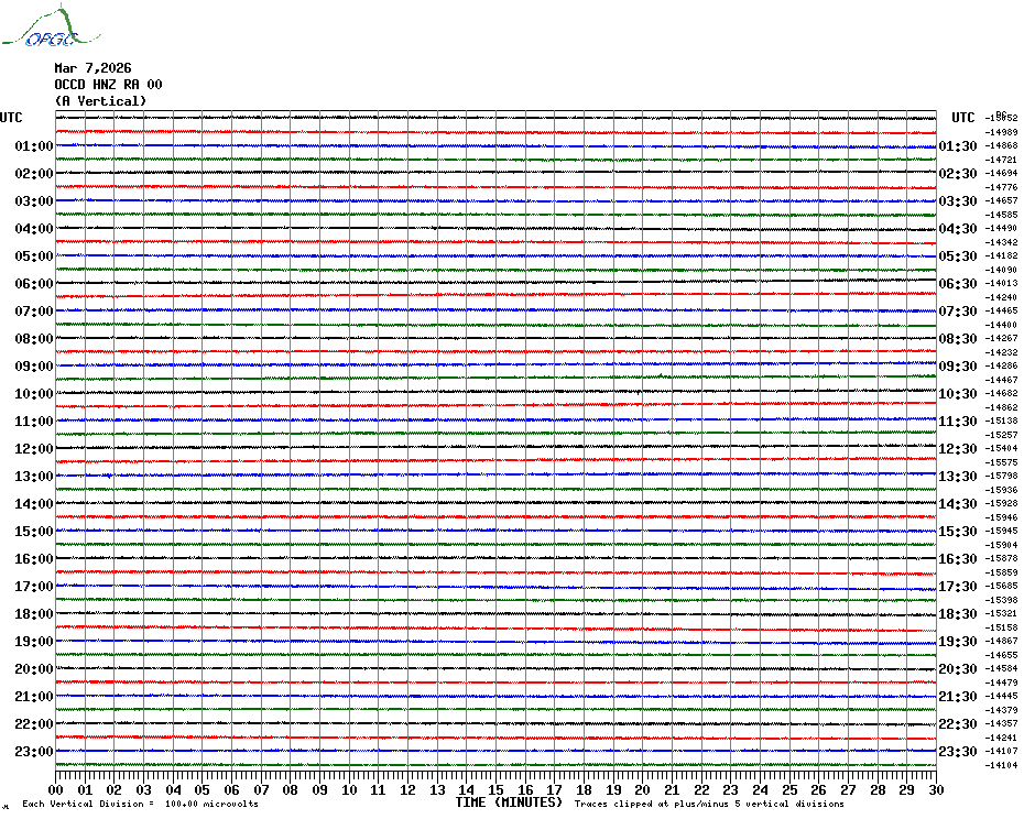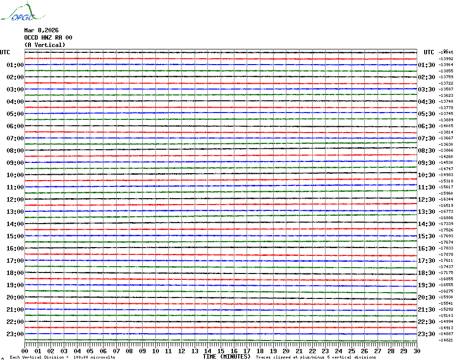 Sismogrammes du Réseau Sismologique Auvergne par fenêtre de 24h