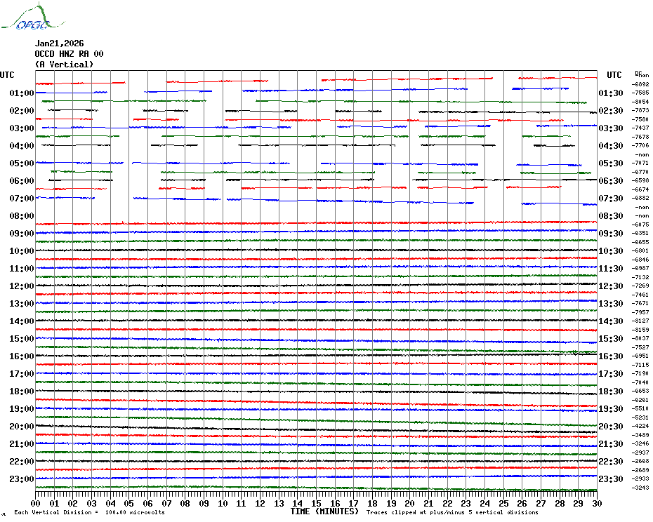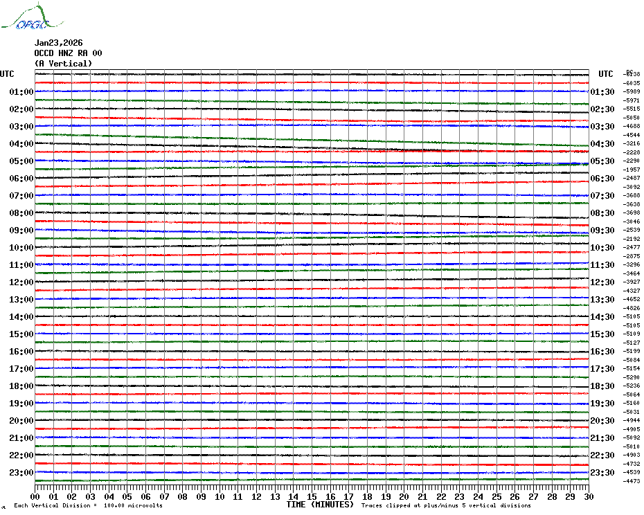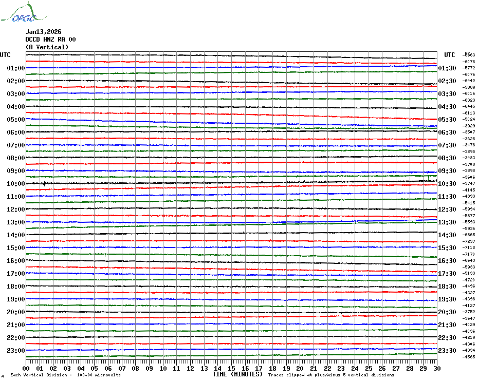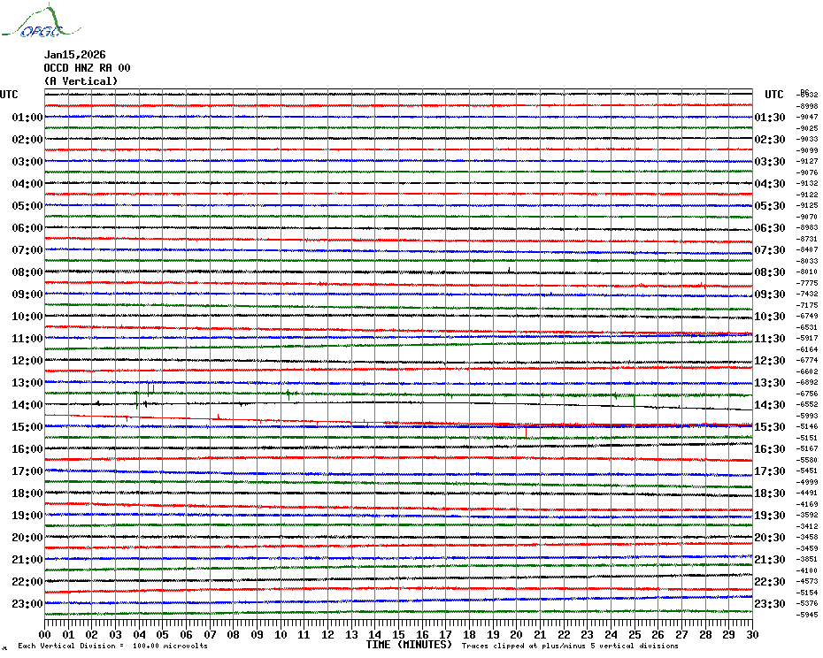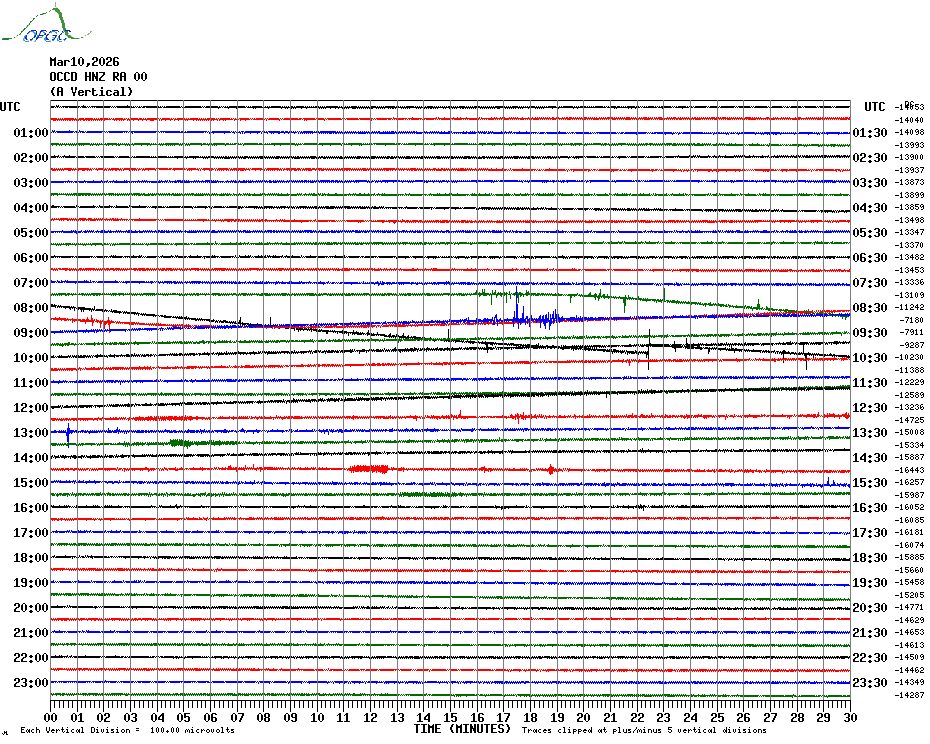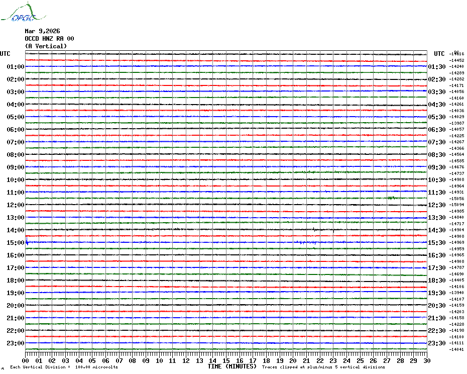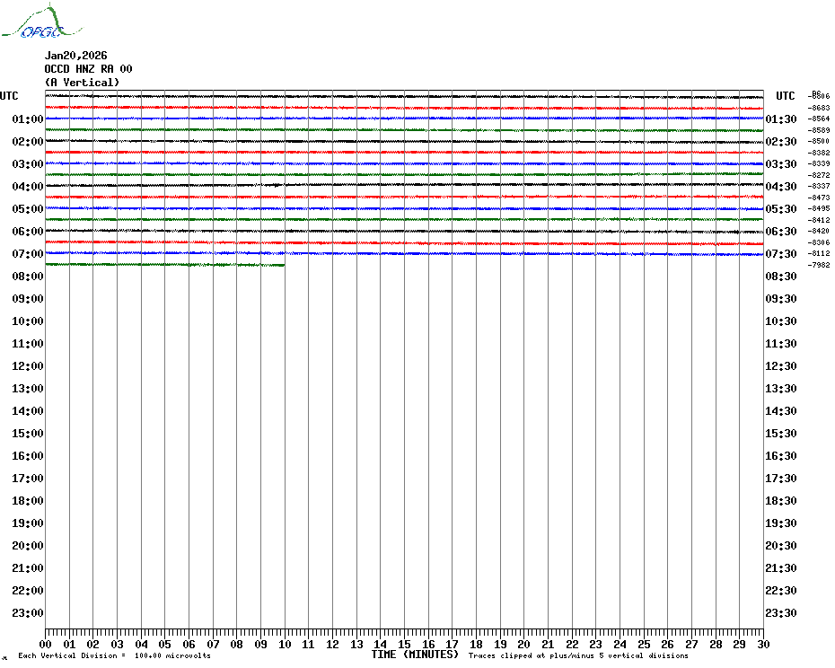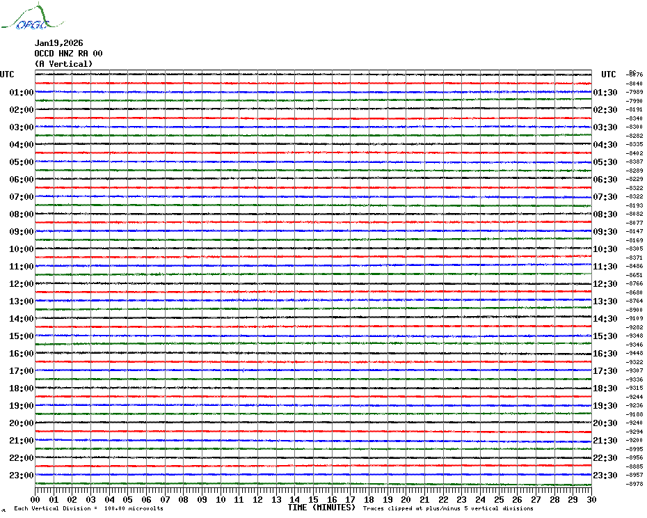 Sismogrammes du Réseau Sismologique Auvergne par fenêtre de 24h