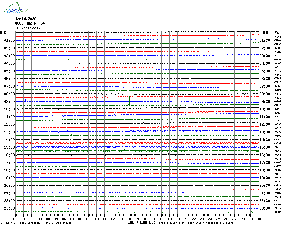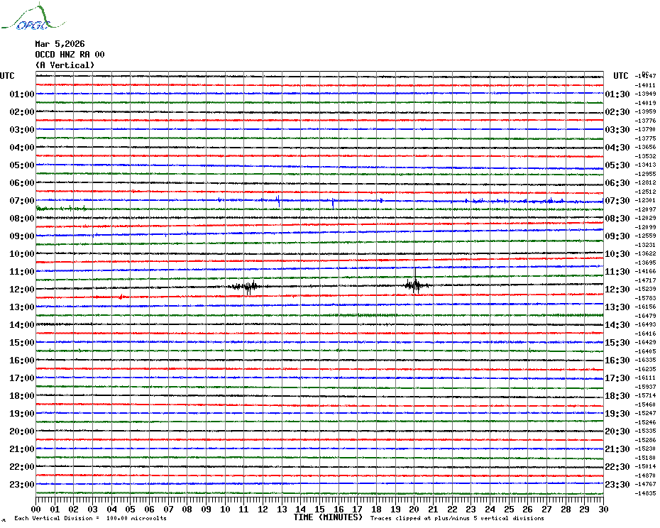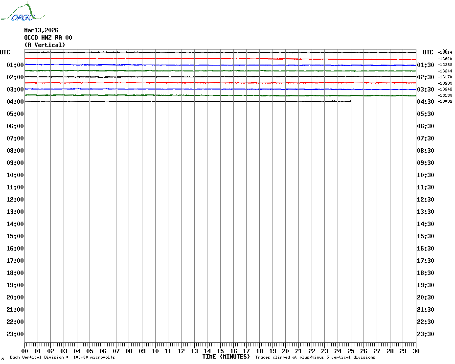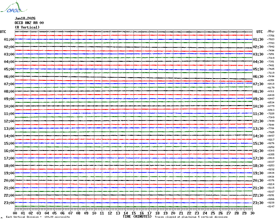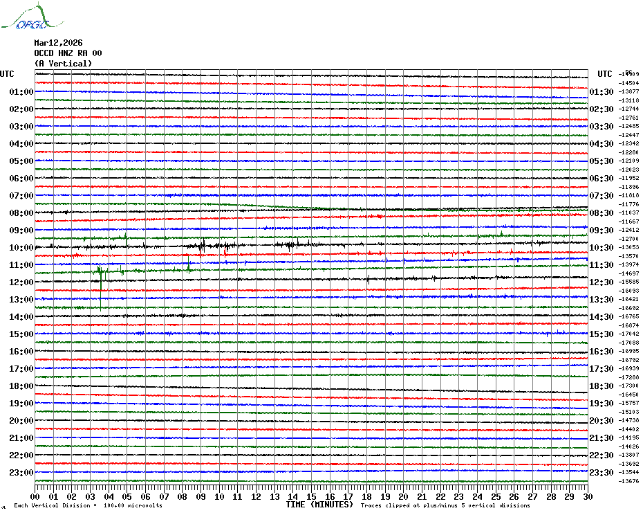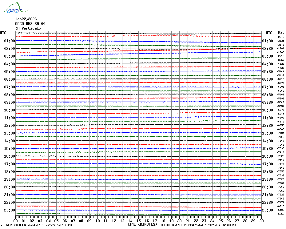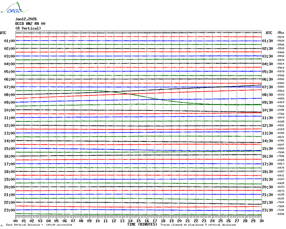 Sismogrammes du Réseau Sismologique Auvergne par fenêtre de 24h