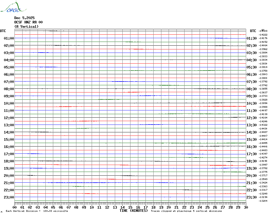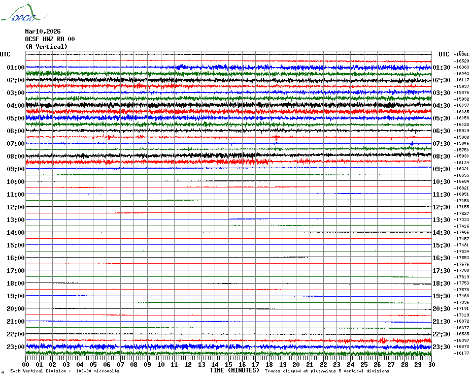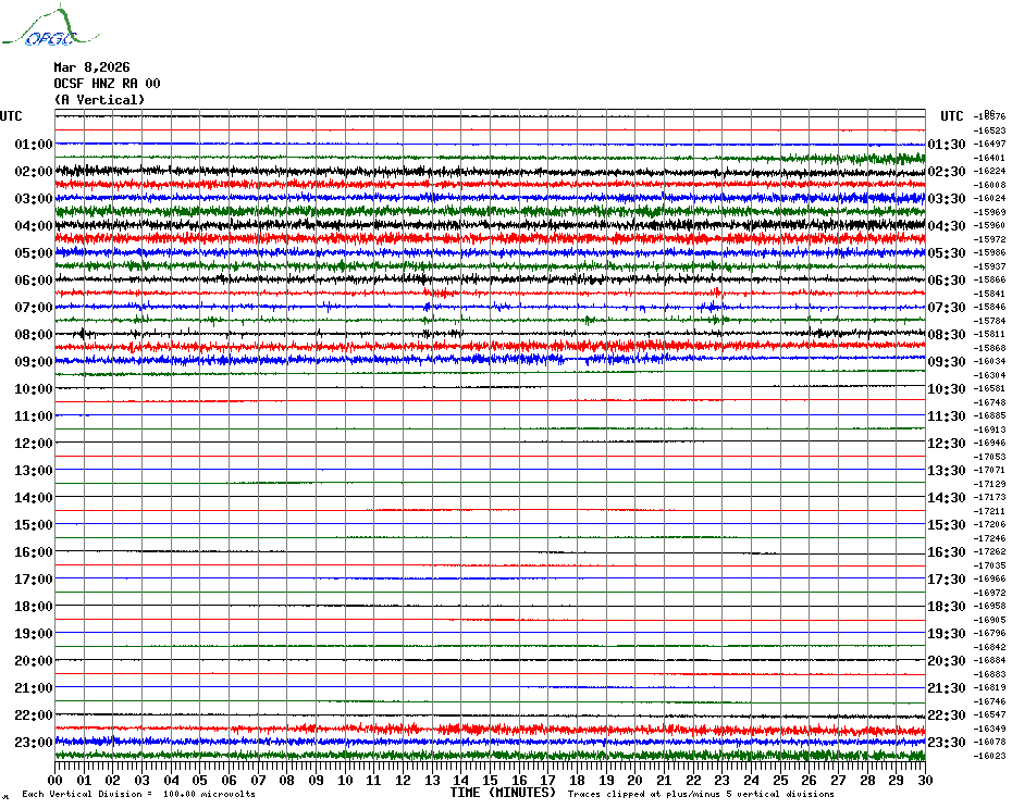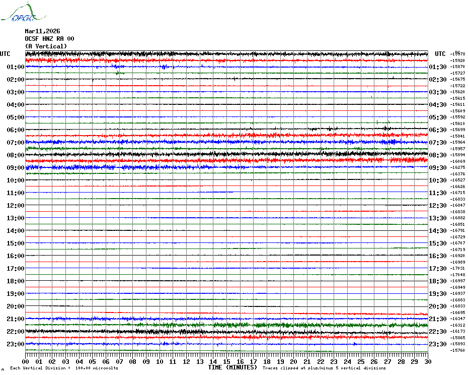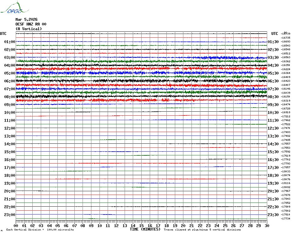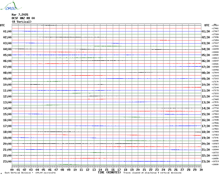 Sismogrammes du Réseau Sismologique Auvergne par fenêtre de 24h