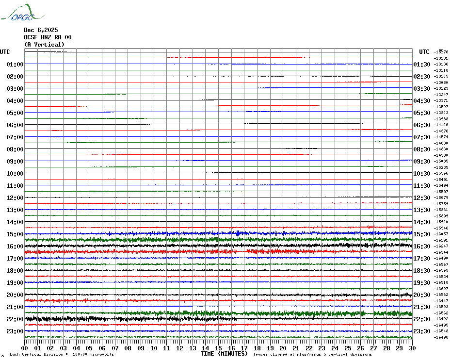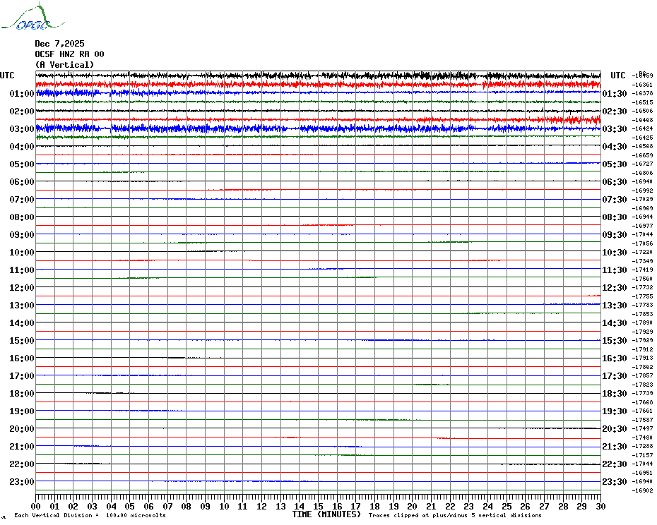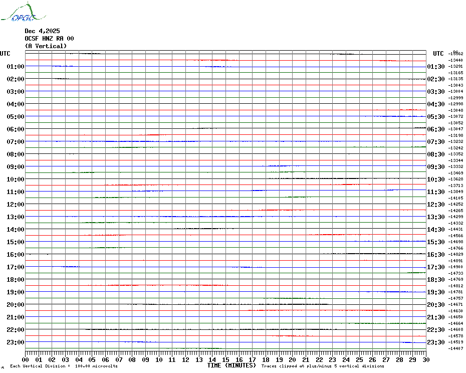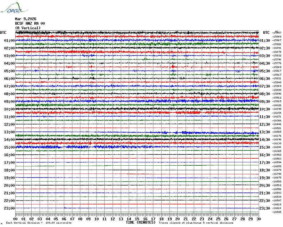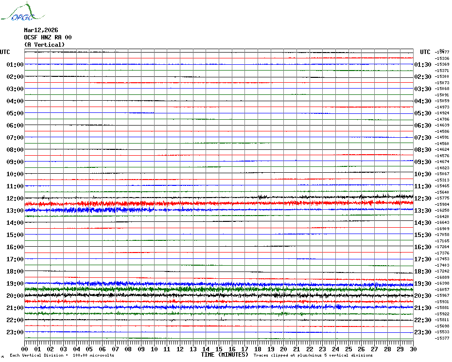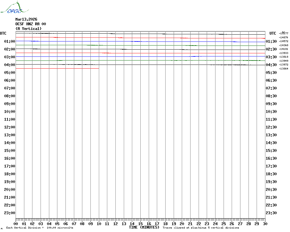 Sismogrammes du Réseau Sismologique Auvergne par fenêtre de 24h