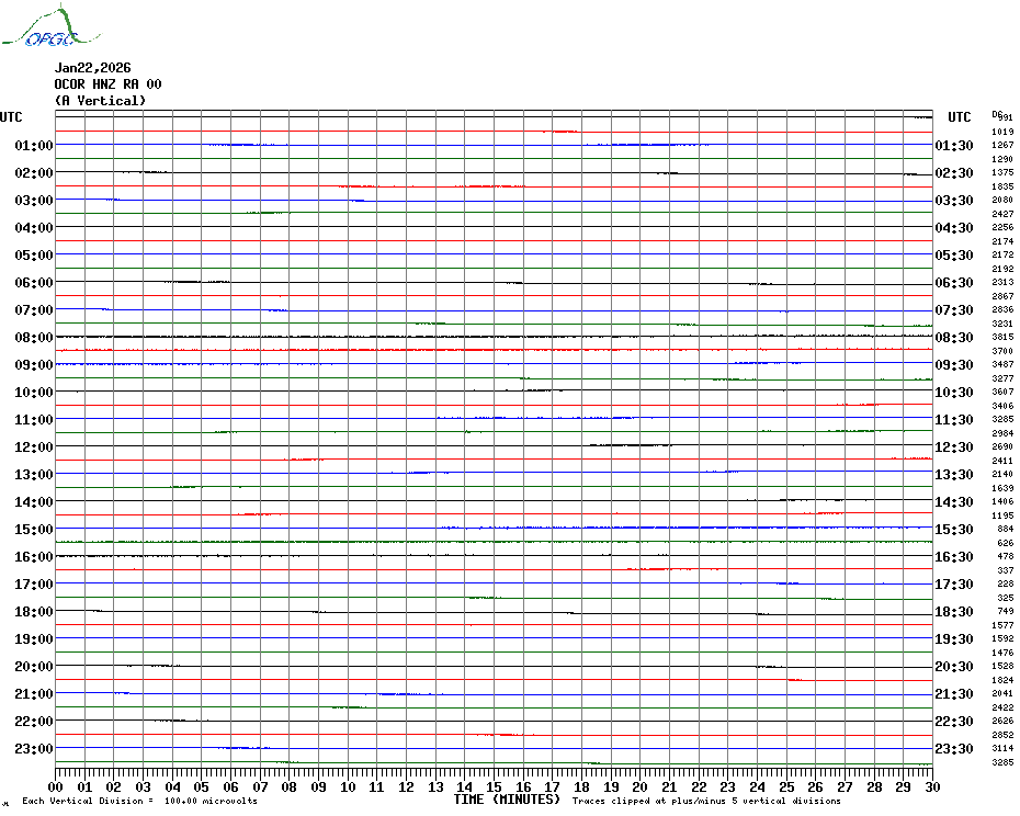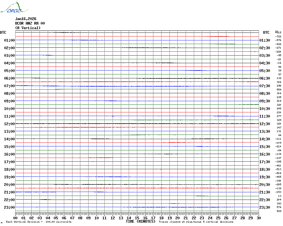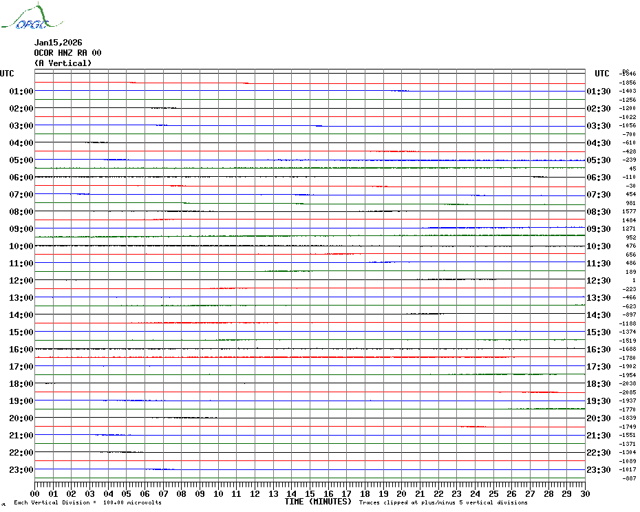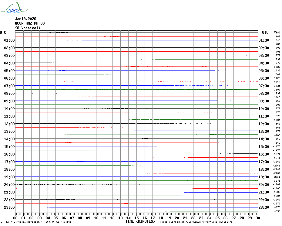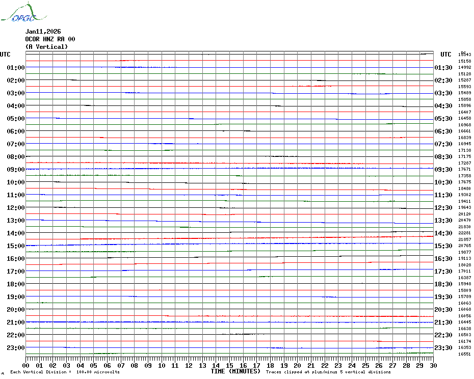 Sismogrammes du Réseau Sismologique Auvergne par fenêtre de 24h