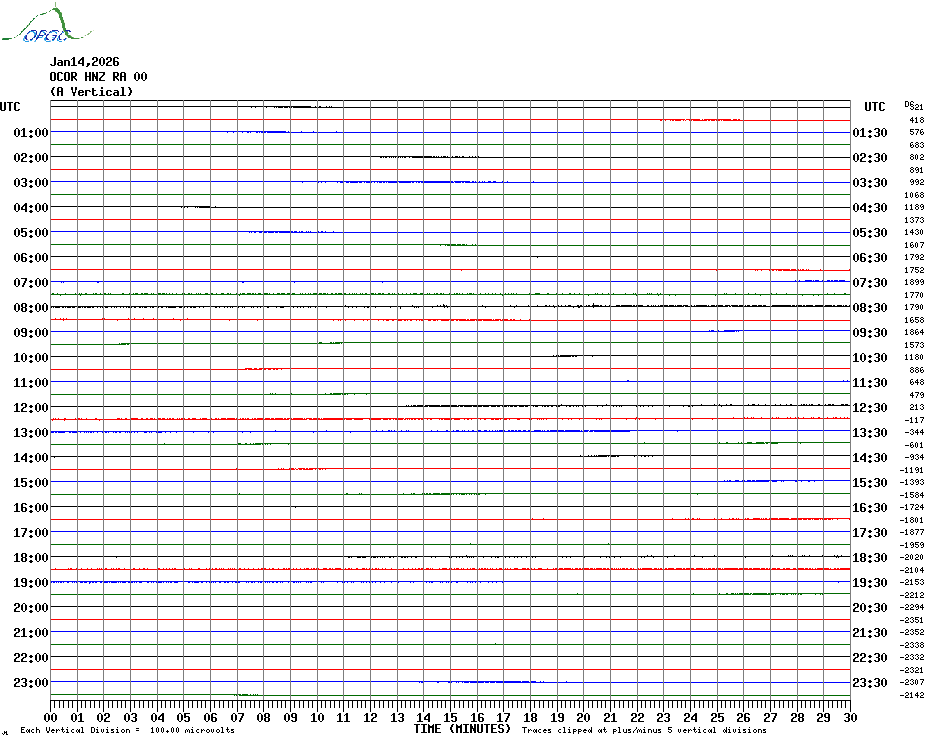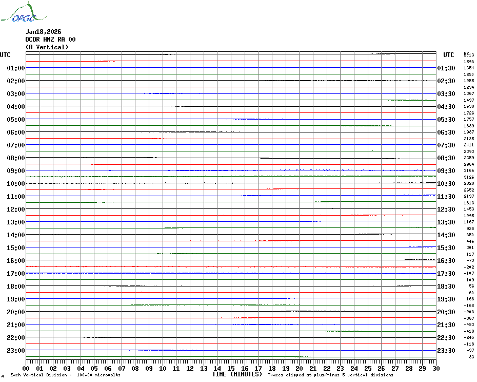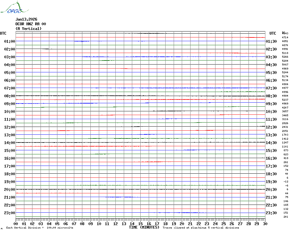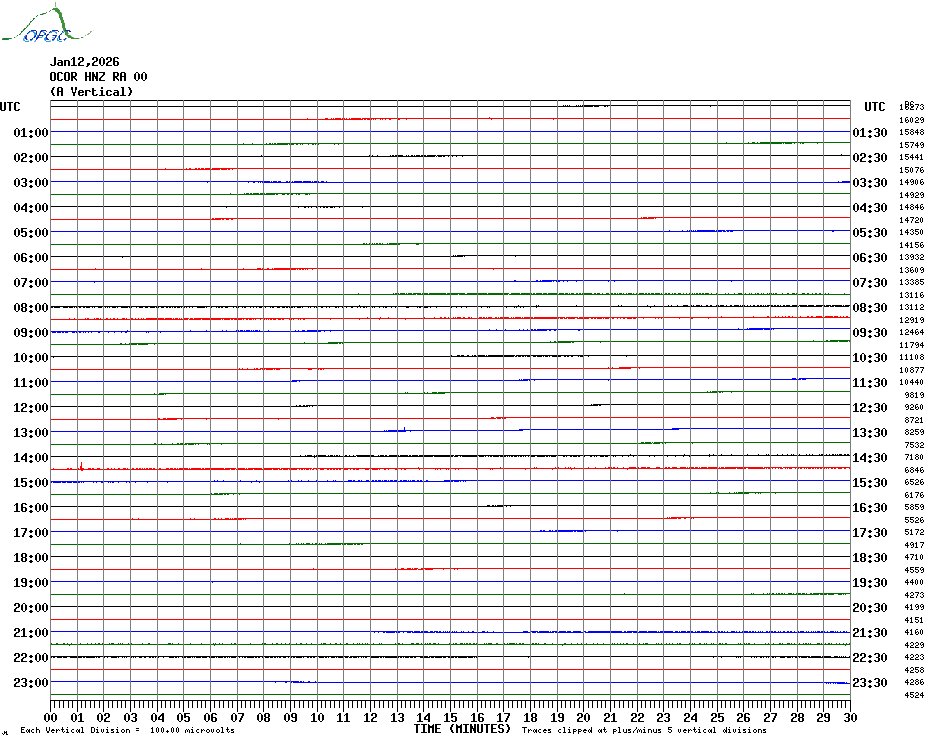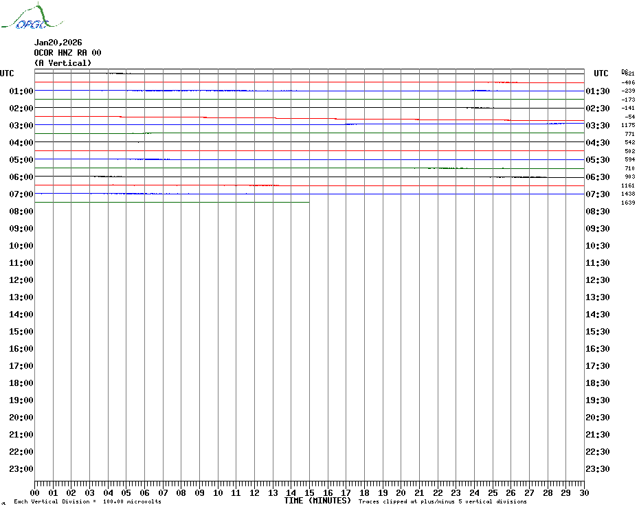 Sismogrammes du Réseau Sismologique Auvergne par fenêtre de 24h
