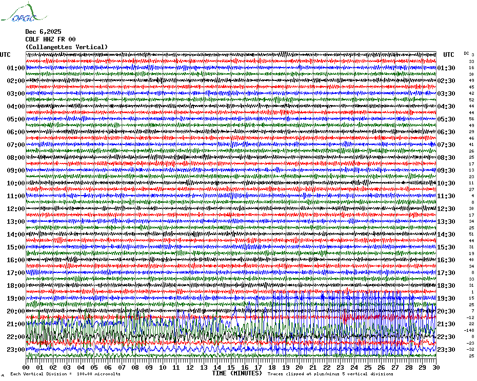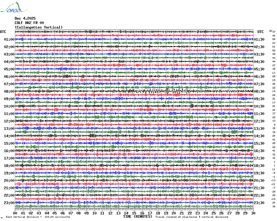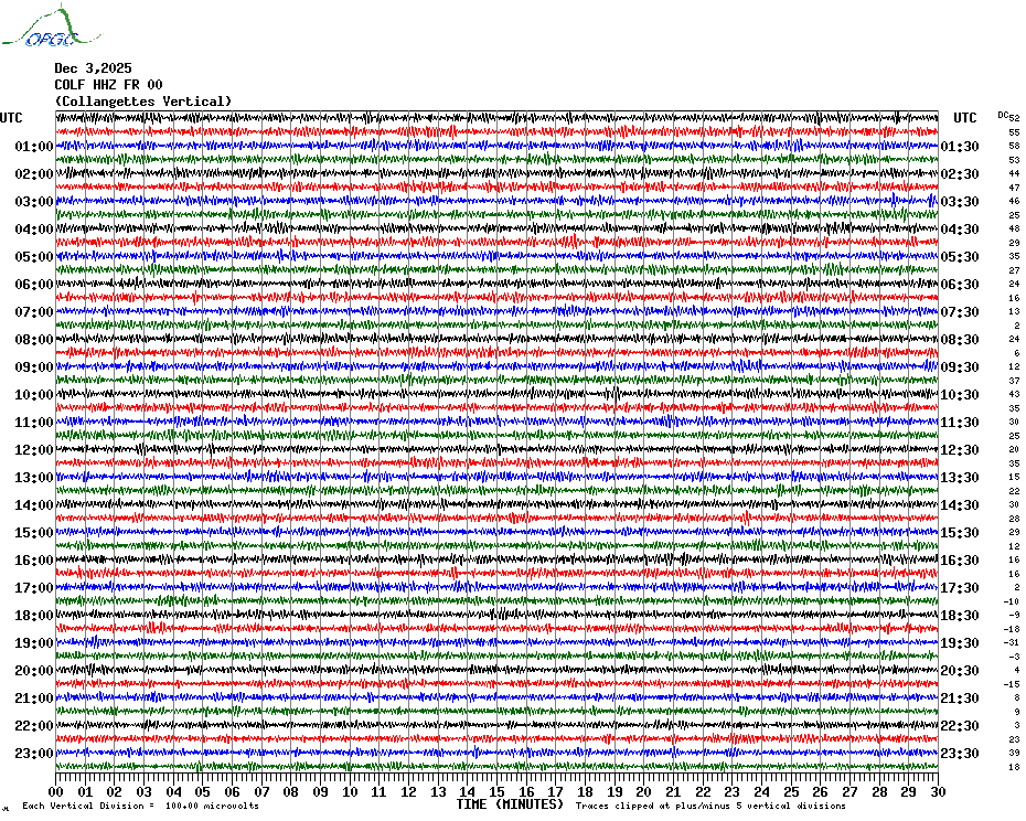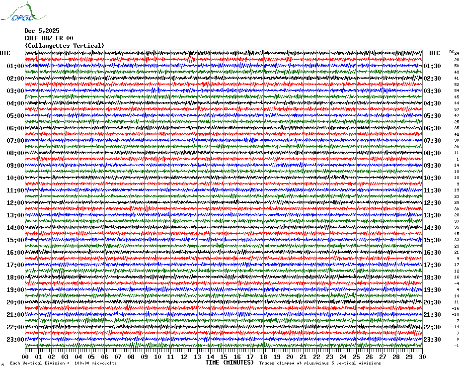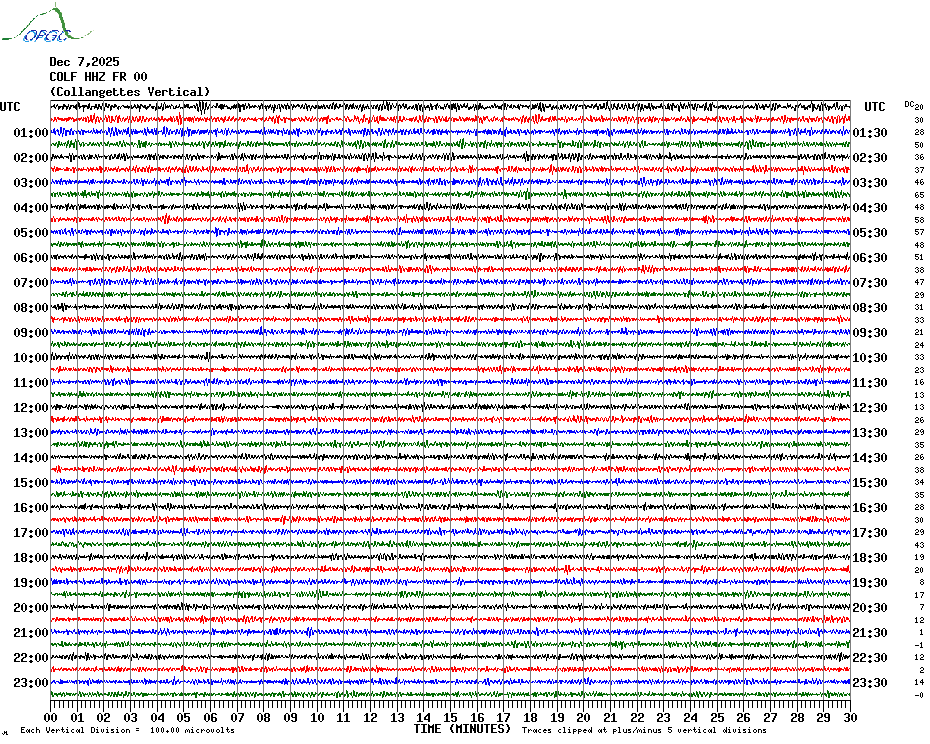 Sismogrammes du Réseau Sismologique Auvergne par fenêtre de 24h