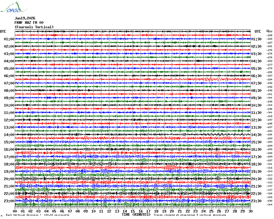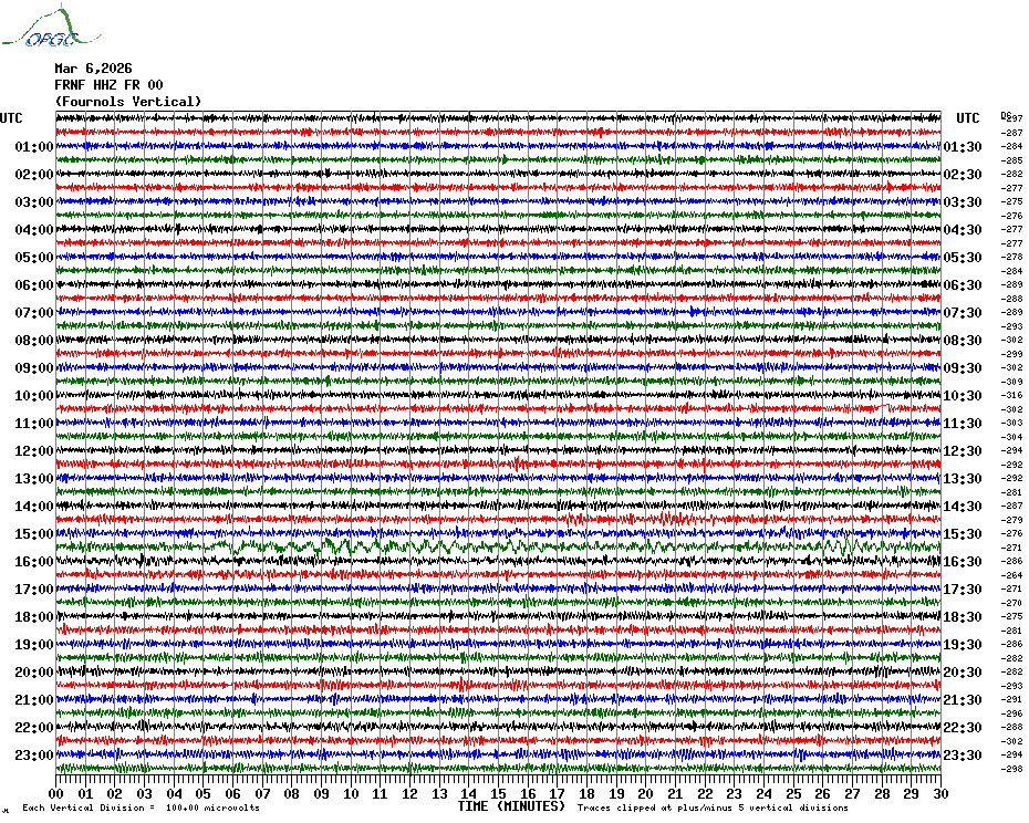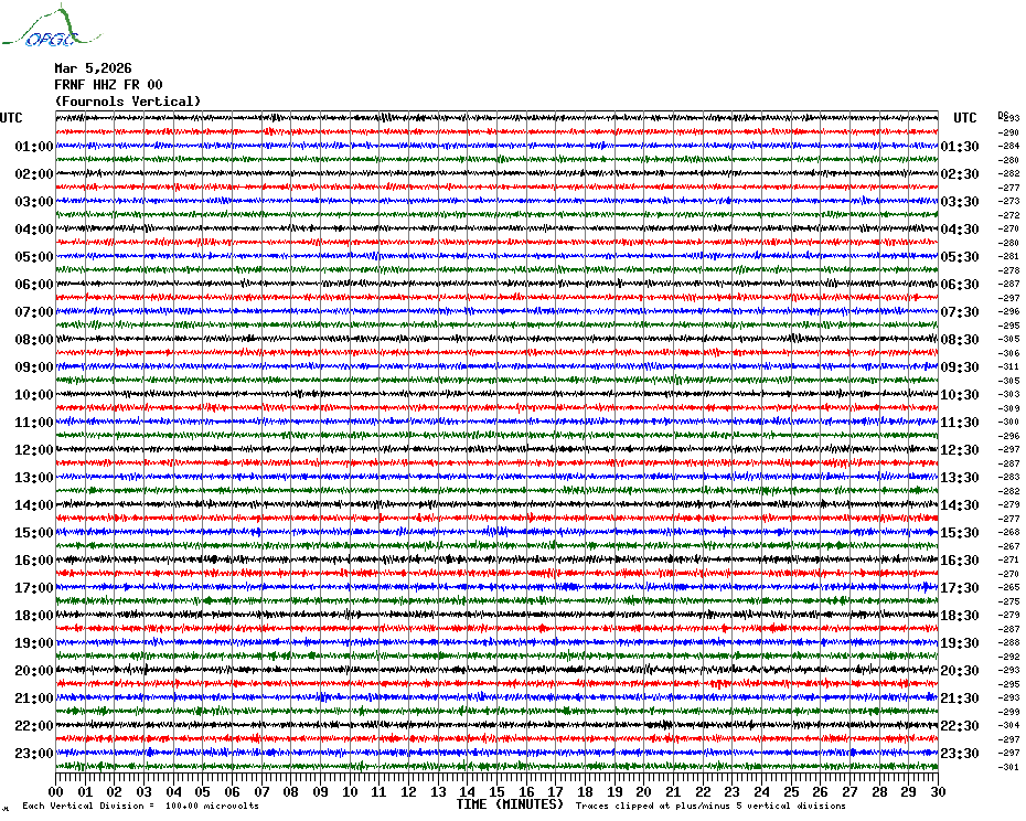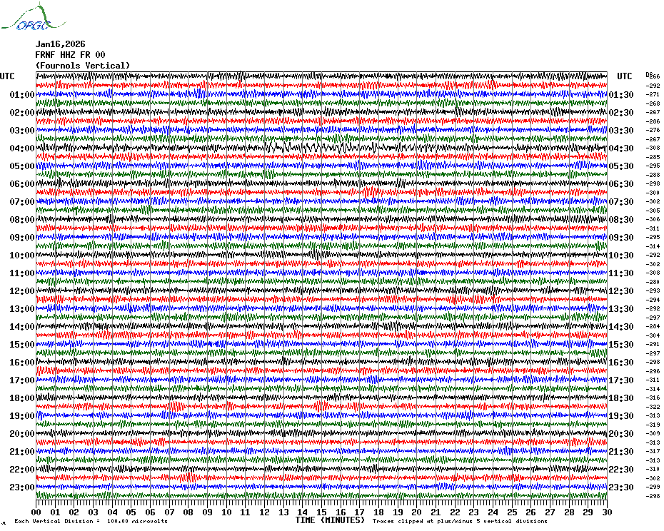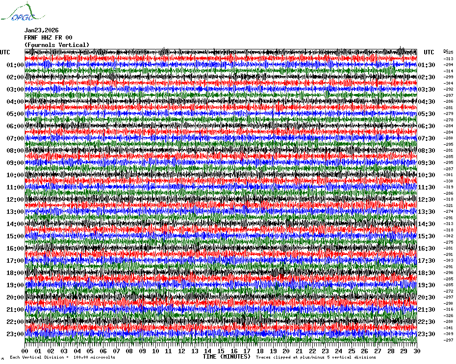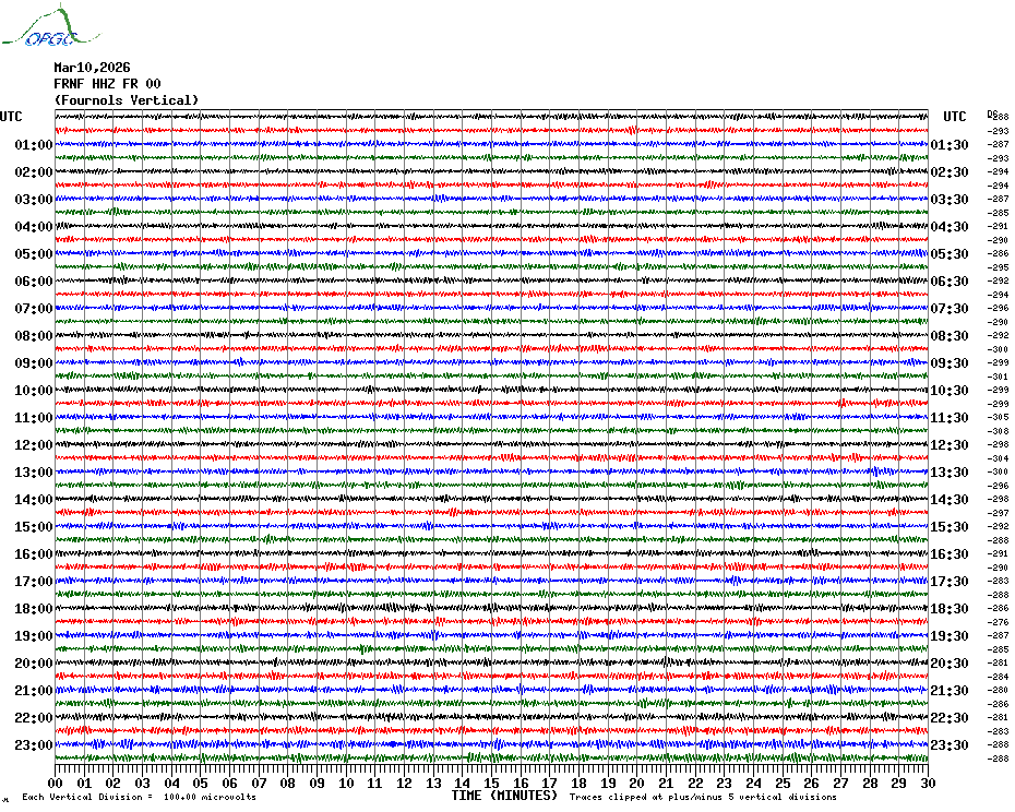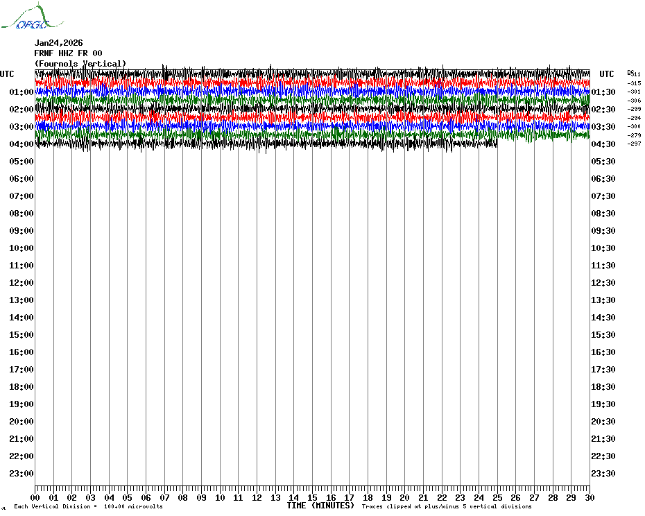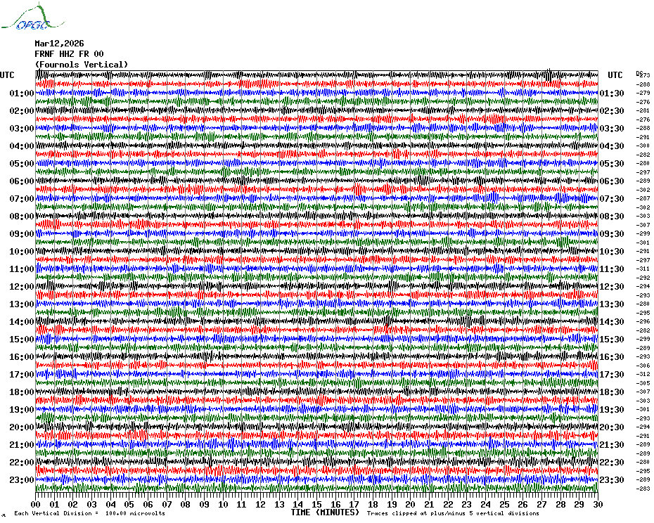 Sismogrammes du Réseau Sismologique Auvergne par fenêtre de 24h
