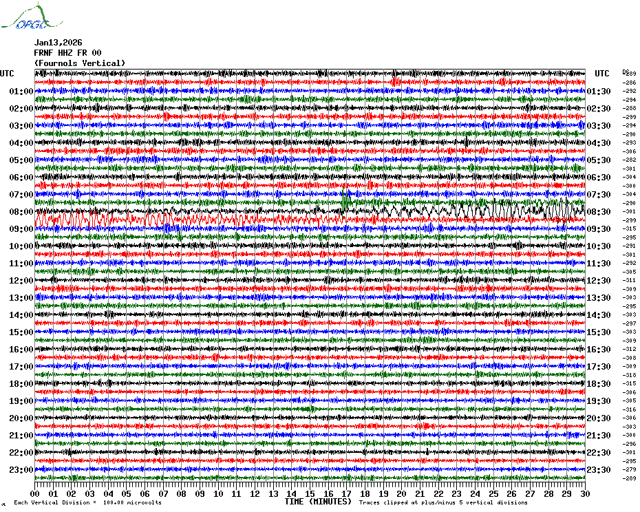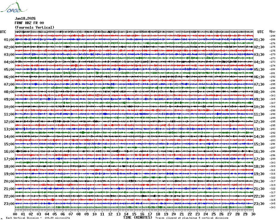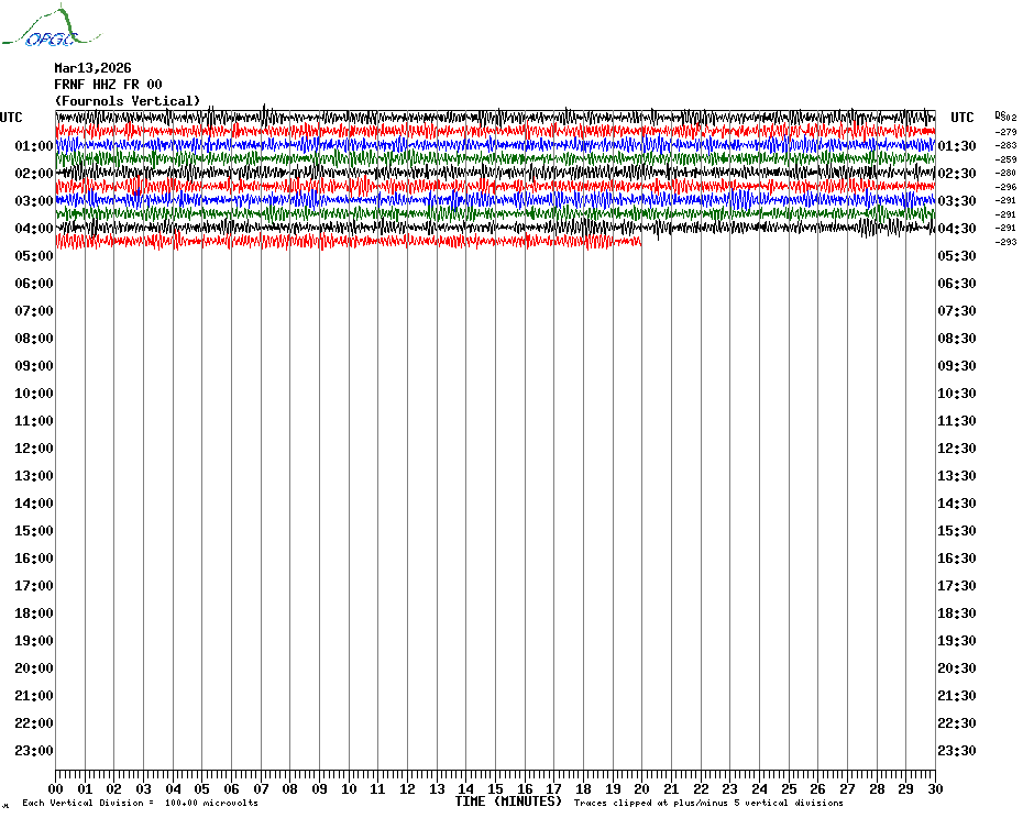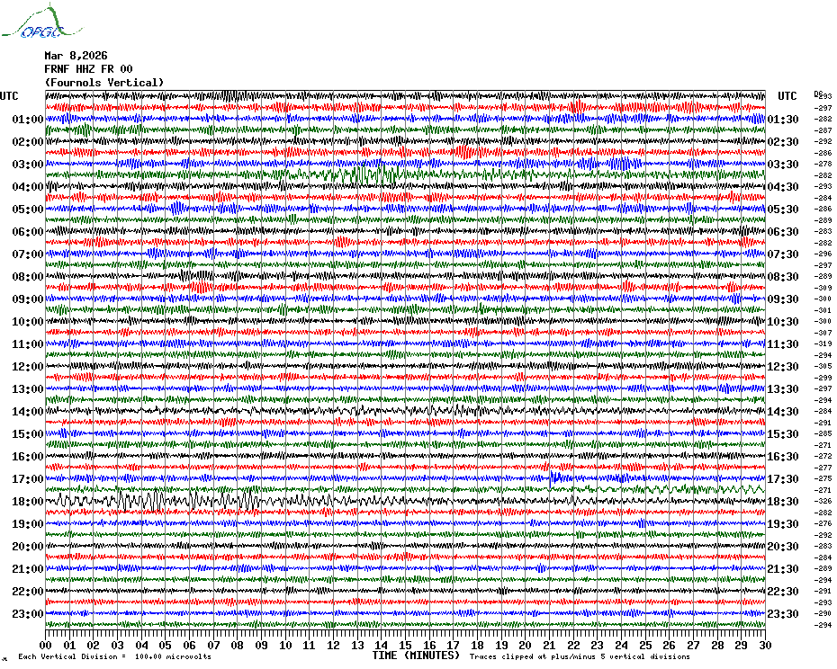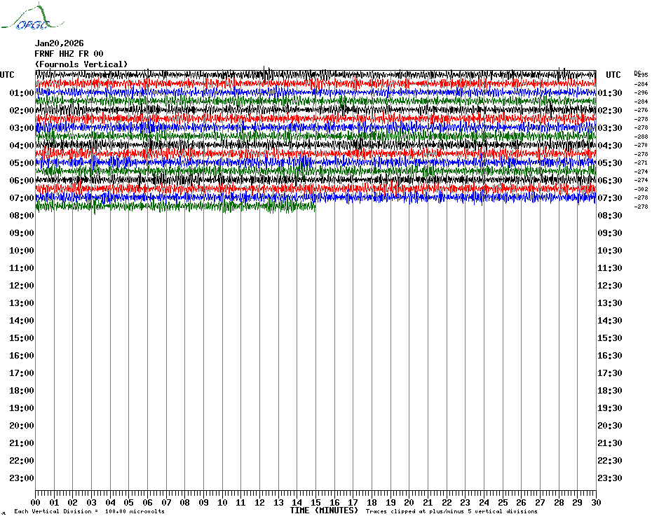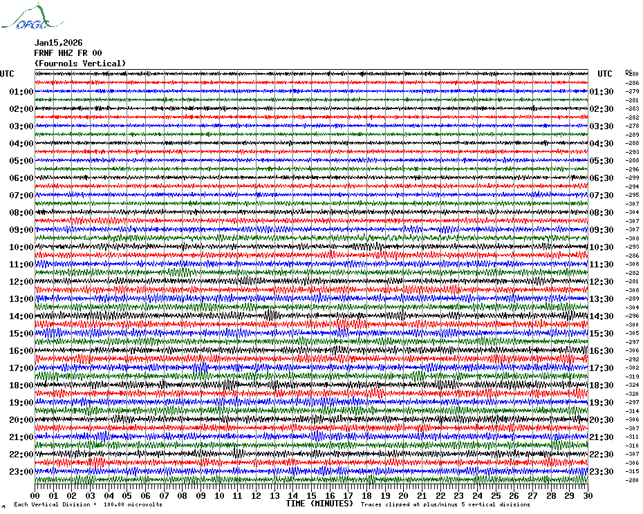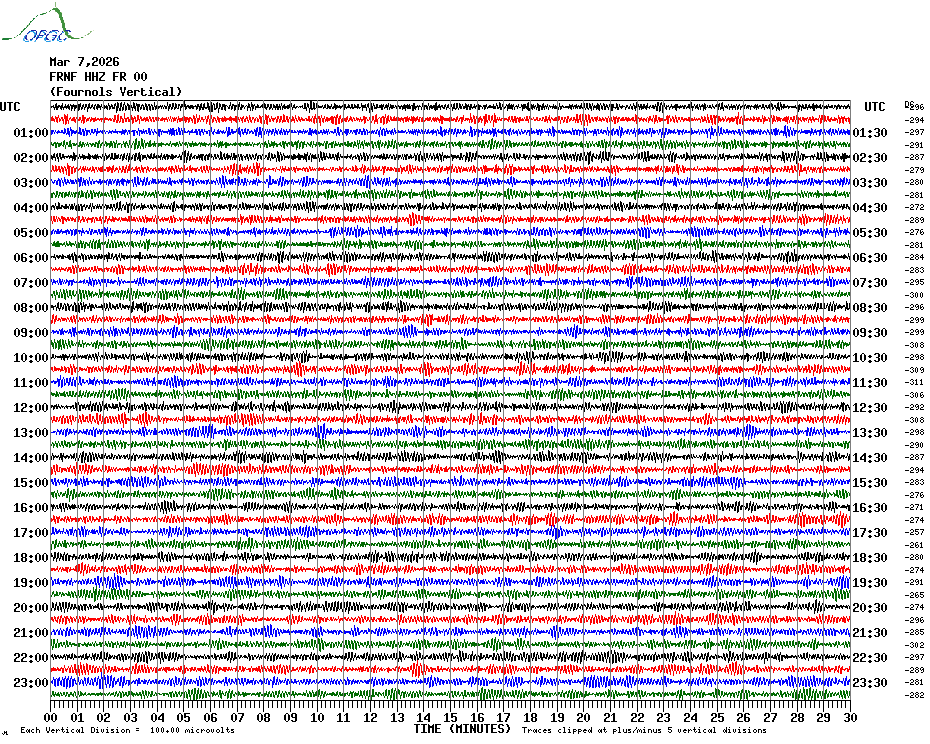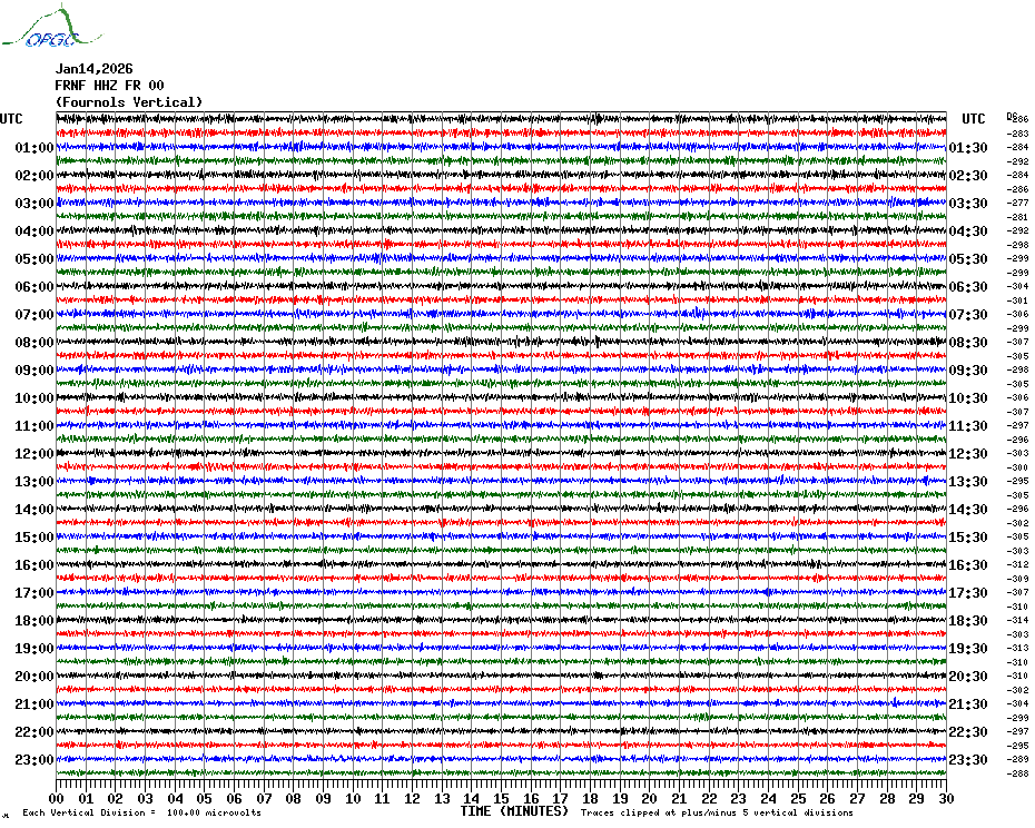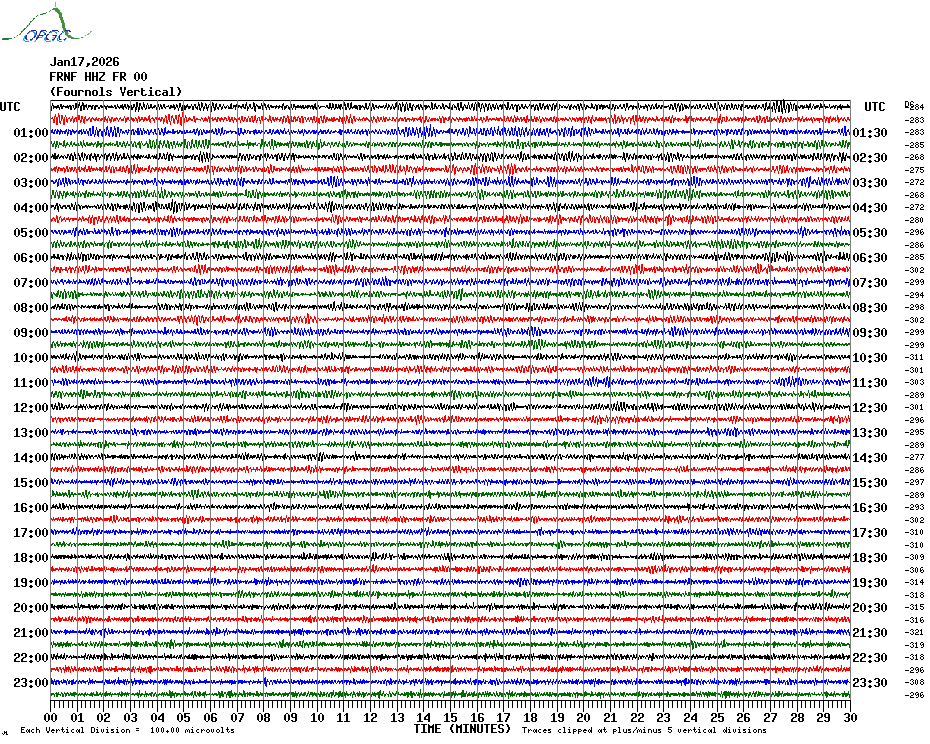 Sismogrammes du Réseau Sismologique Auvergne par fenêtre de 24h