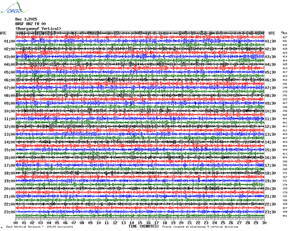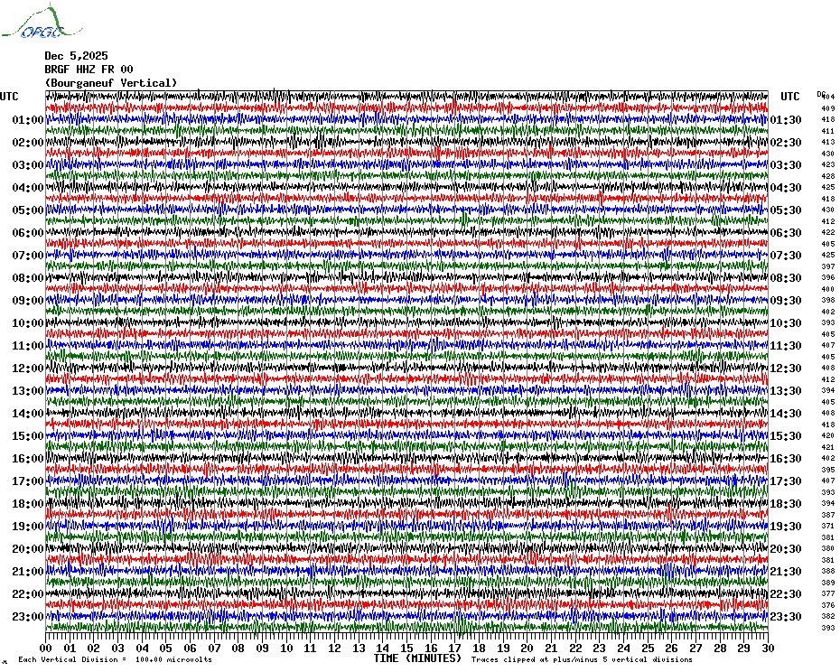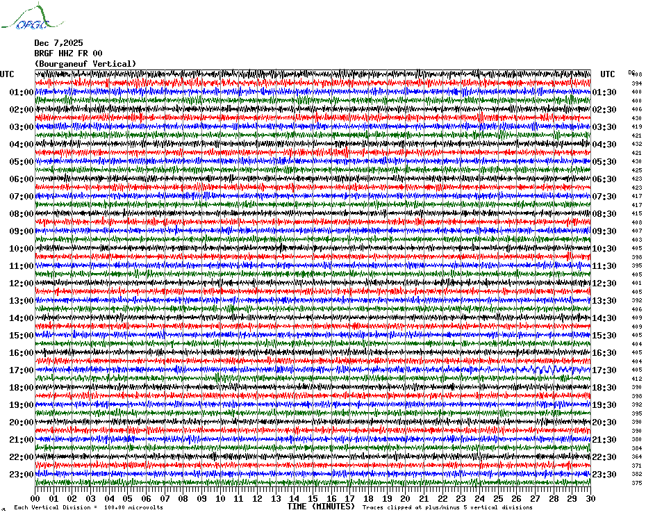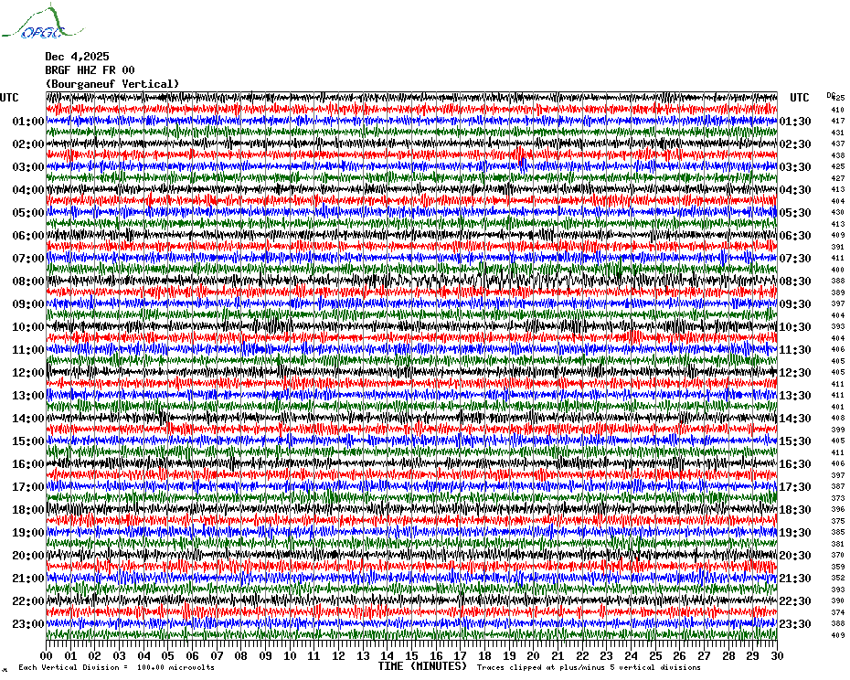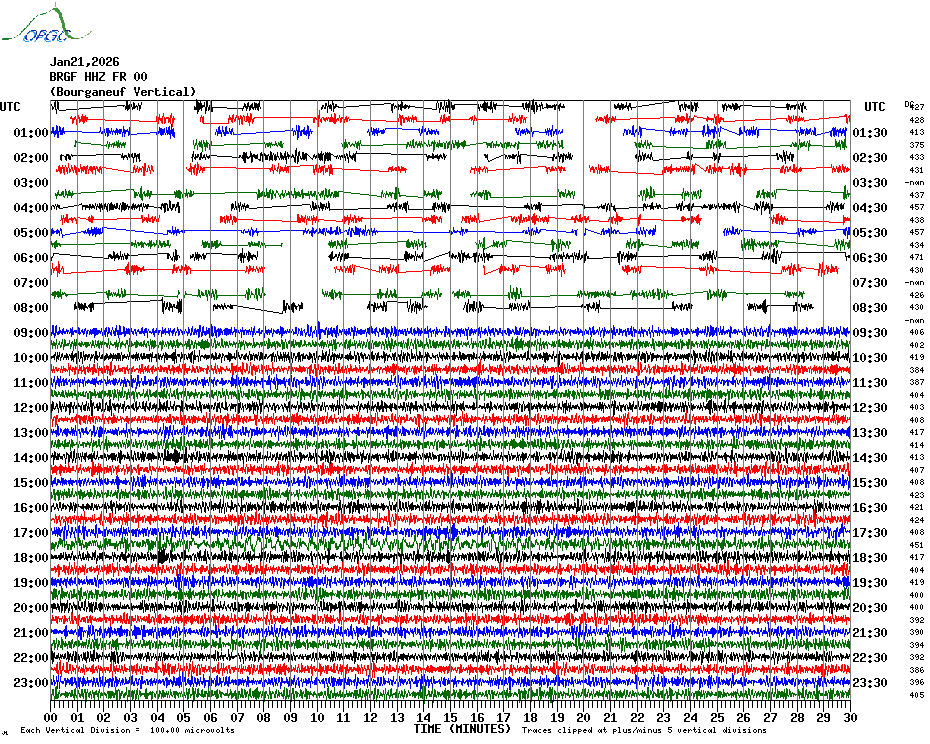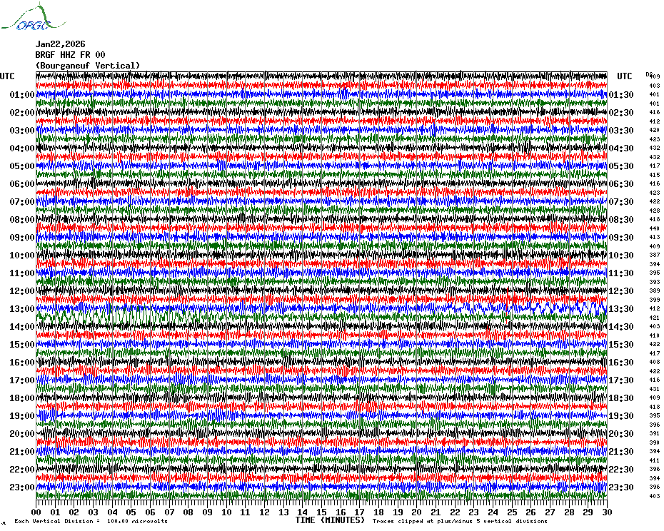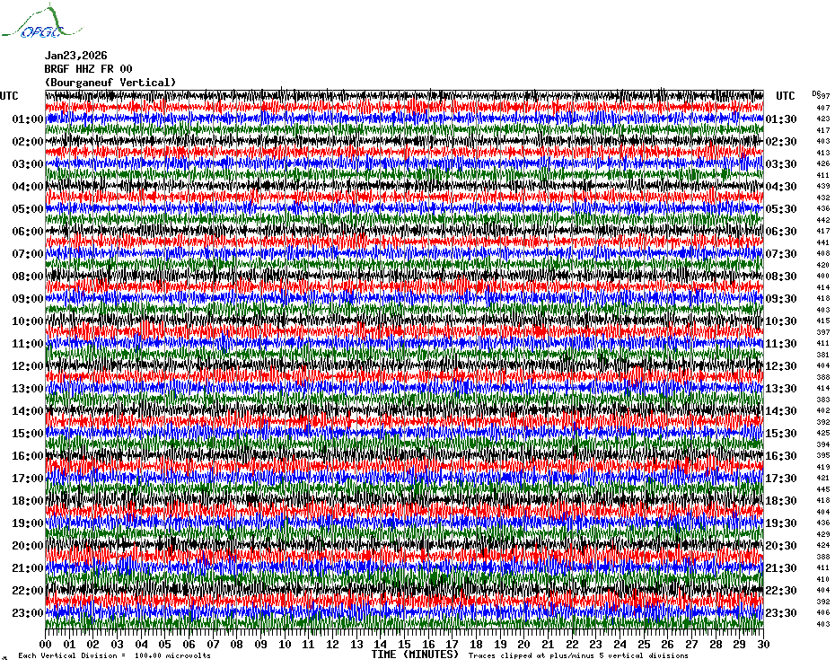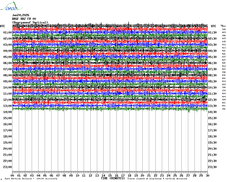 Sismogrammes du Réseau Sismologique Auvergne par fenêtre de 24h