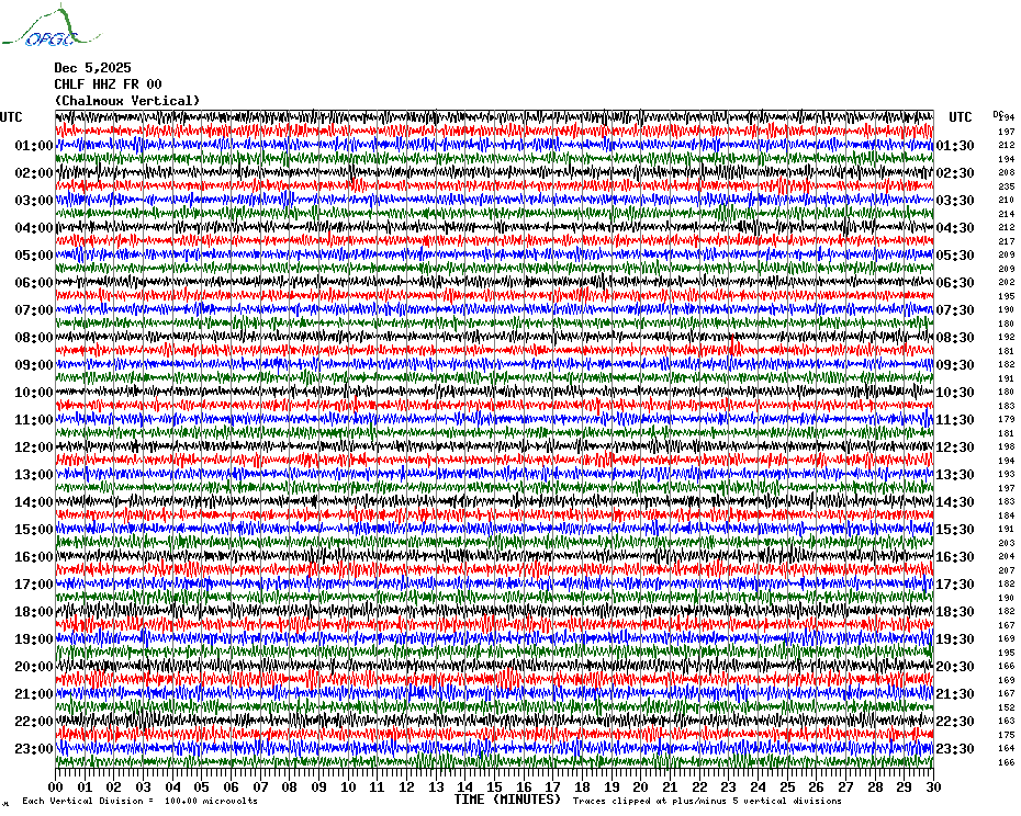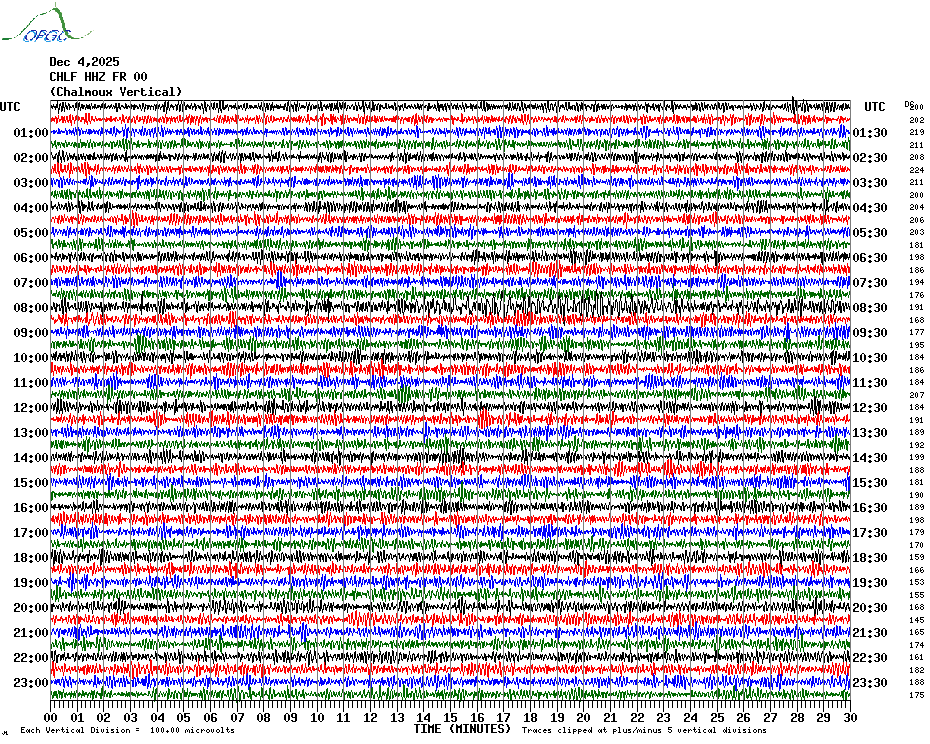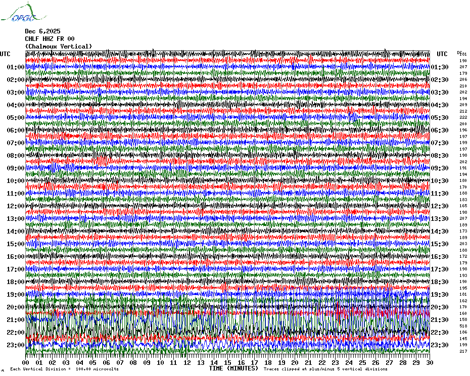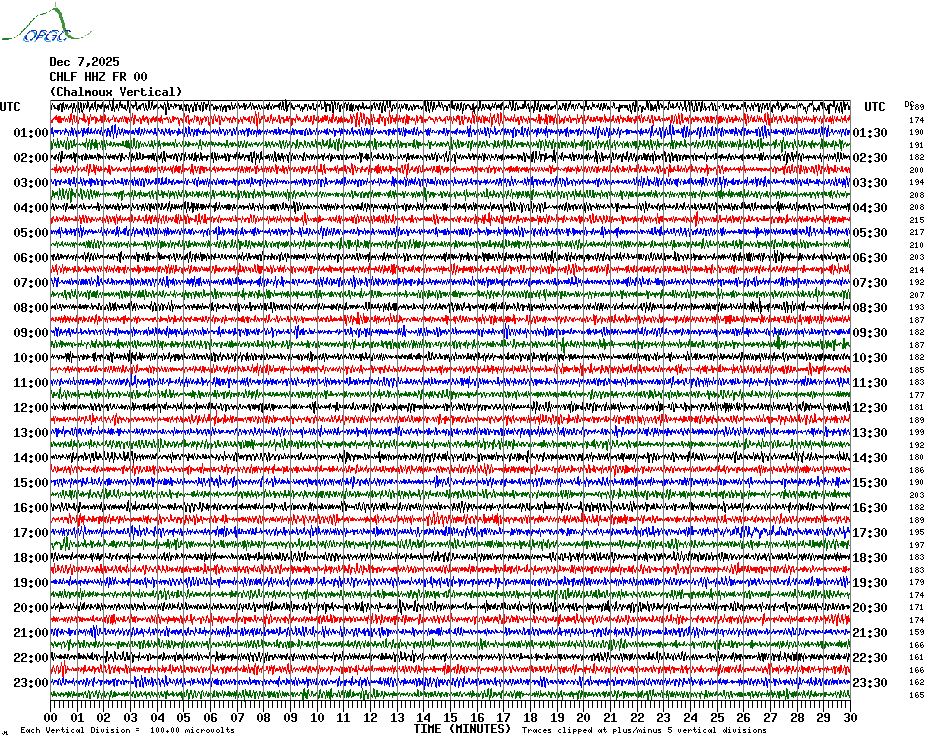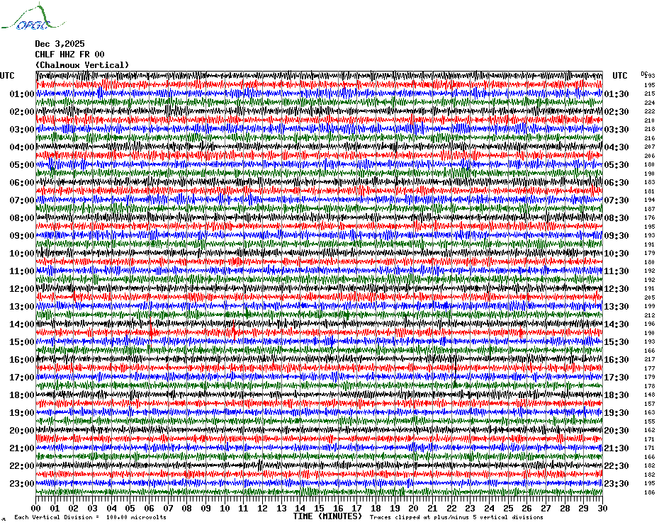 Sismogrammes du Réseau Sismologique Auvergne par fenêtre de 24h