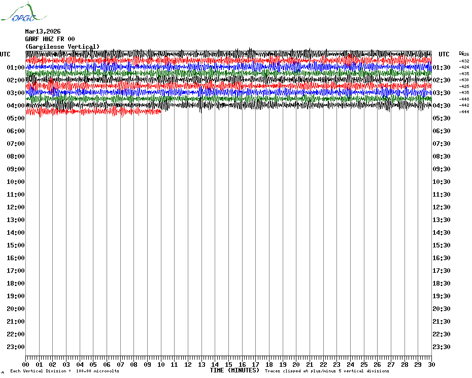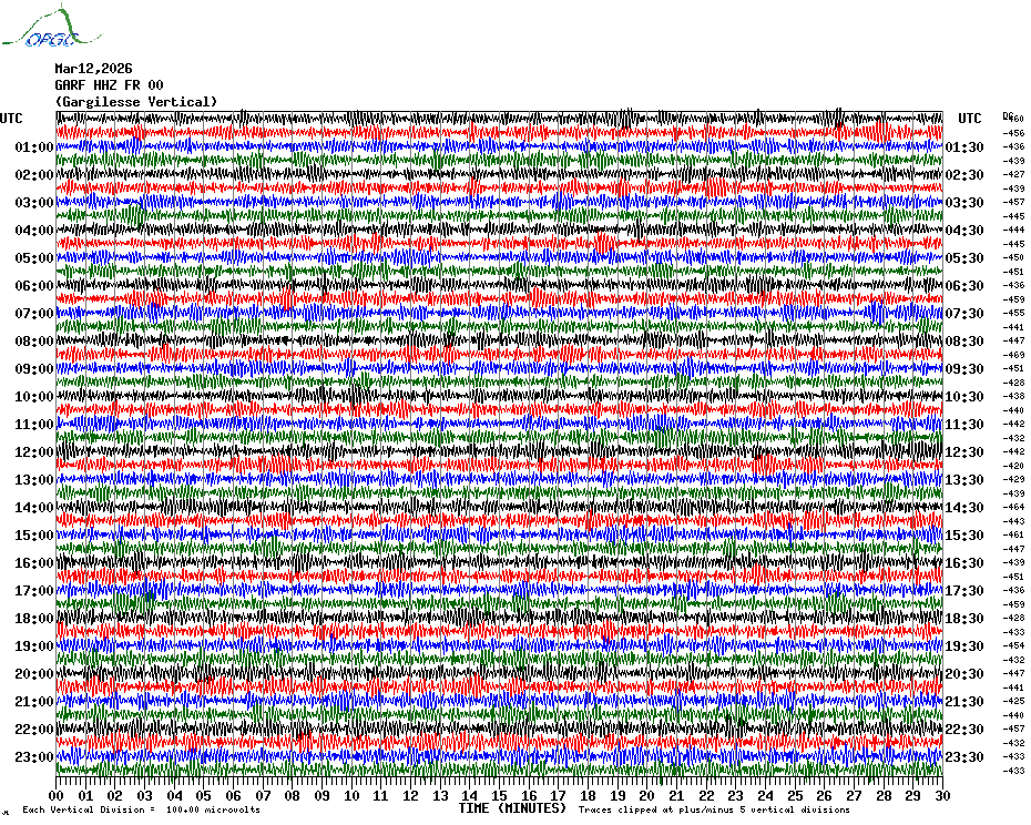 Sismogrammes du Réseau Sismologique Auvergne par fenêtre de 24h