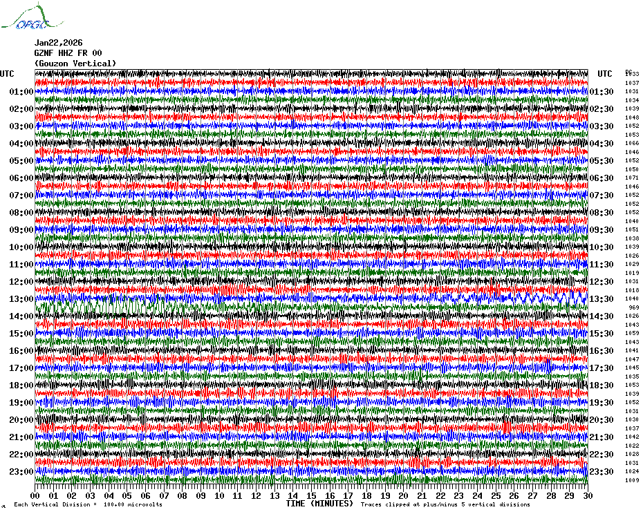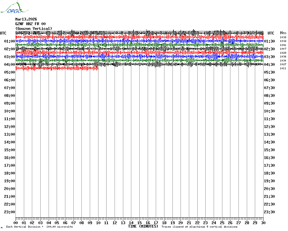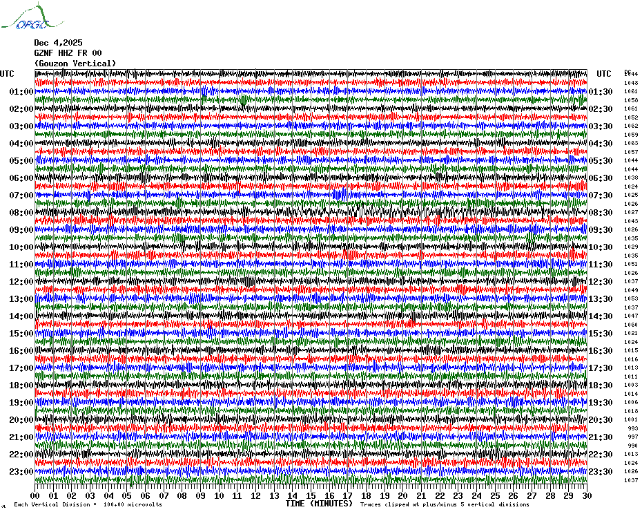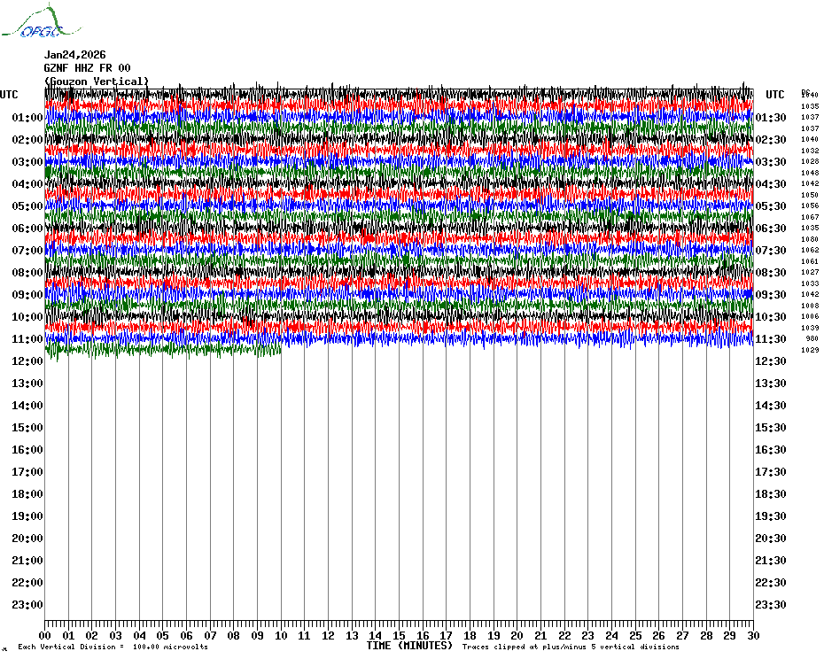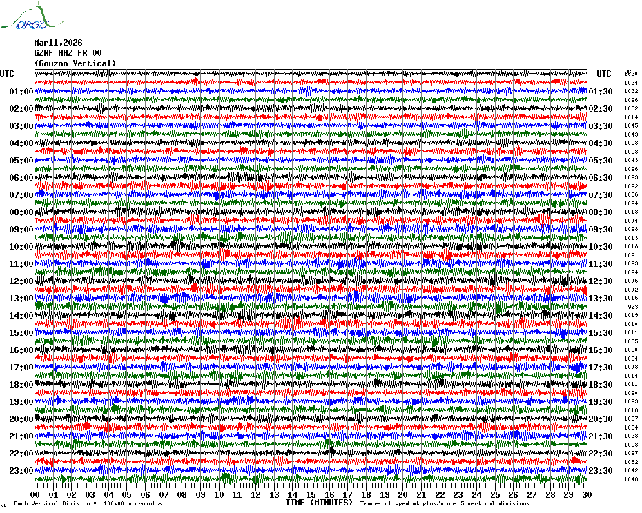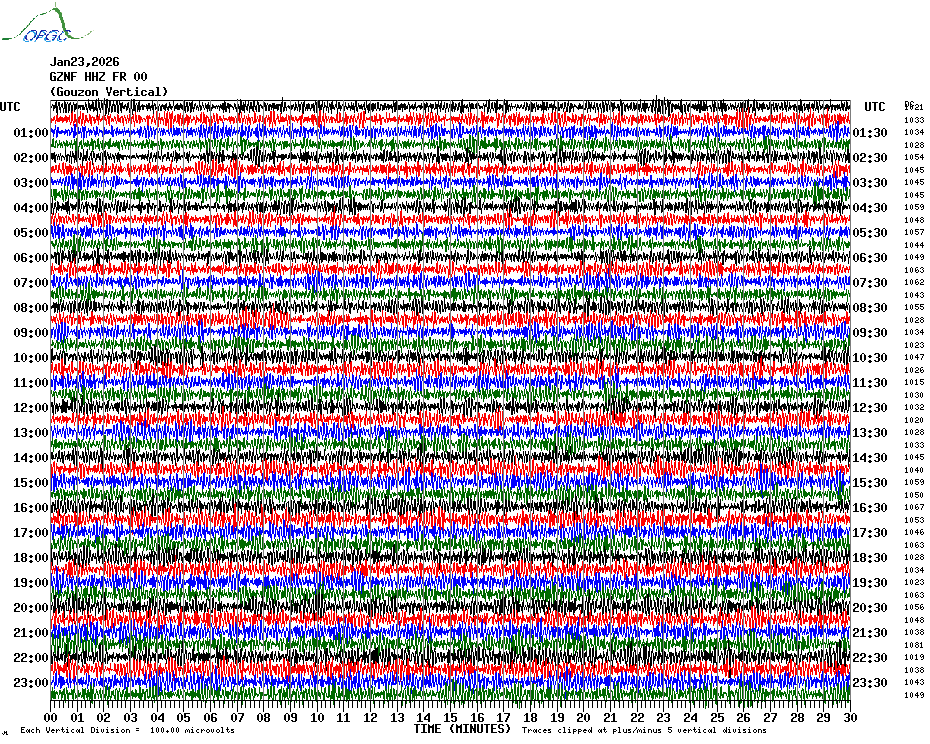 Sismogrammes du Réseau Sismologique Auvergne par fenêtre de 24h