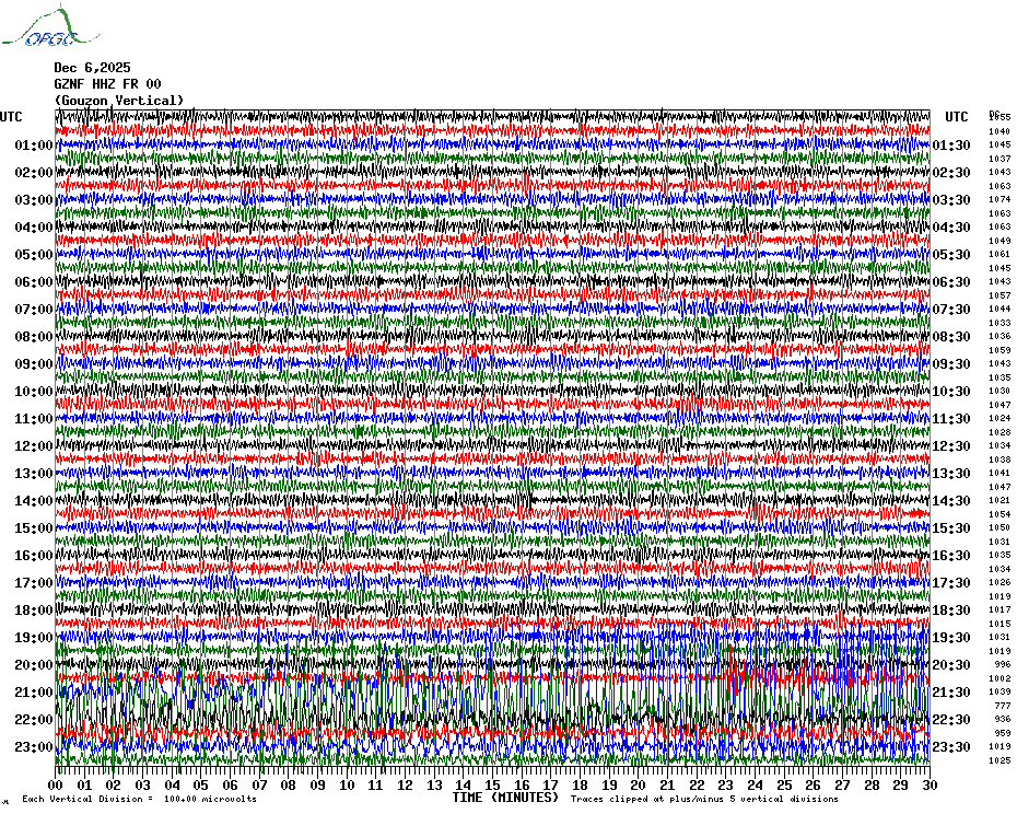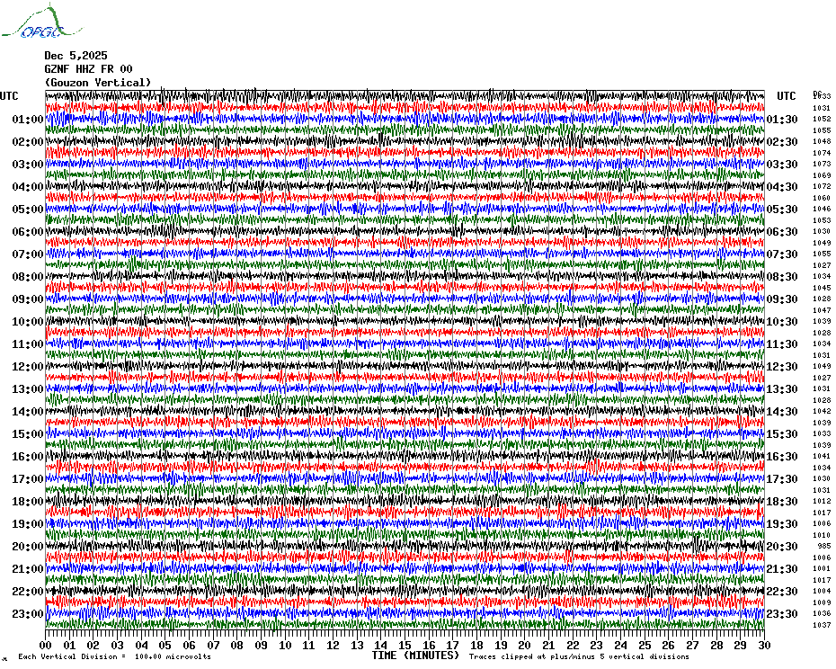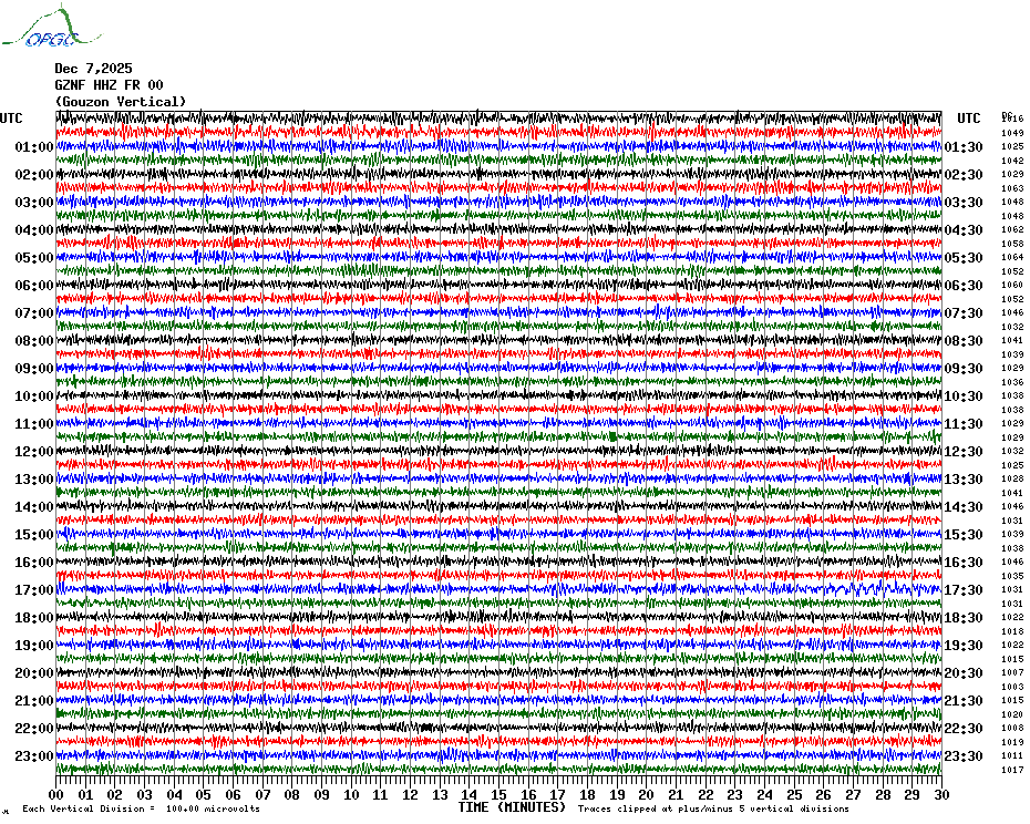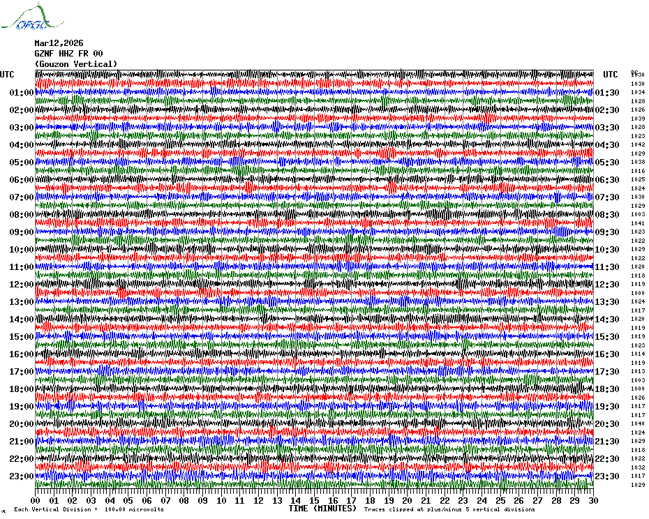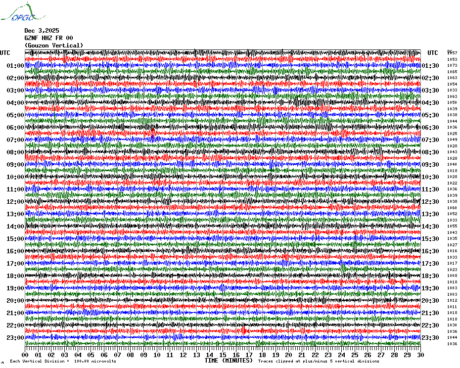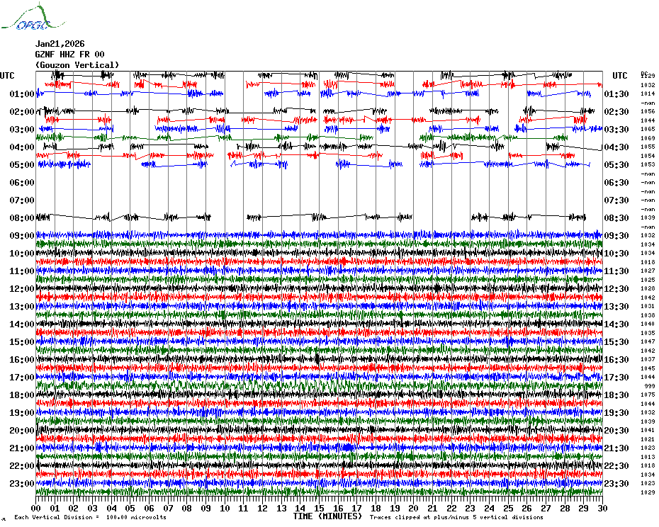 Sismogrammes du Réseau Sismologique Auvergne par fenêtre de 24h